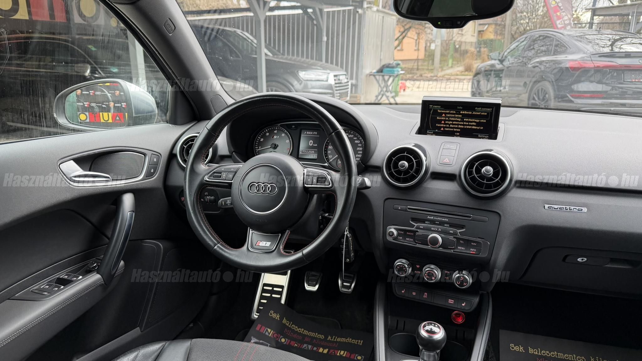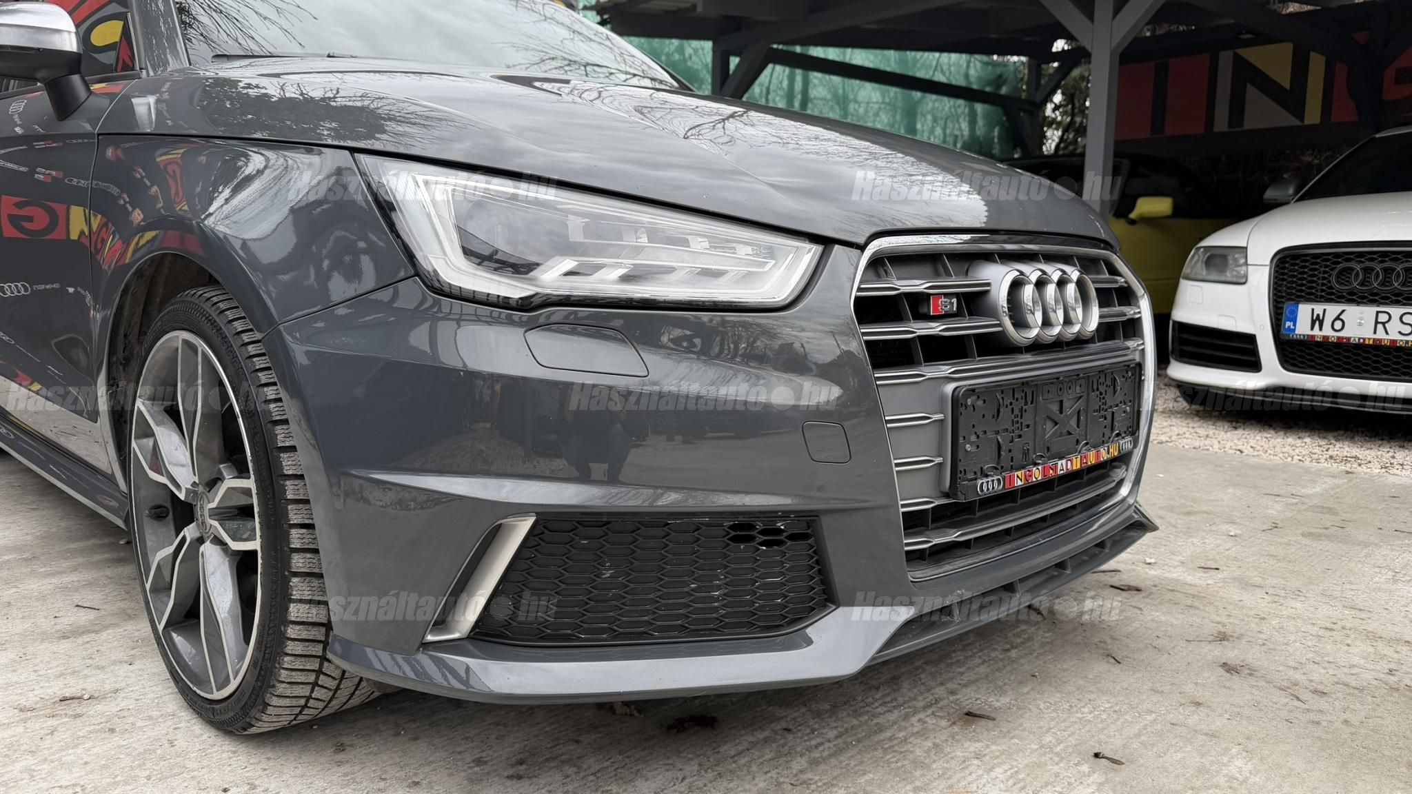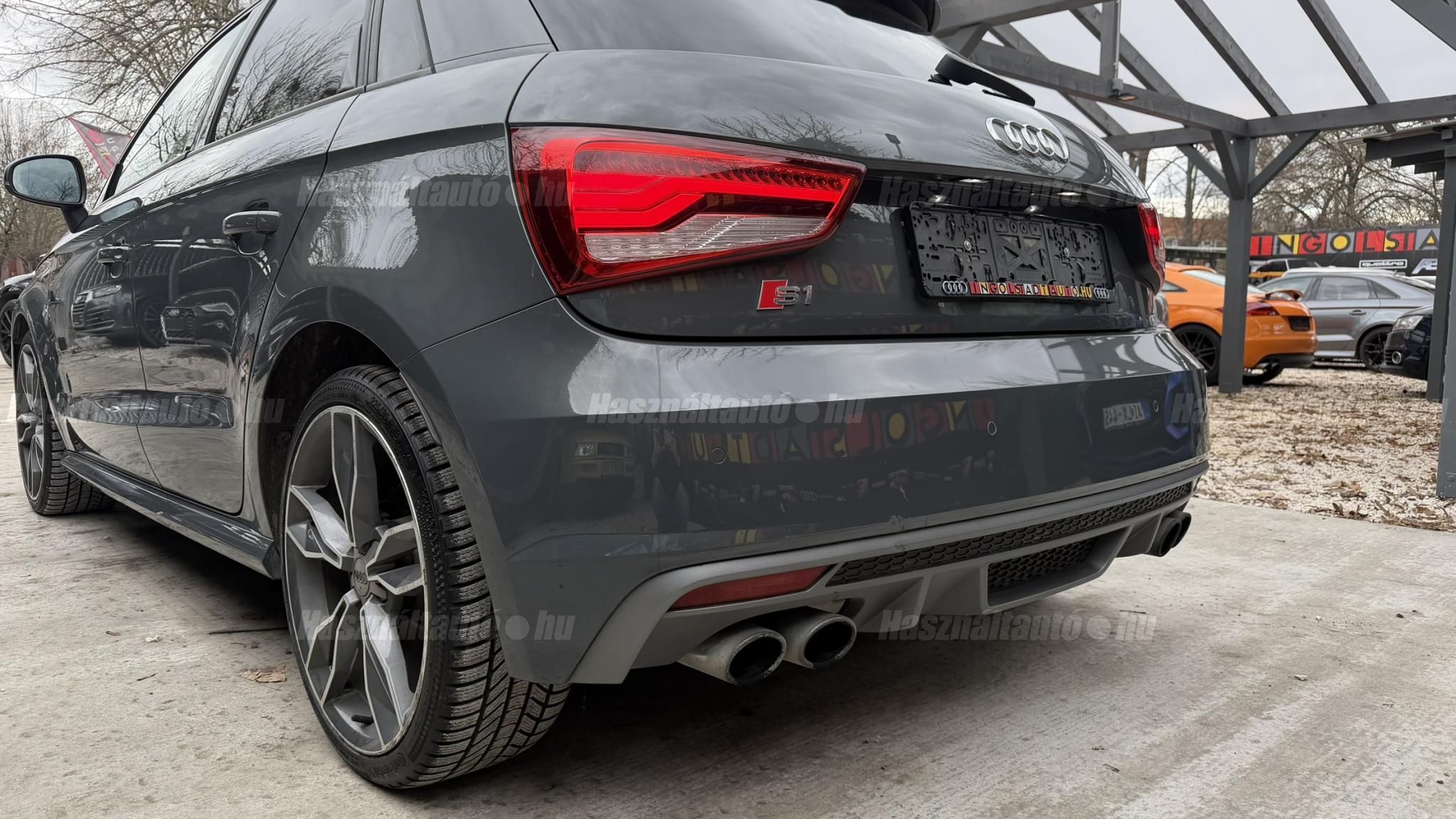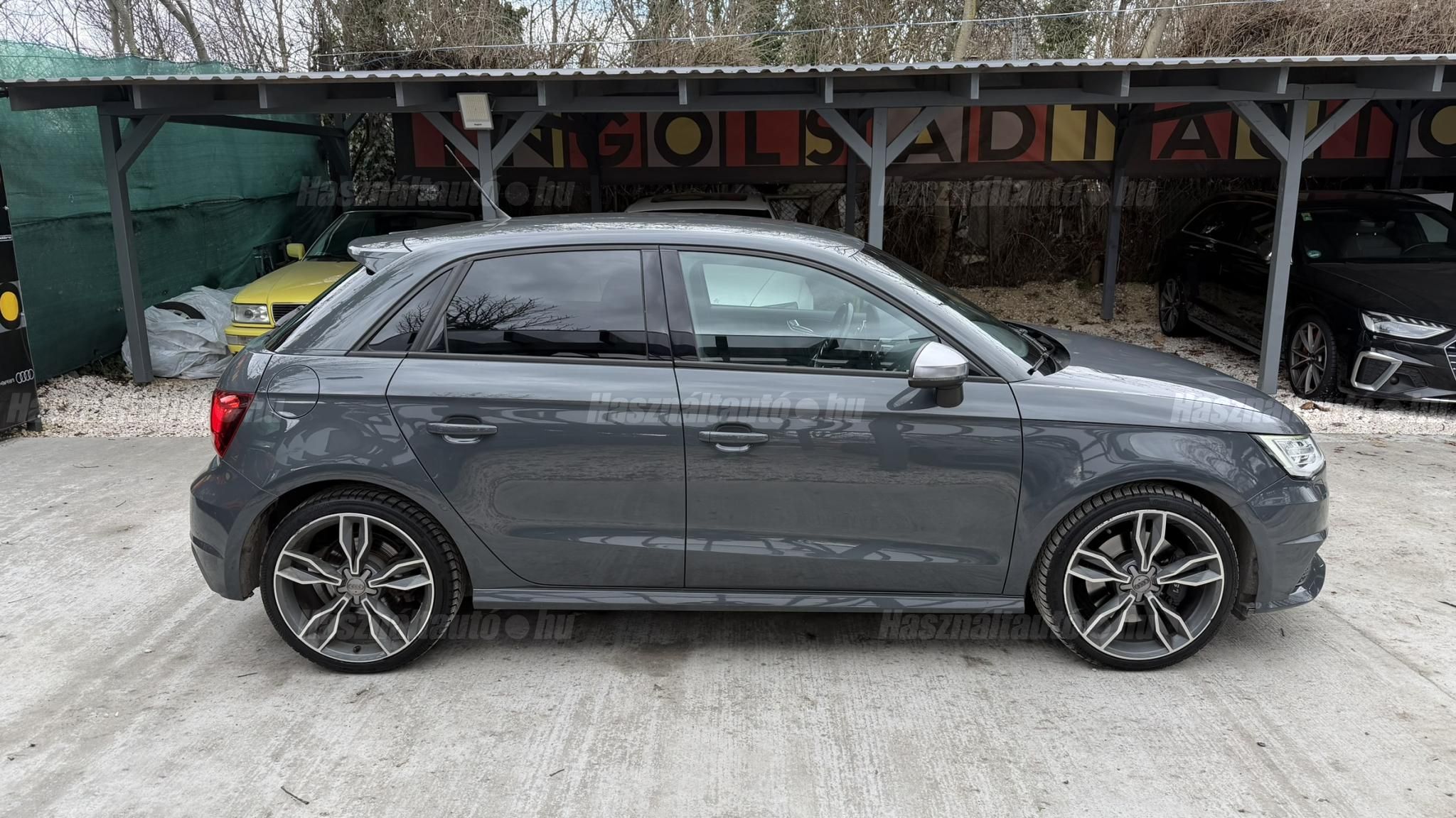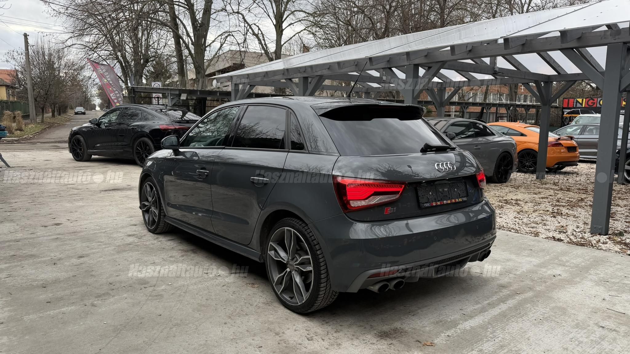 További 80 nagy felbontású kép: facebook/ingolstadtauto oldalunkon! AZ AUTÓK MEGTEKINTÉSÉHEZ MINDEN ESETBEN ELŐZETES TELEFONOS EGYEZTETÉS SZÜKSÉGES! ---------- RÉSZLET FIZETÉSSEL IS ELVIHETŐ: Nincs hitelbírálat, nem gond a BAR lista, nem kérünk jövedelemigazolást sem. Kezdő részlet: 5 millió Ft További részletek: 12 x 216.000Ft -havi részletekben egy éven át. NEM tartalmazza a kötelező biztosítás és a CASCO költségét, melyek feltételei a szerződés megkötésének. Magasabb kezdő részlet befizetése esetén a további havi részletek alcsonyabbak lehetnek. Alacsonyabb kezdő részlet befizetésére nincs lehetőség! További feltételekért és információkért keressen minket személyesen vagy telefonon. BANKI HITELÜGYINTÉZÉSben is tudunk segíteni ez 12-84 hónapig terjedő periódusra ütemezhető. Legalább 20% önrésszel vehető fel.----------TÍPUS/ÁLLAPOT----------A TÍPUSRÓL: Mit árul el egy típusról az a tény, hogy kizárólag kézi váltóval gyártották? Vagy azt, hogy már nem mai darab, Vagy egészen egyszerűen azt, hogy ez bizony egy ízig-vérig sportautó. Itt az utóbbiról van szó és Ez az AUDI S1 Az S3 jó autó, erősebb, nagyobb turbóval készül, és bizonyos motoralkatrészei is erősítettek. Személyes tapasztalatom azonban az, hogy minél kisebb egy autó, annál intenzívebb a sebességérzet, és annál gokartosabb az élmény.Az AUDI az autó teljes alját átdolgozta, hogy helyett kapjon a hátsó futómű, ami teljesen eltér egy sima A1-étől annak érdekében, hogy quattro hajtású lehessen. Multilink hátsó futóművet kapott a még sportosabb vezetési élményért.Ránézésre is egyértelmű, hogy ez nem egy sima A1. Megjelenése agresszív, mégis elegáns: a jellegzetes négyes kipufogóvég, az S-specifikus lökhárítók és az egyedi első fényszórók azonnal jelzik, hogy EZ VALAMI MÁS.A 2.0 literes TFSI turbómotor 231 lóereje és 370 Nm nyomatéka önmagában is meggyőző, egy egyszerű Stage 1 szoftveres optimalizálással pedig akár 300-320 lóerő is elérhető. Magánvéleményünk szerint meglepően jó kis sportautó, amely minden ízében megérdemli az S elnevezést. Az Audi 2018-ban megszüntette a gyártását, így mára igazi ritkaságnak számít.Hozzászólásban megosztok veletek egy videót. Nekem már a nézése is élmény volt! Tudom, hogy ez egy komoly tuninggép, a miénk pedig széria, de akkor is…Egyszerűen fantasztikus videó. Ha időtök engedi, mindenképp nézzétek meg!AZ ADOTT AUTÓRÓL: Gyönyörű szép Nano Grey színű S1. Törésmentes, fényezése szép, homogén mindenhol. A 18 colos gyári Audi felnik állapota szép. Jelenleg jó állapotú téli gumikkal szerelve. A féktárcsák és betétek már cserére szorulnak, így ezeknek a cseréje benne van az árban. Megkímélt beltér, kopás/karc/kiülésmentes mint az új. Szerkezetileg és motorikusan hibátlan, minden extra tökéletesen működik. Minden tartozék, összes gyári dokumentáció, vezetett szervizkönyv, 2db eredeti kulcs rendelkezésre áll.----------EXTRÁK----------Sportfutómű S / RS specifikusXenon Plus fényszórók (távfény és tompított fényszórók)Fűthető első ülésekOsztható/hajtható hátsó ülésdőElülső középső kartámasz tárolórekeszzelKipörgésgátló rendszer (ASR)Zöld színű atermikus üvegKözponti zár távirányítássalFény- és esőérzékelőS-line tetőspoilerAudi zenei interfaceUniverzális Bluetooth csatlakozóElektromosan állítható és fűthető külső tükör, mindkettőSebességszabályozó rendszer (tempomat)Metálfényű festékTároló csomagAdaptív féklámpaAmbient világításKülső visszapillantó tükör Alumínium / Króm színekAszférikus külső tükör, balKülső aszferikus tükör, jobbFűthető szélvédőmosó fúvókákLED irányjelzők az oldaltükrökben integrálvaFékrendszer visszanyerési rendszerrelVörösre festett féknyergekTextil mennyezeti kárpitozás, feketeEasy-Entry beszállás megkönnyített hozzáférésBejárati küszöbök alumínium berakással és felirattalSzélvédő felső napellenző csíkkalVelúr padlószőnyegek6 sebességes váltóPohártartó a középső konzolbanFűthető hátsó ablak(ok)Belső felszerelés: Alumínium befejezés / megjelenésBelső kárpit: Ragyogó diffúzorBelső felszerelés: szín - kiterjesztett mono. pur felszerelésLED belső világítás csomagUtastér szűrő: Por- és pollen szűrőBelső visszapillantó tükör automatikus vakításgátló rendszerrelKarosszéria: 4 ajtóHátsó fejtámlákÁllítható deréktámaszElülső deréktámaszokTovábbi olvasólámpák a hátsó részenMegvilágított sminktükörMédia csomagConnectivity csomagMotor 2.0 Ltr. - 170 kW 16V TFSIHátsó ködfényszóróNemesacél pedál sapka készletGumijavító készletKörnyezetvédelmi rendszer Euro 6 szabványBőr sebességváltókarBal első ülés magasságállításElülső jobb ülésmagasság állíthatóKárpit: Szövet / BőrÁllítható magasságú első ülésekHangrendszer DSP / Audi hangrendszerDugasz (12V csatlakozás) az elülső középső konzolbanBőrborítású ajtókartámaszokKönnyűfém keréktárcsák 7,5x17 (5 párhuzamos küllős, S-Design, téligumikhoz)Könnyűfém keréktárcsákHátsó ablakok sötétítettekStart/Stop rendszerGuminyomás-ellenőrző rendszerKormánykerék (Sport/Bőr - 3 küllős) multifunkciósLED hátsó lámpákFényszóró-mosó rendszer (fényszóró mosó)Audi Drive SelectIsofix rögzítések gyermeküléshezFényérzékelő (Hazaérkezés, Otthonról való távozás)FékasszisztensVezetési asszisztens: Fékasszisztens (Audi pre sense front)AUTÓINKAT 1-3 ÉVIG TERJEDŐ GARANCIÁVAL IS TUDJUK ÉRTÉKESÍTENI, MEGÁLLAPODÁS SZERINT. Autóbeszámítás vagy bármilyen kérdés esetén a lenti telefonszámon keressen vagy WhatsApp-on, Viberen is elérhetőek vagyunk (email-t ne írjon!). TOVÁBBI KÜLÖNL