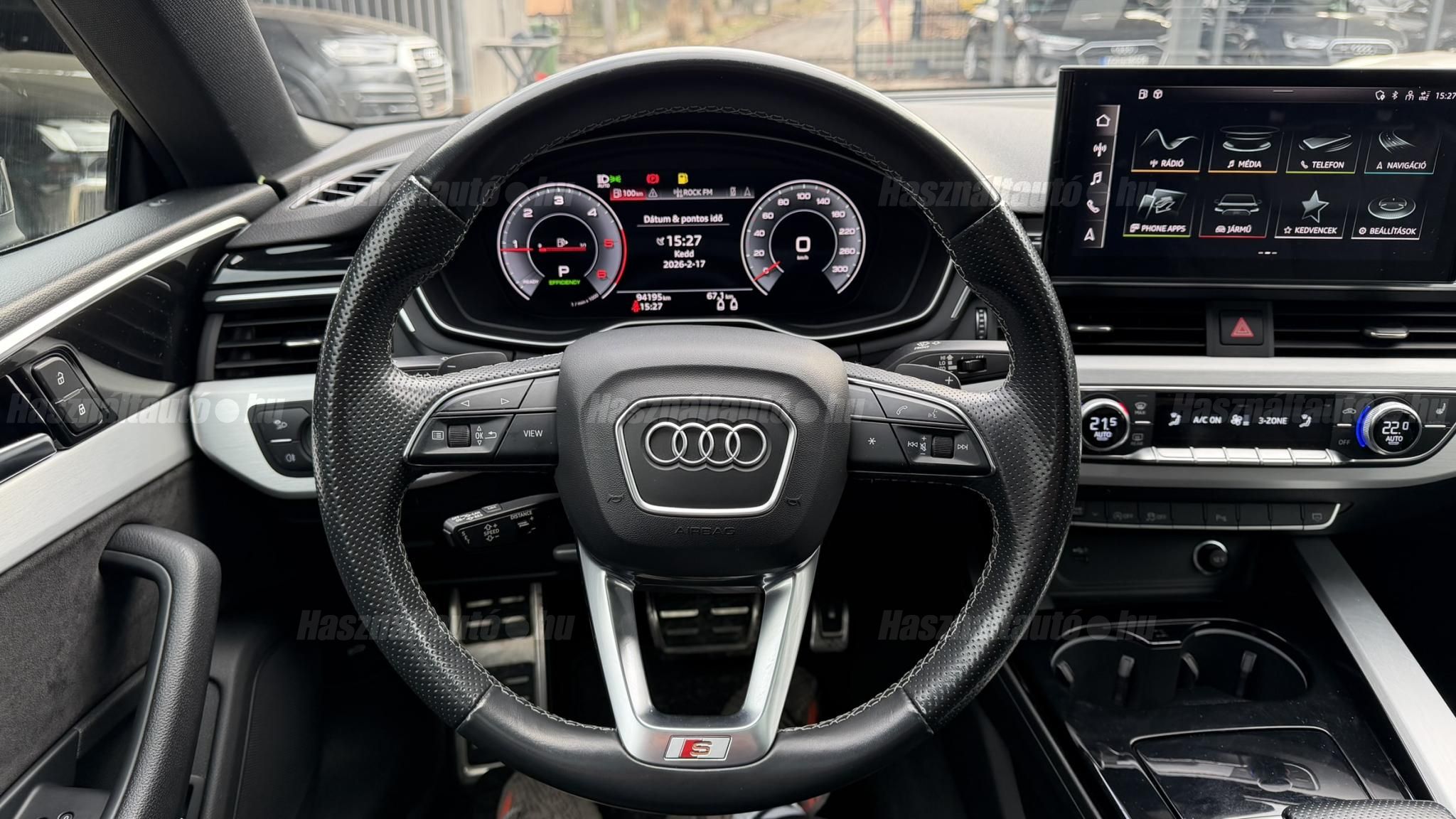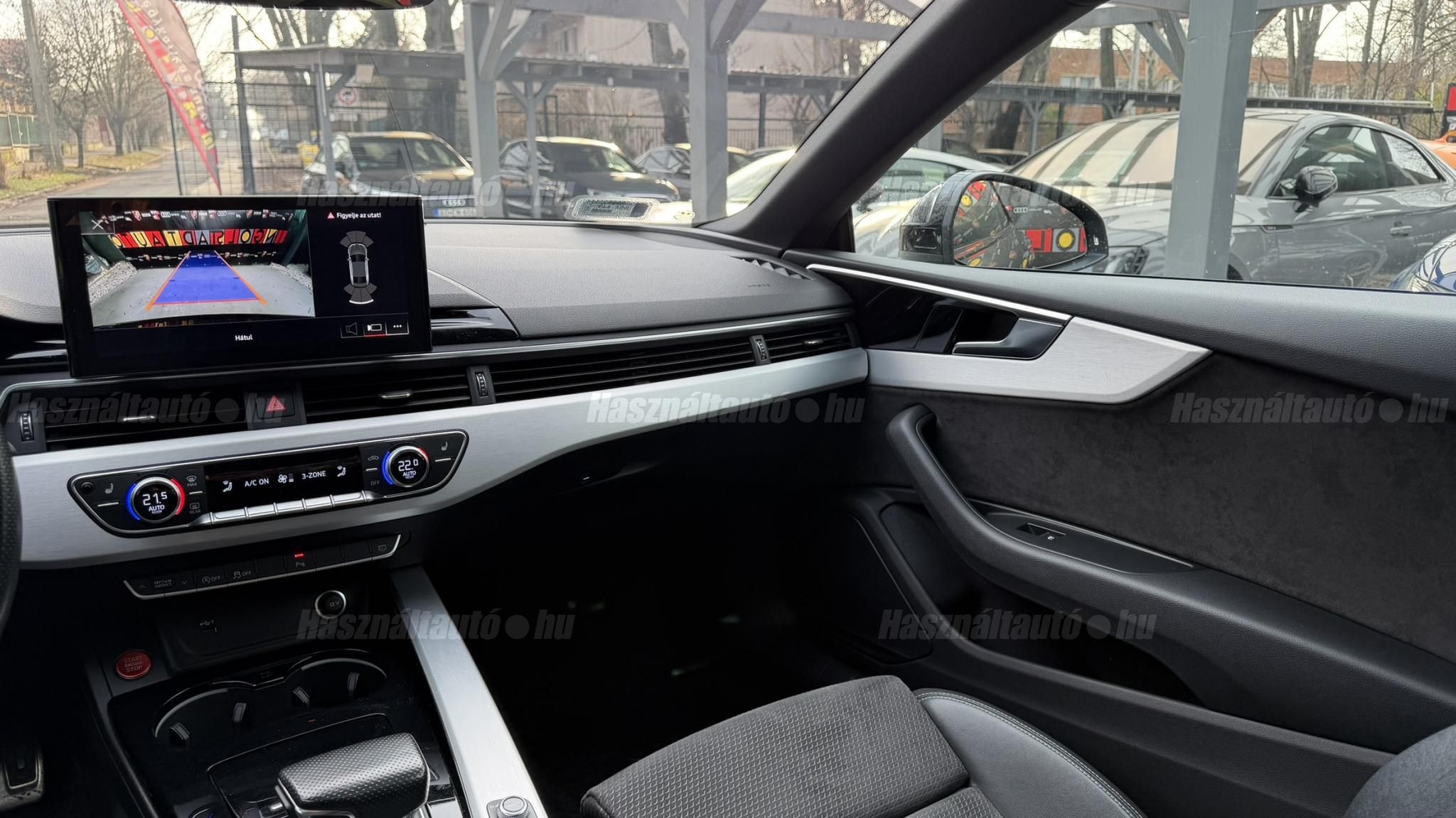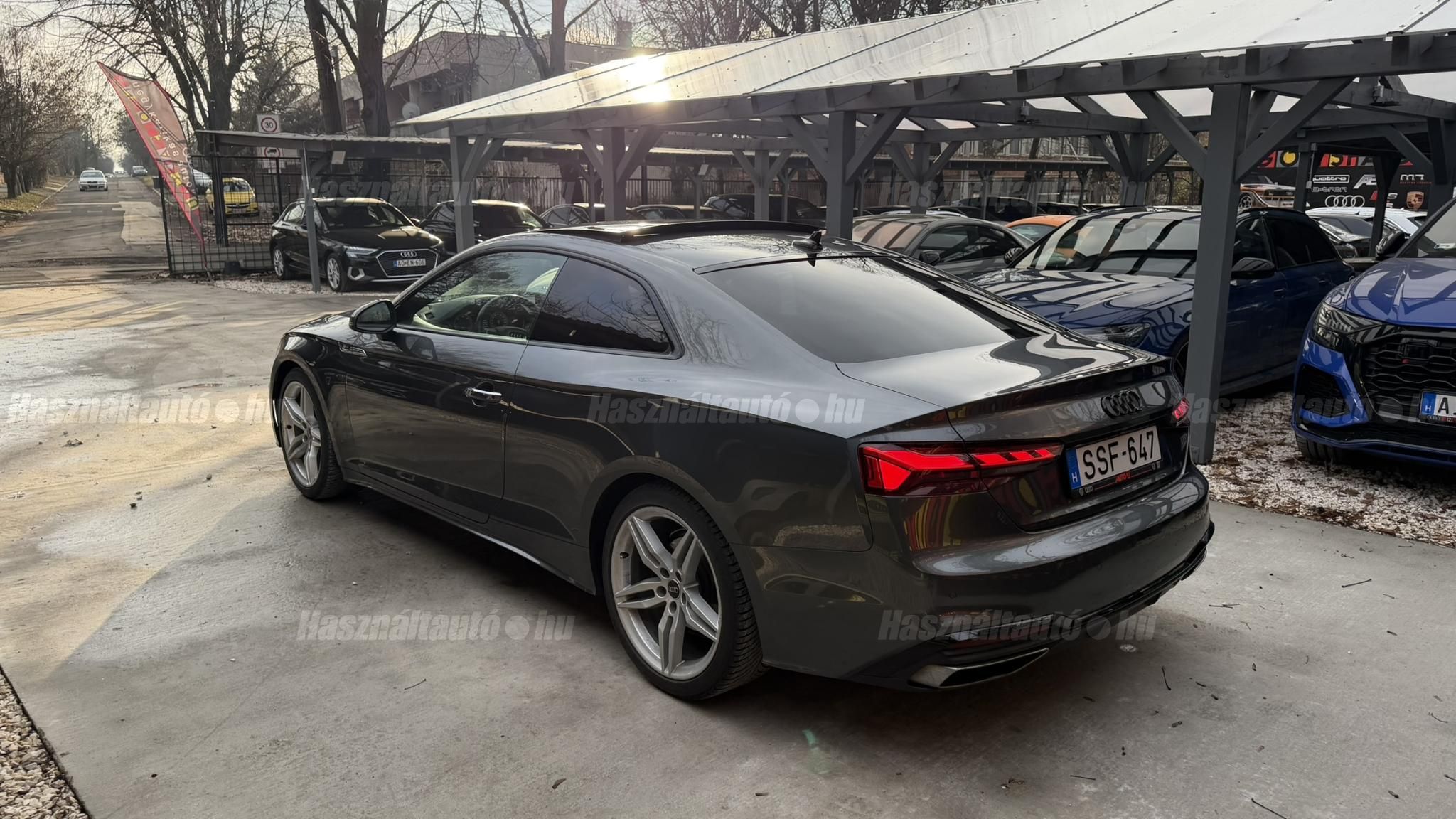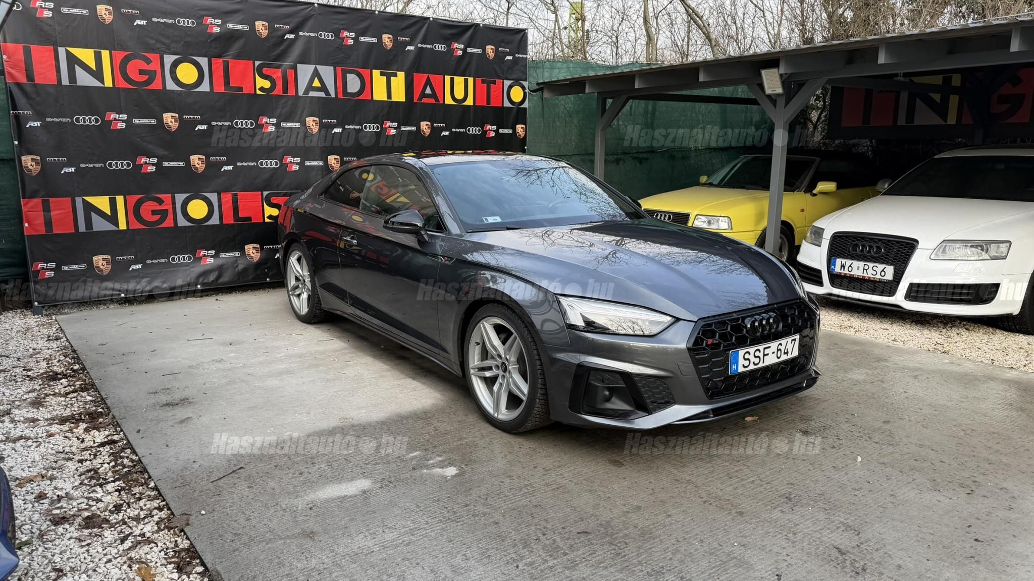 További 50 nagy felbontású kép: facebook/ingolstadtauto oldalunkon! AZ AUTÓK MEGTEKINTÉSÉHEZ MINDEN ESETBEN ELŐZETES TELEFONOS EGYEZTETÉS SZÜKSÉGES! BANKI HITELÜGYINTÉZÉSben is tudunk segíteni ez 12-84 hónapig terjedő periódusra ütemezhető. Legalább 20% önrésszel vehető fel.----------TÍPUS/ÁLLAPOT----------A TÍPUSRÓL: Az A5-nek a B9.5 szériája, abból is egy 40 TDI változat. A 2020-as modellfrissítés (Facelift) után az autó még élesebb vonalakat, szélesebb hűtőmaszkot és teljesen megújult, érintőképernyős MMI rendszert kapott. A 40 TDI erőforrás már a modern, 204 lóerős változat, amely a lágy-hibrid (MHEV) rendszernek köszönhetően nemcsak dinamikusabb, de meglepően takarékos is. A 7 fokozatú S tronic automata váltó pedig sima és gyors váltásokat kínál. Az autó teljes körű S line csomaggal rendelkezik, amely magában foglalja a sportos külsőt/belsőt és a dinamikus futóművet.AZ ADOTT AUTÓRÓL: Gyönyörű szép Daytona Grau színű kupé. Törésmentes, fényezése szép, homogén mindenhol. A 19 colos gyári Audi felnik állapota szép. Jelenleg újszerű téli gumikkal szerelve. A fékrendszer állapota jó, fékbetétek nincsenek kopásjelzőn. Megkímélt beltér, kopás/karc/kiülésmentes mint az új. Szerkezetileg és motorikusan hibátlan, minden extra tökéletesen működik. 60 000 km-ig az autó márkaszervizben kapta a teljes körű karbantartást, minden szervizdokumentációval rendelkezésre áll, utána egy megbízható külső szerviz gondoskodott a további karbantartásról. Minden tartozék, összes gyári dokumentáció, vezetett szervizkönyv, 2db eredeti kulcs rendelkezésre áll.Friss Szervizek: Motortartóbakok cseréje Hengerfejtömítés, tömítéskészlet cseréje Ó-gyűrű cseréje Új akkumulátor Stabilizátor szilent Hátsó fékbetétek Első fékbetétek Első féktárcsa Olaj hőmérséklet jeladó----------EXTRÁK----------Sport ülések előlSport S-line futómű/felfüggesztésElektromosan állítható panorámatetőFűthető első ülésekOsztható/hajtható hátsó ülésekVezetéstámogató rendszer: holttérfigyelő asszisztens (Side Assist)Elülső középső kartámaszKipörgésgátló rendszer (ASR)Központi zár távirányítássalAutomatikus csomagtérajtó nyitásFény- és esőérzékelőElektromosan állítható és fűthető külső tükör, mindkettőAudi zenei interfaceUniverzális Bluetooth csatlakozóMetálfényű festékCsomag-konfiguráció: S line sport Fekete külső tükör3-zónás digitklímaElülső deréktámaszok, elektromosan állíthatókÜléshuzat / Kárpit: Alcantara / Bőr PerlnappaKülső tükör karosszériaszínbenAszférikus külső tükör, balKülső aszferikus tükör, jobbKülső hőmérsékletjelzőTextil mennyezeti kárpitozás, feketeEasy-Entry beszállás megkönnyített hozzáférés7 sebességes váltó - S-tronic duplakuplungos váltóPohártartó a középső konzolbanBrilliance csomagSzórakóztató rendszercsomagKarosszéria: 2 ajtóMűszerfal rádióvezérelt órávalKormányszár (kormánykerék) mechanikus függőleges/hosszirányú állításVilágítási csomagMegvilágított sminktükörModellfrissítésMotor 2.0 Ltr. - 150 kW 16V TDIGumijavító készletSCR rendszer (AdBlue technológia)Környezetvédelmi rendszer Euro 6 szabványFűthető szélvédőmosó fúvókákÜléshuzatok/kárpitozás: Alcantara/bőr dombornyomott logóval az első ülések háttámláinÁllítható magasságú első ülésekHangrendszer DSP / Audi hangrendszerHátsó ablakok sötétítettekStart/Stop rendszerGumikontroll mutatóKormánykerék (Sport/Bőr - 3 küllős) multifunkciósLED hátsó lámpákFényszóró-mosó rendszer (fényszóró mosó)Isofix rögzítések gyermeküléshezIsofix rögzítések gyermeküléshez az utasülésenLED nappali menetjelző fények19 colos Audi felnikAUTÓINKAT 1-3 ÉVIG TERJEDŐ GARANCIÁVAL IS TUDJUK ÉRTÉKESÍTENI, MEGÁLLAPODÁS SZERINT. Autóbeszámítás vagy bármilyen kérdés esetén a lenti telefonszámon keressen vagy WhatsApp-on, Viberen is elérhetőek vagyunk (email-t ne írjon!). TOVÁBBI KÜLÖNLEGES AUDIKÉRT KÖVESSE KÍNÁLATUNKAT FACEBOOKON: INGOLSTADTAUTO |