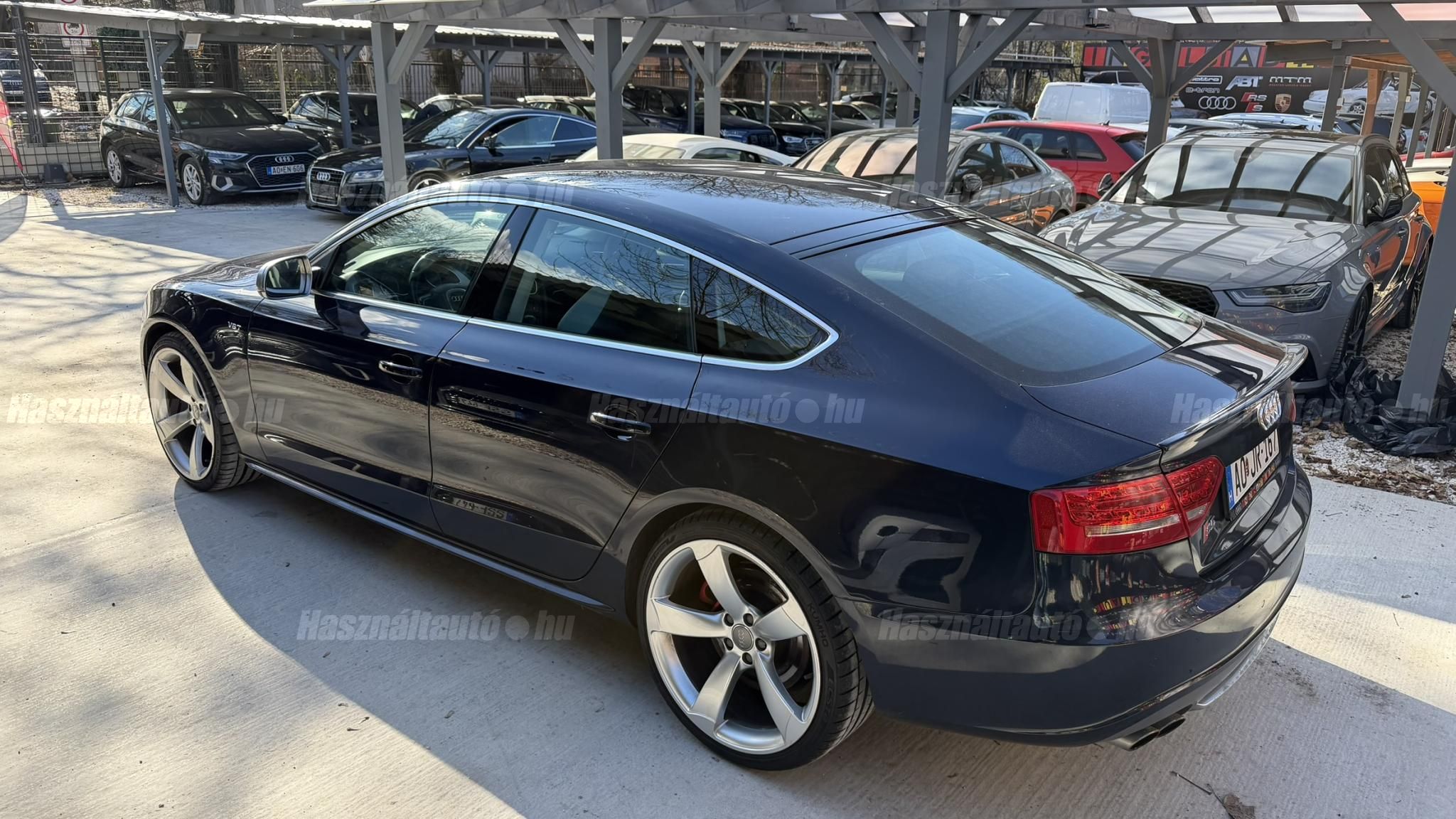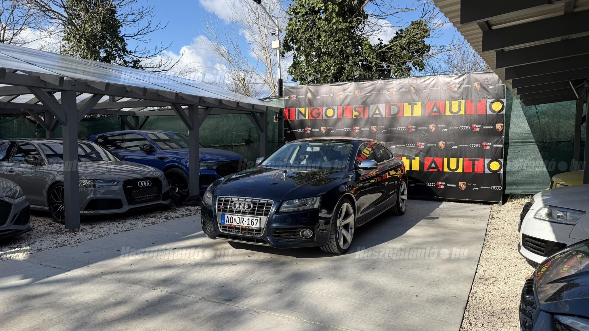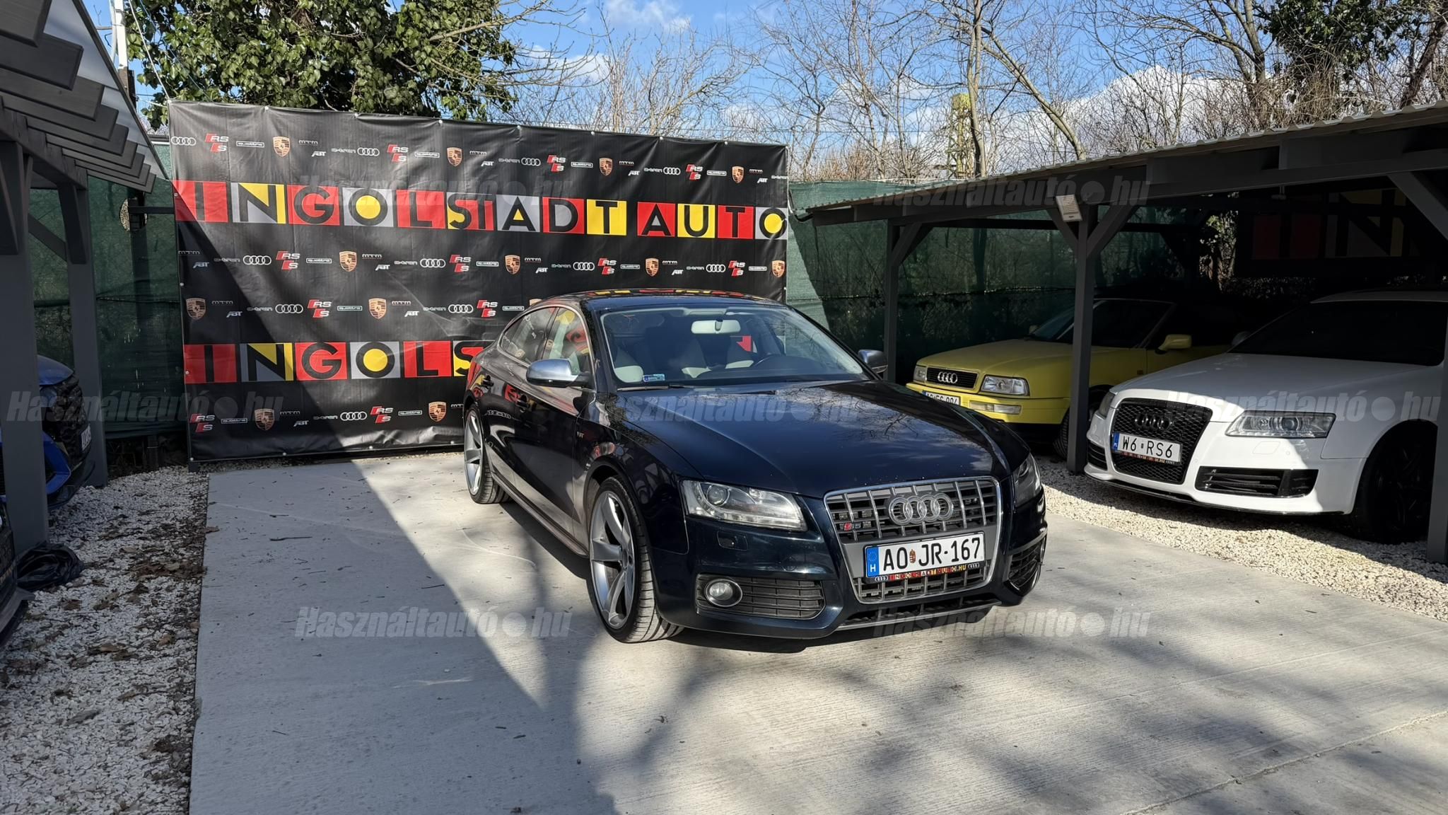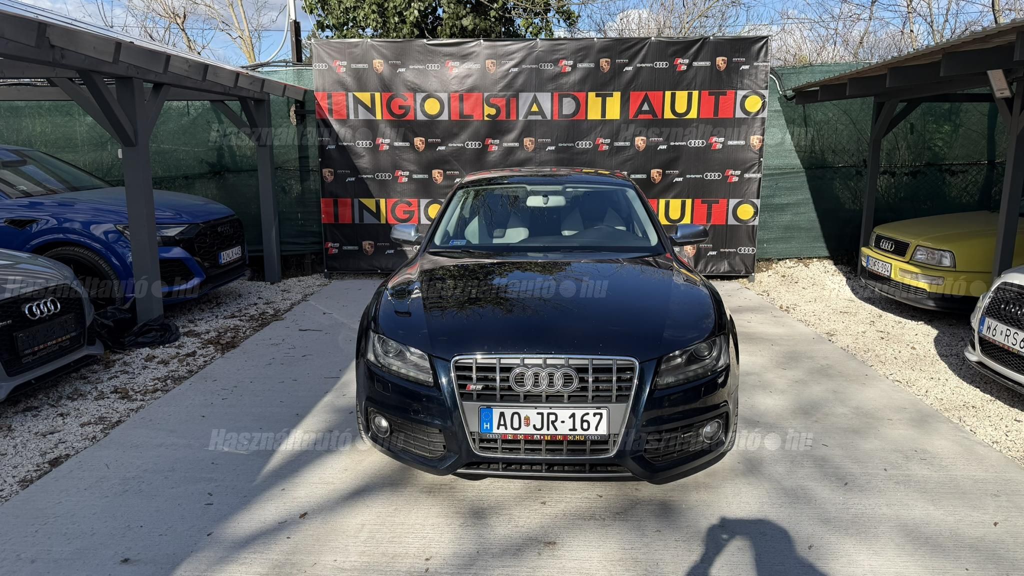 További 80 nagy felbontású kép: facebook/ingolstadtauto oldalunkon! AZ AUTÓK MEGTEKINTÉSÉHEZ MINDEN ESETBEN ELŐZETES TELEFONOS EGYEZTETÉS SZÜKSÉGES! ---------- RÉSZLET FIZETÉSSEL IS ELVIHETŐ: Nincs hitelbírálat, nem gond a BAR lista, nem kérünk jövedelemigazolást sem. Kezdő részlet: 4 millió Ft További részletek: 12 x 217.000Ft -havi részletekben egy éven át. NEM tartalmazza a kötelező biztosítás és a CASCO költségét, melyek feltételei a szerződés megkötésének. Magasabb kezdő részlet befizetése esetén a további havi részletek alcsonyabbak lehetnek. Alacsonyabb kezdő részlet befizetésére nincs lehetőség! További feltételekért és információkért keressen minket személyesen vagy telefonon. BANKI HITELÜGYINTÉZÉSben is tudunk segíteni ez 12-84 hónapig terjedő periódusra ütemezhető. Legalább 20% önrésszel vehető fel.----------TÍPUS/ÁLLAPOT---------- AZ ADOTT AUTÓRÓL:Gyönyörű állapotú, sötétkék Sportback. Fényezése szép, egyenletes. Egyedül a bal hátsó sárvédőn történt korábban egy kisebb javítás, a többi elem fényezése teljes mértékben gyári.A felnik gyári, 20-os RS Rotor Audi felnik, enyhén padkanyomos állapotban, szinte új nyári gumikkal. A beltér újszerű, minden eleme nagyon szép. Kagylóüléses, bi-color, full bőr kivitel, kiváló állapotban. Kopás-, karc- és kiülésmentes.Az összes TÜV-papírja rendelkezésre áll, így a kilométerfutás kétévente dokumentálva és végig igazolt.Szerkezetileg és motorikusan kifogástalan, minden extra tökéletesen működik. Az összes tartozék, gyári dokumentáció és két eredeti kulcs is megvan.A TÍPUSRÓL:A B8-as generáció, facelift előtti változata ma is kortalan formavilágot képvisel. A kompresszoros V6-os motorral az S5 továbbra is valódi sportos élményt nyújt. A kompresszor működésének köszönhetően a töltőnyomás gyakorlatilag azonnal rendelkezésre áll, így nincs turbólyuk és nincs késlekedés gyorsításkor ez az autó azonnal és rendkívül intenzíven gyorsul.A quattro hajtást nem kell külön bemutatni: aki Audis, tudja, hogy az egyik legjobb összkerékhajtási rendszer, amely kiváló tapadást és magas szintű biztonságot nyújt. Az S tronic gyors váltásai és kényelmes működése tovább fokozzák a vezetési élményt.----------EXTRÁK----------Sport felfüggesztésElöl ülésfűtés20 könnyűfém felnik (9Jx19) RotorKarbon betétekHátsó spoiler (2-es típus)Alumínium tükörházMemóriás, behajtható, fűthető, automata sötétedésű tükrökHőszigetelt üvegezésLED hátsó lámpákElső ködlámpákFényszórómosóXenon bi-funkciós fényszórókKülön nappali menetfényBelső tér, kényelmi felszerelésekSportülések elöl-hátulElektromos első ülések Bőr kárpitAutomata sötétedésű belső tükörElső kartámaszCsomagtér padlóburkolatFedélzeti számítógépTempomatCsomagtér élvédőOsztatlan hátsó ülés, osztott dönthető támlávalElső-hátsó szőnyegszettBőr/műanyag váltógombElső ISOFIX (jobb első)Hátsó ISOFIXESC menetstabilizátorElső légzsák + kikapcsolható utasoldaliElső oldallégzsák + függönylégzsákImmobilizerBiztonsági öv-ellenőrző elektronikaKerékcsavar lopásgátlóElsősegélycsomag és elakadásjelző háromszögInfotainment, kommunikációMobiltelefon interfészCD-tár + DVD lejátszóKülső elektromos csatlakozásKomfort és vezetéstámogató rendszerekParkolóradar elöl-hátulEső- és fényérzékelőEgy zónás klímaAUTÓINKAT 1-3 ÉVIG TERJEDŐ GARANCIÁVAL IS TUDJUK ÉRTÉKESÍTENI, MEGÁLLAPODÁS SZERINT. Autóbeszámítás vagy bármilyen kérdés esetén a lenti telefonszámon keressen vagy WhatsApp-on, Viberen is elérhetőek vagyunk (email-t ne írjon!). TOVÁBBI KÜLÖNLEGES AUDIKÉRT KÖVESSE KÍNÁLATUNKAT FACEBOOKON: INGOLSTADTAUTO |