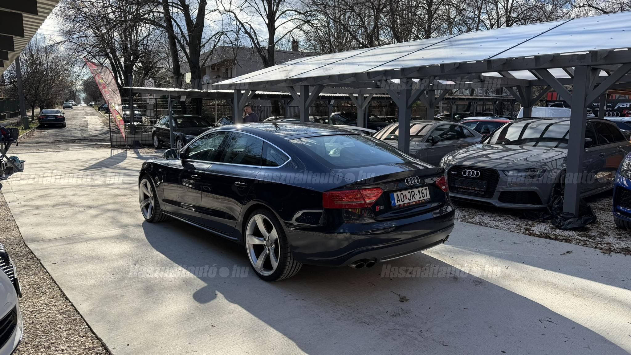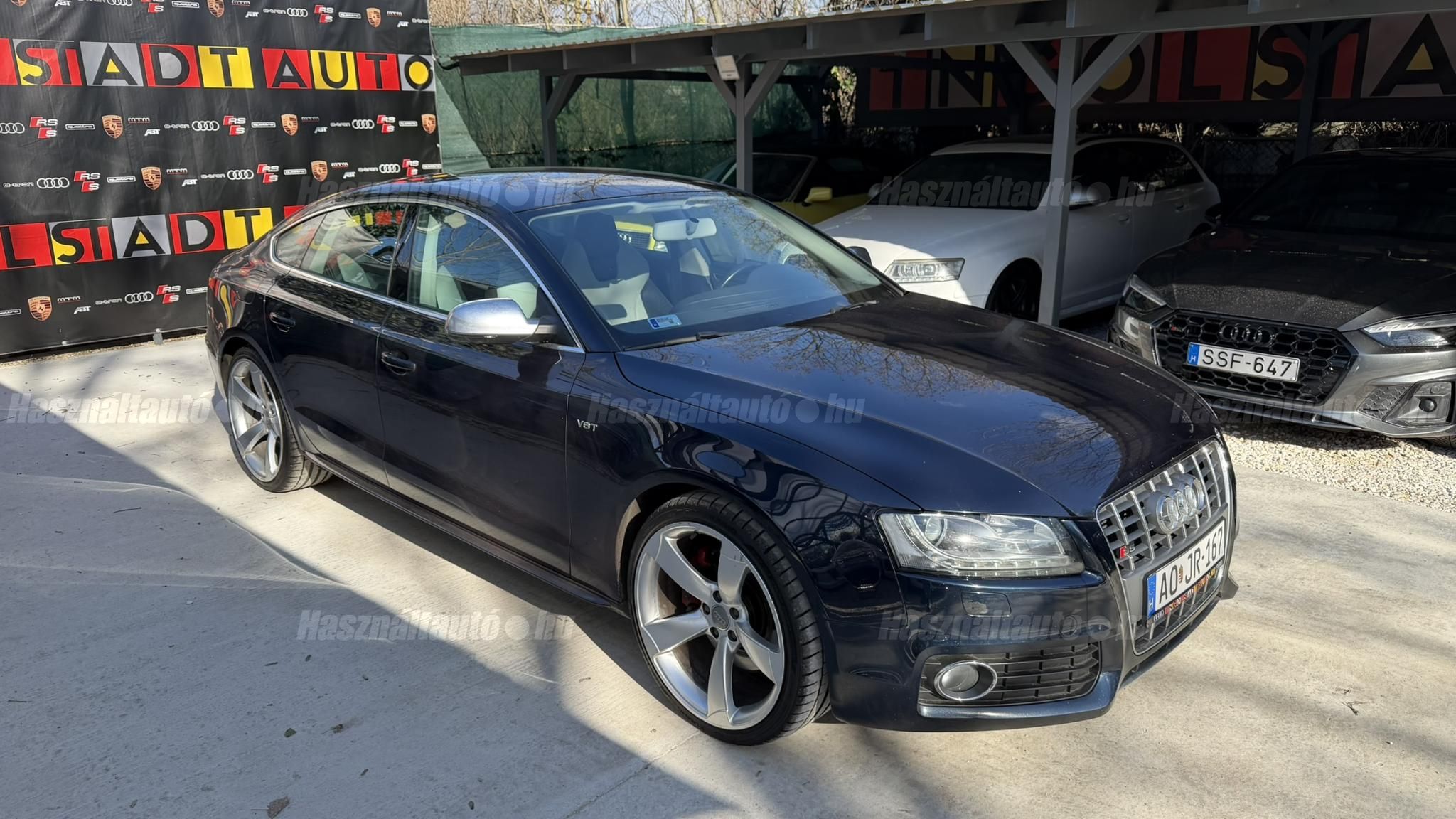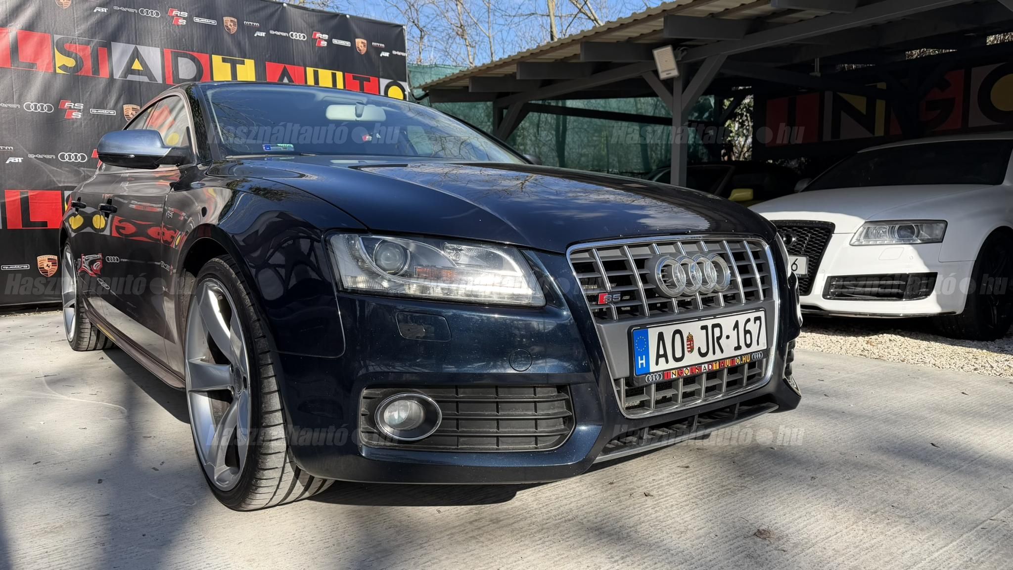 További 80 nagy felbontású kép: facebook/ingolstadtauto oldalunkon! AZ AUTÓK MEGTEKINTÉSÉHEZ MINDEN ESETBEN ELŐZETES TELEFONOS EGYEZTETÉS SZÜKSÉGES! ---------- RÉSZLET FIZETÉSSEL IS ELVIHETŐ: Nincs hitelbírálat, nem gond a BAR lista, nem kérünk jövedelemigazolást sem. Kezdő részlet: 4 millió Ft További részletek: 12 x 217.000Ft -havi részletekben egy éven át. NEM tartalmazza a kötelező biztosítás és a CASCO költségét, melyek feltételei a szerződés megkötésének. Magasabb kezdő részlet befizetése esetén a további havi részletek alcsonyabbak lehetnek. Alacsonyabb kezdő részlet befizetésére nincs lehetőség! További feltételekért és információkért keressen minket személyesen vagy telefonon. BANKI HITELÜGYINTÉZÉSben is tudunk segíteni ez 12-84 hónapig terjedő periódusra ütemezhető. Legalább 20% önrésszel vehető fel.----------TÍPUS/ÁLLAPOT---------- AZ ADOTT AUTÓRÓL:Gyönyörű állapotú, sötétkék Sportback. Fényezése szép, egyenletes. Egyedül a bal hátsó sárvédőn történt korábban egy kisebb javítás, a többi elem fényezése teljes mértékben gyári.A felnik gyári, 20-os RS Rotor Audi felnik, enyhén padkanyomos állapotban, szinte új nyári gumikkal. A beltér újszerű, minden eleme nagyon szép. Kagylóüléses, bi-color, full bőr kivitel, kiváló állapotban. Kopás-, karc- és kiülésmentes.Az összes TÜV-papírja rendelkezésre áll, így a kilométerfutás kétévente dokumentálva és végig igazolt.Szerkezetileg és motorikusan kifogástalan, minden extra tökéletesen működik. Az összes tartozék, gyári dokumentáció és két eredeti kulcs is megvan.A TÍPUSRÓL:A B8-as generáció, facelift előtti változata ma is kortalan formavilágot képvisel. A kompresszoros V6-os motorral az S5 továbbra is valódi sportos élményt nyújt. A kompresszor működésének köszönhetően a töltőnyomás gyakorlatilag azonnal rendelkezésre áll, így nincs turbólyuk és nincs késlekedés gyorsításkor ez az autó azonnal és rendkívül intenzíven gyorsul.A quattro hajtást nem kell külön bemutatni: aki Audis, tudja, hogy az egyik legjobb összkerékhajtási rendszer, amely kiváló tapadást és magas szintű biztonságot nyújt. Az S tronic gyors váltásai és kényelmes működése tovább fokozzák a vezetési élményt.----------EXTRÁK----------Sport felfüggesztésElöl ülésfűtés20 könnyűfém felnik (9Jx19) RotorKarbon betétekHátsó spoiler (2-es típus)Alumínium tükörházMemóriás, behajtható, fűthető, automata sötétedésű tükrökHőszigetelt üvegezésLED hátsó lámpákElső ködlámpákFényszórómosóXenon bi-funkciós fényszórókKülön nappali menetfényBelső tér, kényelmi felszerelésekSportülések elöl-hátulElektromos első ülések Bőr kárpitAutomata sötétedésű belső tükörElső kartámaszCsomagtér padlóburkolatFedélzeti számítógépTempomatCsomagtér élvédőOsztatlan hátsó ülés, osztott dönthető támlávalElső-hátsó szőnyegszettBőr/műanyag váltógombElső ISOFIX (jobb első)Hátsó ISOFIXESC menetstabilizátorElső légzsák + kikapcsolható utasoldaliElső oldallégzsák + függönylégzsákImmobilizerBiztonsági öv-ellenőrző elektronikaKerékcsavar lopásgátlóElsősegélycsomag és elakadásjelző háromszögInfotainment, kommunikációMobiltelefon interfészCD-tár + DVD lejátszóKülső elektromos csatlakozásKomfort és vezetéstámogató rendszerekParkolóradar elöl-hátulEső- és fényérzékelőEgy zónás klímaAUTÓINKAT 1-3 ÉVIG TERJEDŐ GARANCIÁVAL IS TUDJUK ÉRTÉKESÍTENI, MEGÁLLAPODÁS SZERINT. Autóbeszámítás vagy bármilyen kérdés esetén a lenti telefonszámon keressen vagy WhatsApp-on, Viberen is elérhetőek vagyunk (email-t ne írjon!). TOVÁBBI KÜLÖNLEGES AUDIKÉRT KÖVESSE KÍNÁLATUNKAT FACEBOOKON: INGOLSTADTAUTO |
