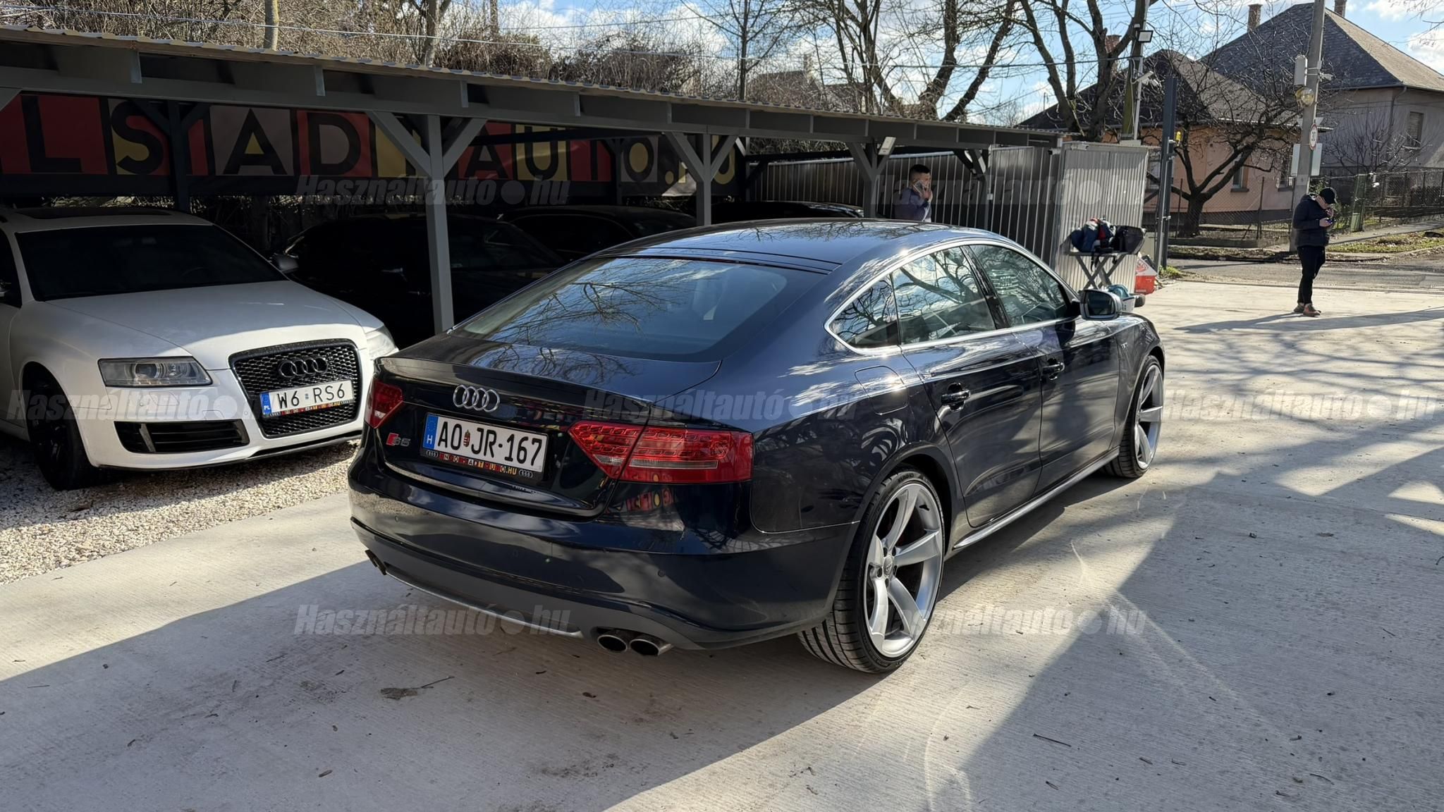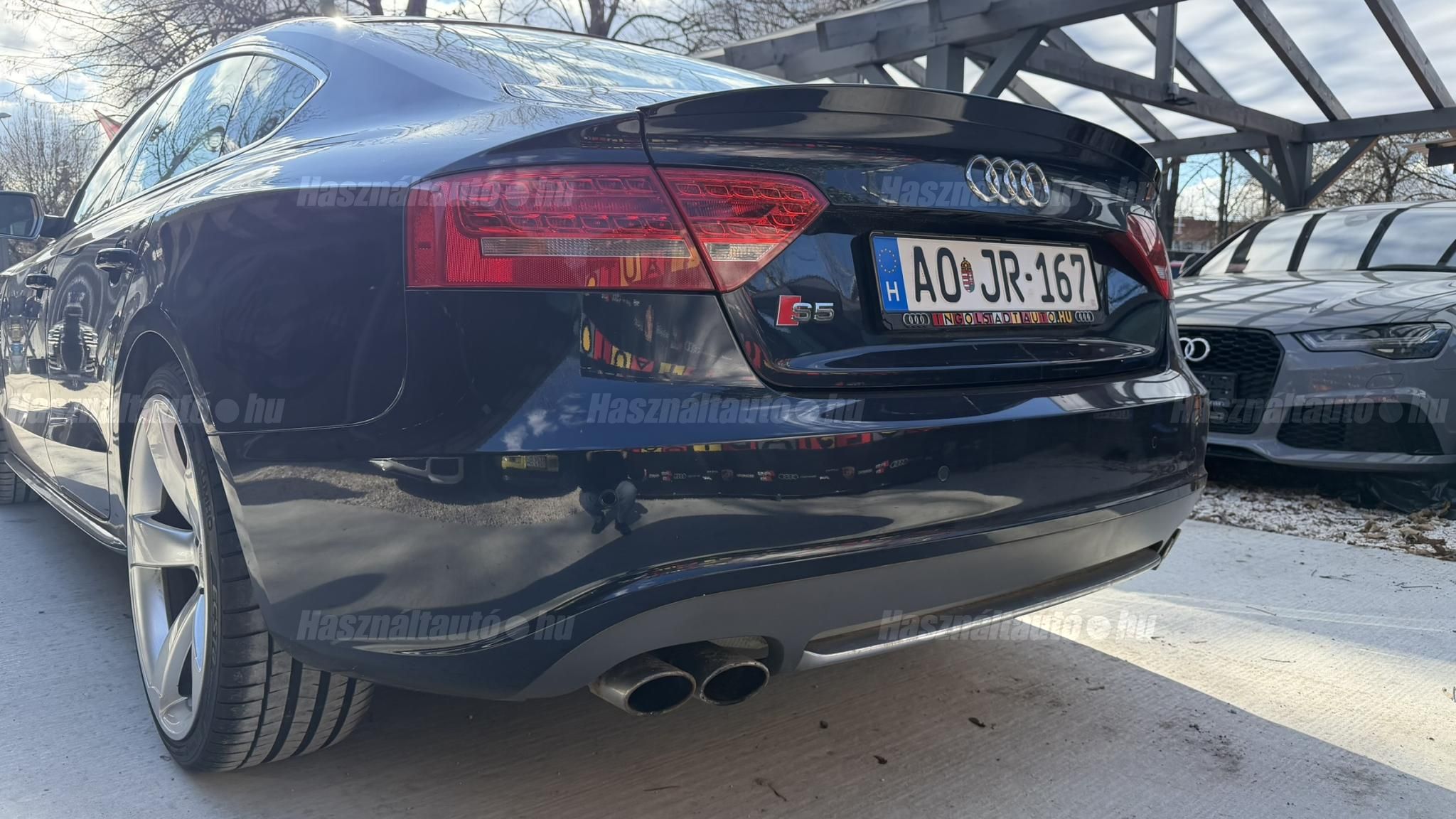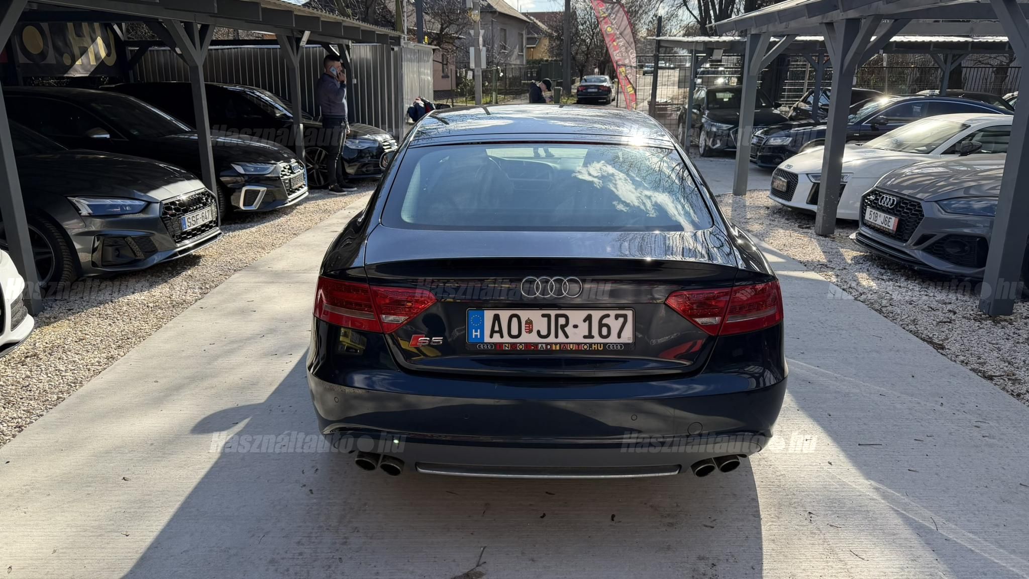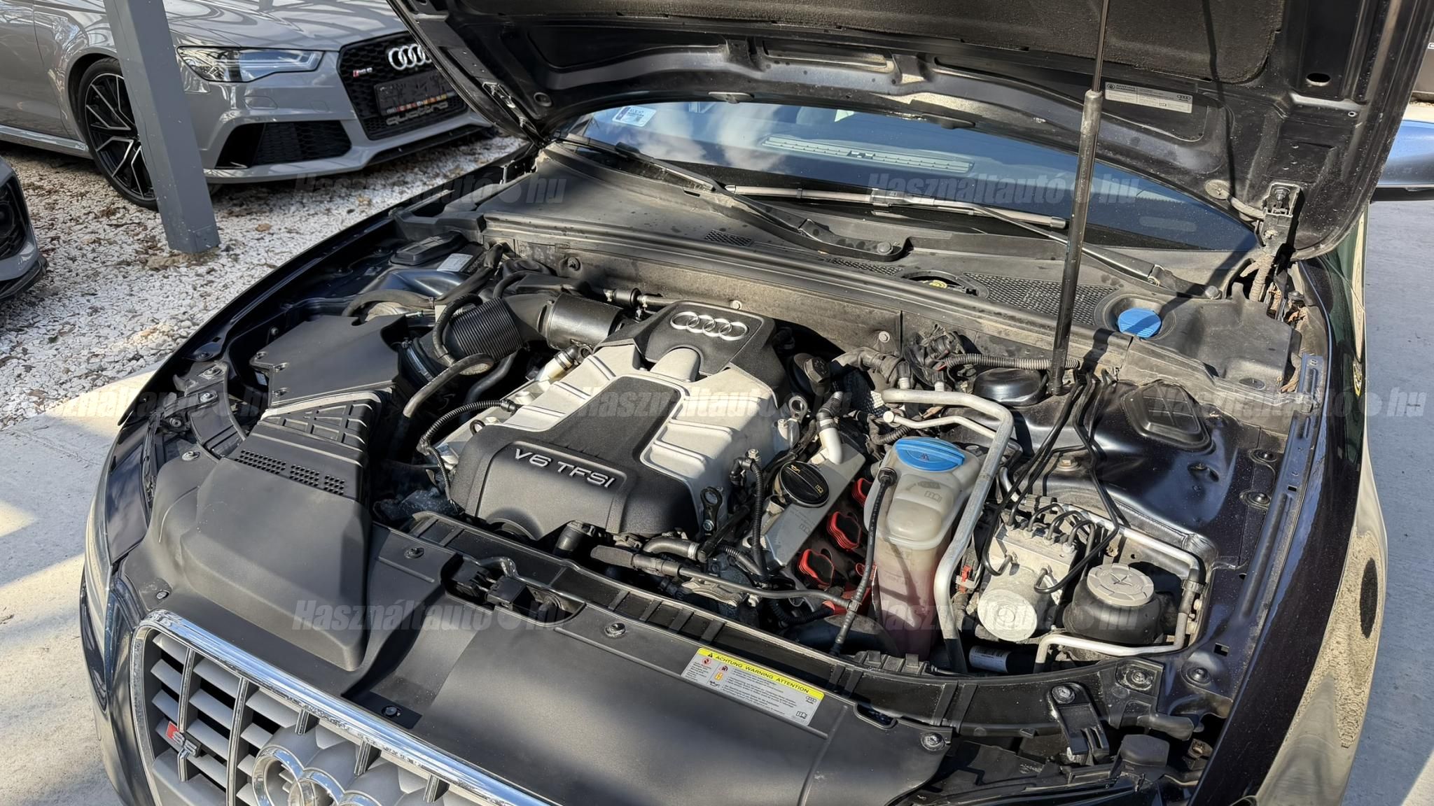 További 80 nagy felbontású kép: facebook/ingolstadtauto oldalunkon! AZ AUTÓK MEGTEKINTÉSÉHEZ MINDEN ESETBEN ELŐZETES TELEFONOS EGYEZTETÉS SZÜKSÉGES! ---------- RÉSZLET FIZETÉSSEL IS ELVIHETŐ: Nincs hitelbírálat, nem gond a BAR lista, nem kérünk jövedelemigazolást sem. Kezdő részlet: 4 millió Ft További részletek: 12 x 217.000Ft -havi részletekben egy éven át. NEM tartalmazza a kötelező biztosítás és a CASCO költségét, melyek feltételei a szerződés megkötésének. Magasabb kezdő részlet befizetése esetén a további havi részletek alcsonyabbak lehetnek. Alacsonyabb kezdő részlet befizetésére nincs lehetőség! További feltételekért és információkért keressen minket személyesen vagy telefonon. BANKI HITELÜGYINTÉZÉSben is tudunk segíteni ez 12-84 hónapig terjedő periódusra ütemezhető. Legalább 20% önrésszel vehető fel.----------TÍPUS/ÁLLAPOT---------- AZ ADOTT AUTÓRÓL:Gyönyörű állapotú, sötétkék Sportback. Fényezése szép, egyenletes. Egyedül a bal hátsó sárvédőn történt korábban egy kisebb javítás, a többi elem fényezése teljes mértékben gyári.A felnik gyári, 20-os RS Rotor Audi felnik, enyhén padkanyomos állapotban, szinte új nyári gumikkal. A beltér újszerű, minden eleme nagyon szép. Kagylóüléses, bi-color, full bőr kivitel, kiváló állapotban. Kopás-, karc- és kiülésmentes.Az összes TÜV-papírja rendelkezésre áll, így a kilométerfutás kétévente dokumentálva és végig igazolt.Szerkezetileg és motorikusan kifogástalan, minden extra tökéletesen működik. Az összes tartozék, gyári dokumentáció és két eredeti kulcs is megvan.A TÍPUSRÓL:A B8-as generáció, facelift előtti változata ma is kortalan formavilágot képvisel. A kompresszoros V6-os motorral az S5 továbbra is valódi sportos élményt nyújt. A kompresszor működésének köszönhetően a töltőnyomás gyakorlatilag azonnal rendelkezésre áll, így nincs turbólyuk és nincs késlekedés gyorsításkor ez az autó azonnal és rendkívül intenzíven gyorsul.A quattro hajtást nem kell külön bemutatni: aki Audis, tudja, hogy az egyik legjobb összkerékhajtási rendszer, amely kiváló tapadást és magas szintű biztonságot nyújt. Az S tronic gyors váltásai és kényelmes működése tovább fokozzák a vezetési élményt.----------EXTRÁK----------Sport felfüggesztésElöl ülésfűtés20 könnyűfém felnik (9Jx19) RotorKarbon betétekHátsó spoiler (2-es típus)Alumínium tükörházMemóriás, behajtható, fűthető, automata sötétedésű tükrökHőszigetelt üvegezésLED hátsó lámpákElső ködlámpákFényszórómosóXenon bi-funkciós fényszórókKülön nappali menetfényBelső tér, kényelmi felszerelésekSportülések elöl-hátulElektromos első ülések Bőr kárpitAutomata sötétedésű belső tükörElső kartámaszCsomagtér padlóburkolatFedélzeti számítógépTempomatCsomagtér élvédőOsztatlan hátsó ülés, osztott dönthető támlávalElső-hátsó szőnyegszettBőr/műanyag váltógombElső ISOFIX (jobb első)Hátsó ISOFIXESC menetstabilizátorElső légzsák + kikapcsolható utasoldaliElső oldallégzsák + függönylégzsákImmobilizerBiztonsági öv-ellenőrző elektronikaKerékcsavar lopásgátlóElsősegélycsomag és elakadásjelző háromszögInfotainment, kommunikációMobiltelefon interfészCD-tár + DVD lejátszóKülső elektromos csatlakozásKomfort és vezetéstámogató rendszerekParkolóradar elöl-hátulEső- és fényérzékelőEgy zónás klímaAUTÓINKAT 1-3 ÉVIG TERJEDŐ GARANCIÁVAL IS TUDJUK ÉRTÉKESÍTENI, MEGÁLLAPODÁS SZERINT. Autóbeszámítás vagy bármilyen kérdés esetén a lenti telefonszámon keressen vagy WhatsApp-on, Viberen is elérhetőek vagyunk (email-t ne írjon!). TOVÁBBI KÜLÖNLEGES AUDIKÉRT KÖVESSE KÍNÁLATUNKAT FACEBOOKON: INGOLSTADTAUTO |