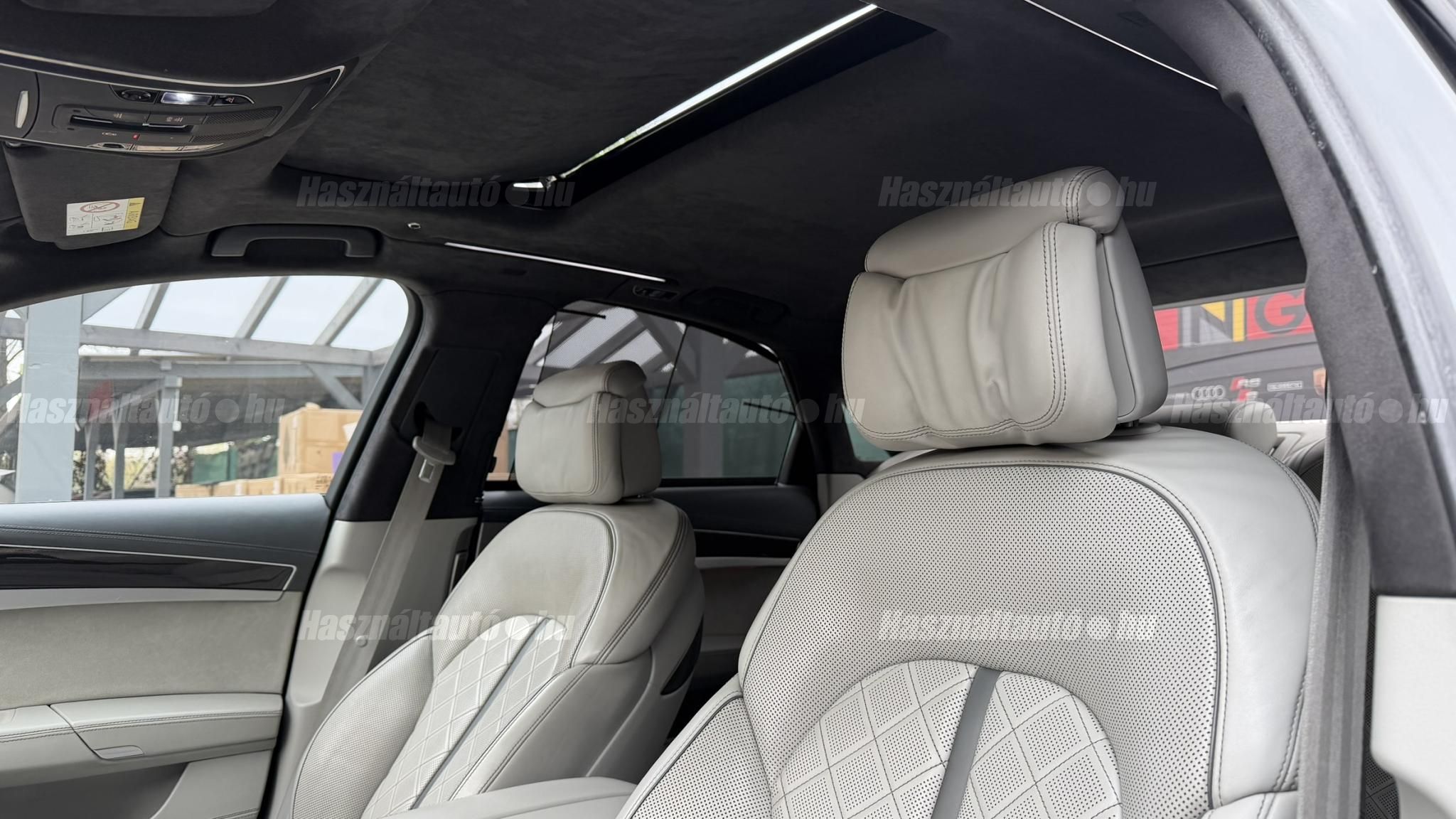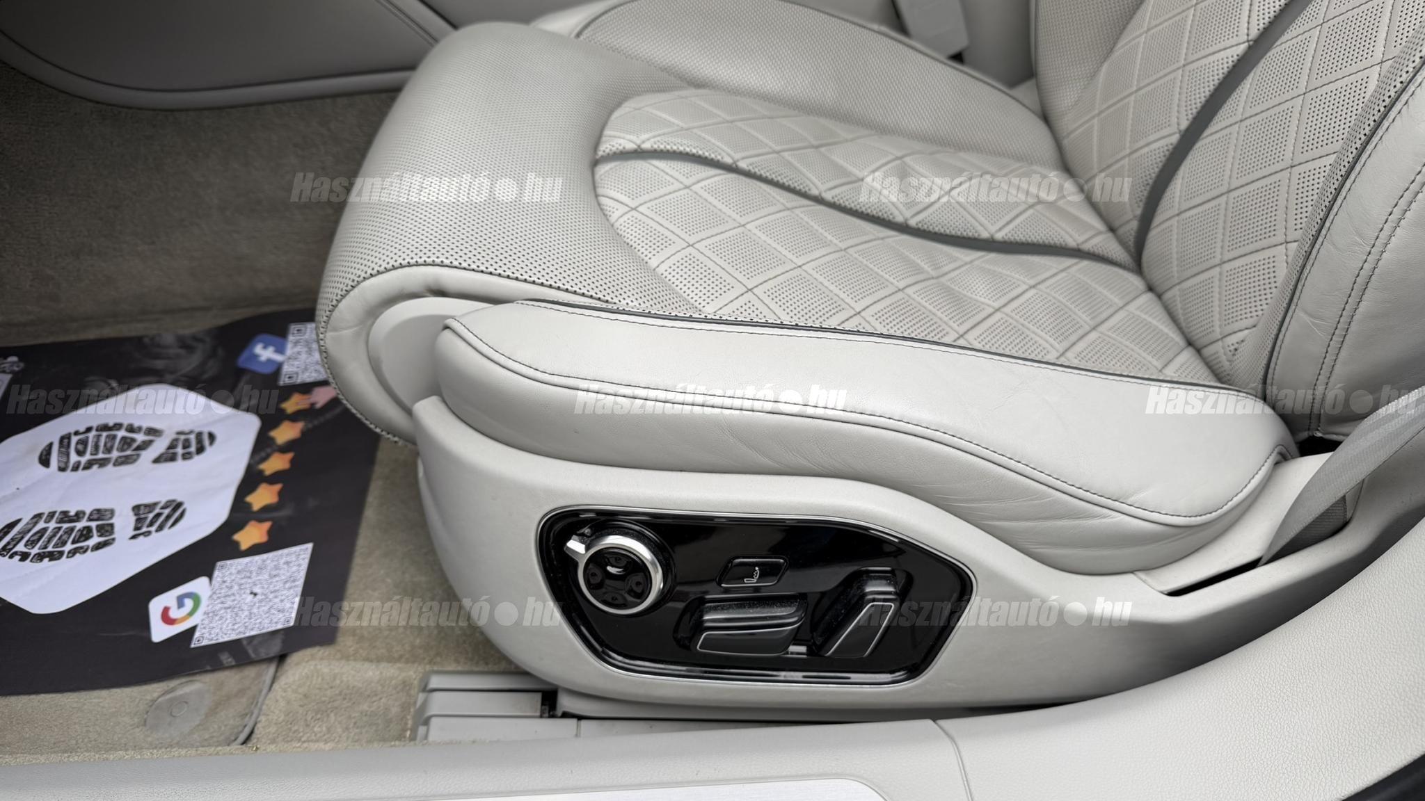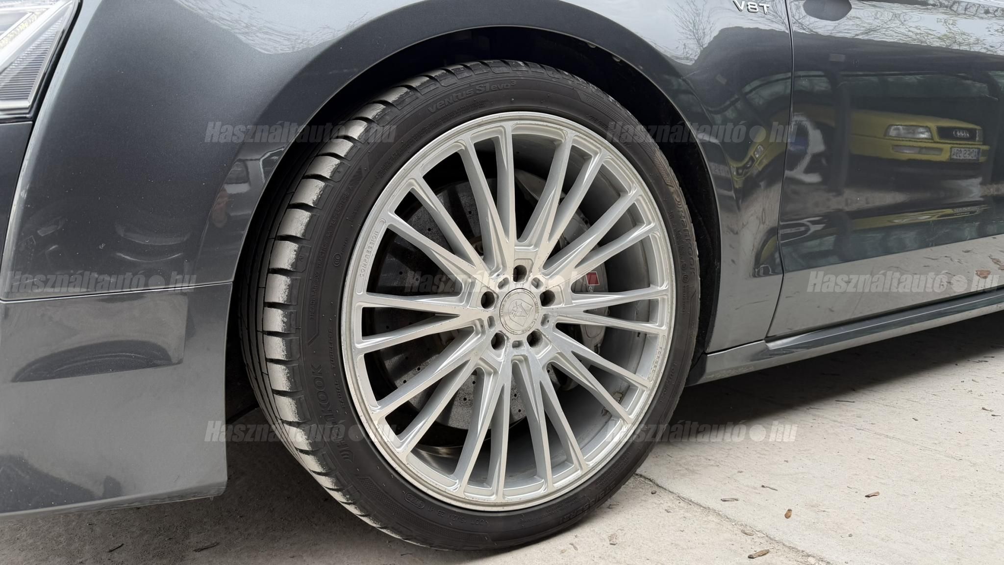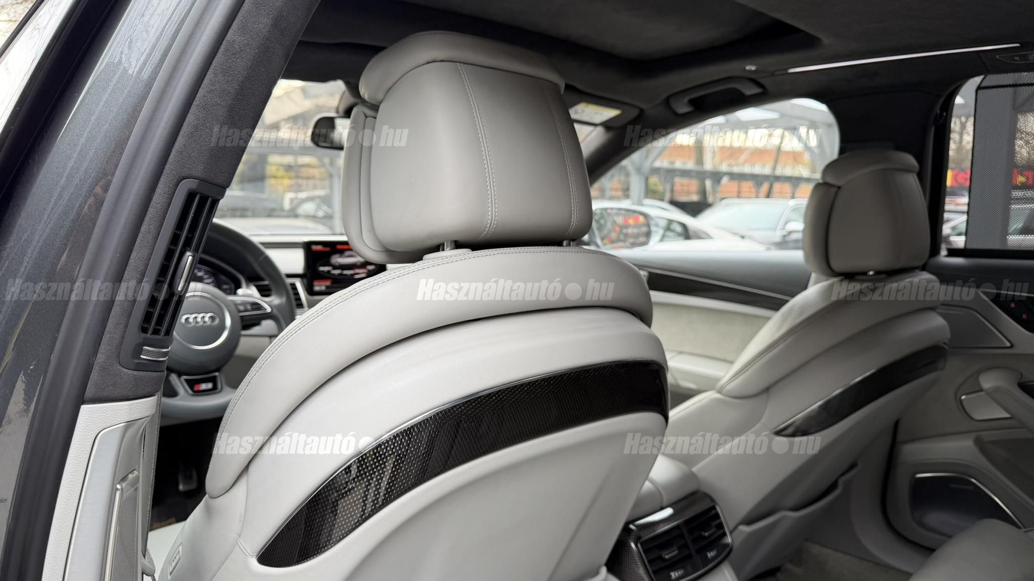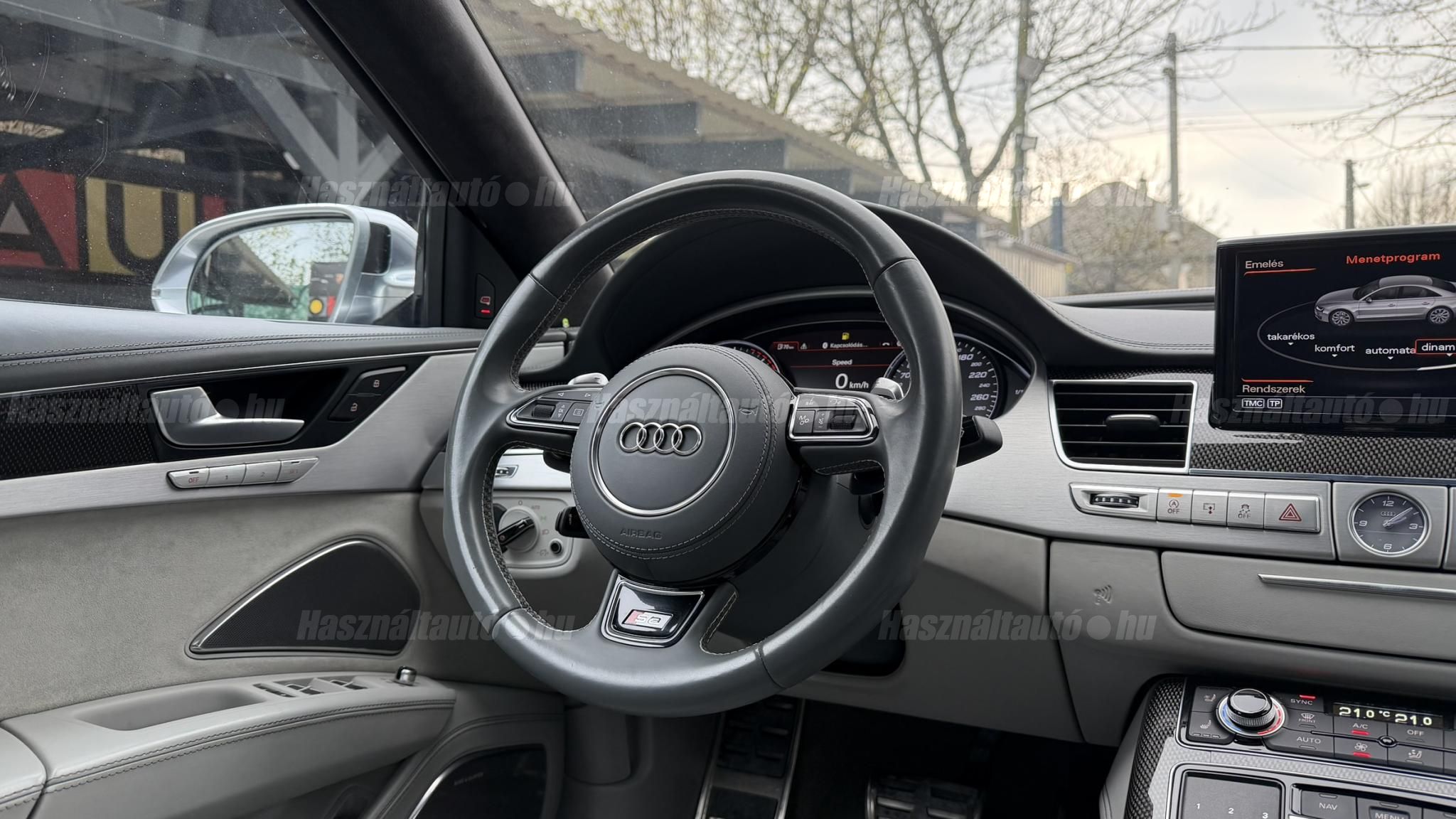 További 50 nagy felbontású kép: facebook/ingolstadtauto oldalunkon! AZ AUTÓK MEGTEKINTÉSÉHEZ MINDEN ESETBEN ELŐZETES TELEFONOS EGYEZTETÉS SZÜKSÉGES! BANKI HITELÜGYINTÉZÉSben is tudunk segíteni ez 12-84 hónapig terjedő periódusra ütemezhető. Legalább 20% önrésszel vehető fel.----------TÍPUS/ÁLLAPOT----------AZ ADOTT AUTÓRÓL:Gyönyörű Daytona Grau színű, sportos luxuslimuzin. Vezetett szervizkönyves. 2016/01-ben egy márkaszervizes visszahíváson vett részt, ahol az autót teljes körűen átvizsgálták. A turbók és a vezérlés is rendben vannak.Teljesen törésmentes, a fényezése szép, mindenhol egységes.A típusból kétféle változat készült: egy 520 lóerős alapverzió, illetve egy 605 lóerős Plus kivitel. Jelentős műszaki különbség nincs közöttük, a turbók, a motor és a váltó is azonos. Mindkét verzió egy STAGE 1 programmal kb. 680 lóerő / 900 Nm teljesítményre módosítható. Ez az S8 is ilyen STAGE 1 programmal kerül átadásra.A beltér megkímélt állapotú, nincsenek benne megmagyarázhatatlan, barbár sérülések. A szellőztethető, fűthető és masszázsfunkciós komfortülések az Audi egyik legkényelmesebb ülései közé tartoznak. Minden irányban elektromosan állíthatók (deréktámasz, oldaltartás, vállrész), így maximális kényelmet biztosítanak.A beltérben többféle anyag és szín találkozik, mégis tökéletes harmóniát alkotnak. Az autót Carbon csomaggal rendelték, így a luxus megjelenés mellett a sportosság is hangsúlyos.Nagyon sok extra található benne, ezeket a videóban részletesen bemutatjuk.Szerkezetileg és motorikusan hibátlan, minden extra tökéletesen működik.A 21 colos, préseléssel kovácsolt Axe felnik jó állapotúak, minimális sérülések láthatók rajtuk. Jelenleg jó állapotú Hankook nyári gumikkal szerelt.A kerámia fékrendszer állapota jó, a fékbetétek még nincsenek kopásjelzőn.Minden tartozék rendelkezésre áll: összes gyári dokumentáció, vezetett szervizkönyv, valamint 2 db eredeti kulcs.A TÍPUSRÓL: Larry, mondd el Vincentnek, mire van szükséged! Valami nagyon gyors kell. Egy Audi S8-as. Olyan, ami odalép… ha kell./Ronin/Az Audi S8 ikonikus modell lett nemcsak gyors, hanem harcra kész is volt, és a filmjelenet sokunkban maradandó élményt hagyott.Az Audi legnagyobb luxuslimuzinja, amelyben tökéletesen ötvöződik a sportosság, a kényelem és a luxus. Nemrég mentem vele egy kört pályán állapotfelmérés keretében, és még mindig megvan a respektje az utakon megjelenése mai szemmel is tiszteletet parancsoló.Ez az Audi S8 D4 facelift egy 4.0 literes, V8 biturbó motorral szerelt csúcsmodell, amely ebben a kivitelben 520 lóerőt és 650 Nm nyomatékot kínál.A motorhoz az Audi egyik legmegbízhatóbb, 8 fokozatú tiptronic automata váltója, valamint az állandó quattro összkerékhajtás társul, amely kiemelkedő stabilitást és tapadást biztosít.A V8-as motor karaktere lineáris és rendkívül kifinomult: alacsony fordulaton nyomatékos, magasabb tartományban pedig sportosan húz, mindezt szinte késlekedés nélkül. A turbók a hengersorok között helyezkednek el (hot V kialakítás), ami gyorsabb reakciót és hatékonyabb működést eredményez.A konstrukció különlegessége, hogy a nagy teljesítmény ellenére a hengerlekapcsolásos rendszernek (COD) köszönhetően képes gazdaságosabban is üzemelni.Gyári fogyasztási adatok:Városi fogyasztás: 13.6l/100kmOrszágúti fogyasztás: 7.3l/100kmVegyes fogyasztás: 9.6l/100km----------EXTRÁK----------4x ülésfűtésKormányfűtésVezetéstámogató rendszer: Sávváltó és sávtartó asszisztens (Side Assist és aktív sávtartó asszisztens) beleértve a z első és hátsó érzékelőketKipörgésgátló rendszer (ASR)Hátsó ablakok sötétítettek, beleértve a dupla üvegezéstMMI Touch (Érintőképernyő)Audi zenei interfaceMultimédia interfész MMIUniverzális Bluetooth csatlakozóAdaptív féklámpaAktív zajszűrés (ANC)Ambient világításRádió kiegészítő: Audi zenei interfészAutomatikus légkeringés-szabályozásKülső és belső világítási csomagKülső világítási csomagAszférikus külső tükör, balKülső aszferikus tükör, jobbLED irányjelzők az oldaltükrökben integrálvaFékrendszer visszanyerési rendszerrelLopásvédelem a kerekekhez (kerékzárak)Ajtó küszöbvédők monogrammalHátsó üléssor elrendezése Csomagtér csomagAutomata sebességváltó - Tiptronic (8 sebességes)Hátsó pohártartóPohártartó a középső konzolbanBelső felszerelés szénszálas befejező betétekkelBelső felszerelés: Betétek alsó befejezéssel Csiszolt alumíniumBelső kialakítás: kibővített alumínium hatásBelső visszapillantó tükör automatikus vakításgátló rendszerrelKarosszéria: 4 ajtóElülső Comfort sportülés csomagTeljes bőr csomagAlcantara csomagElektromosan állítható szervó (kormánykerék)Megvilágított sminktükörElektromechanikus kézifékPótkerék mint vészkerekKörnyezetvédelmi rendszer Euro 6 szabványBőr sebességváltókarAutomatikus ajtózárÜléshűtés és masszázsfunkció elölÜléshuzat / kárpitozás: Alcantara / Valcona bőrSpeciális festés Daytona GrauHangrendszer Bang&OlufsenElektromos napellenző redőny a hátsó ablakonNapellenző redőny a hátsó ablakon és a hátsó oldalsó ablakon elektromosan.Gumikontroll mutatóÉjjellátó360-as kameraAudi Matrix LED fényszórókVezetéstámogató rendszer: Sebességkorlát jelzőLED hátsó lámpákFékasszisztensElülső középső kartámasz Kényelmi felszerelésAutomatikus csomagtérajtó nyitásCsomagtér-ajtó zárássegítőFény- és esőérzékelőSport kipufogó rendszerElektromosan állítható, fűthető és behajtható külső tükrök automatikus sötétítéssel és járdafunkcióvalKülső tükör automata járdaparkolással, jobbElektromosan állítható külső tükrök, memór