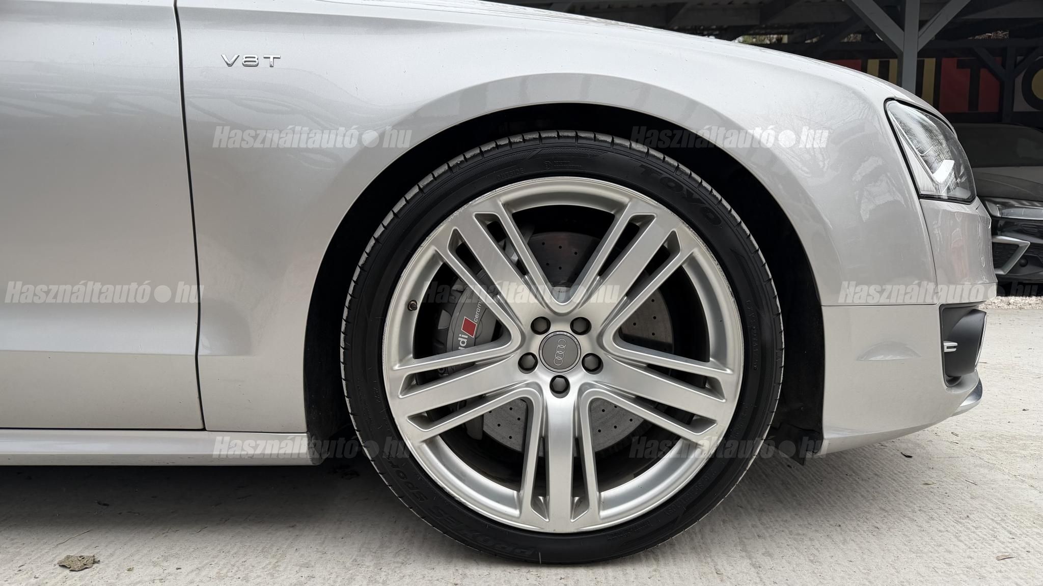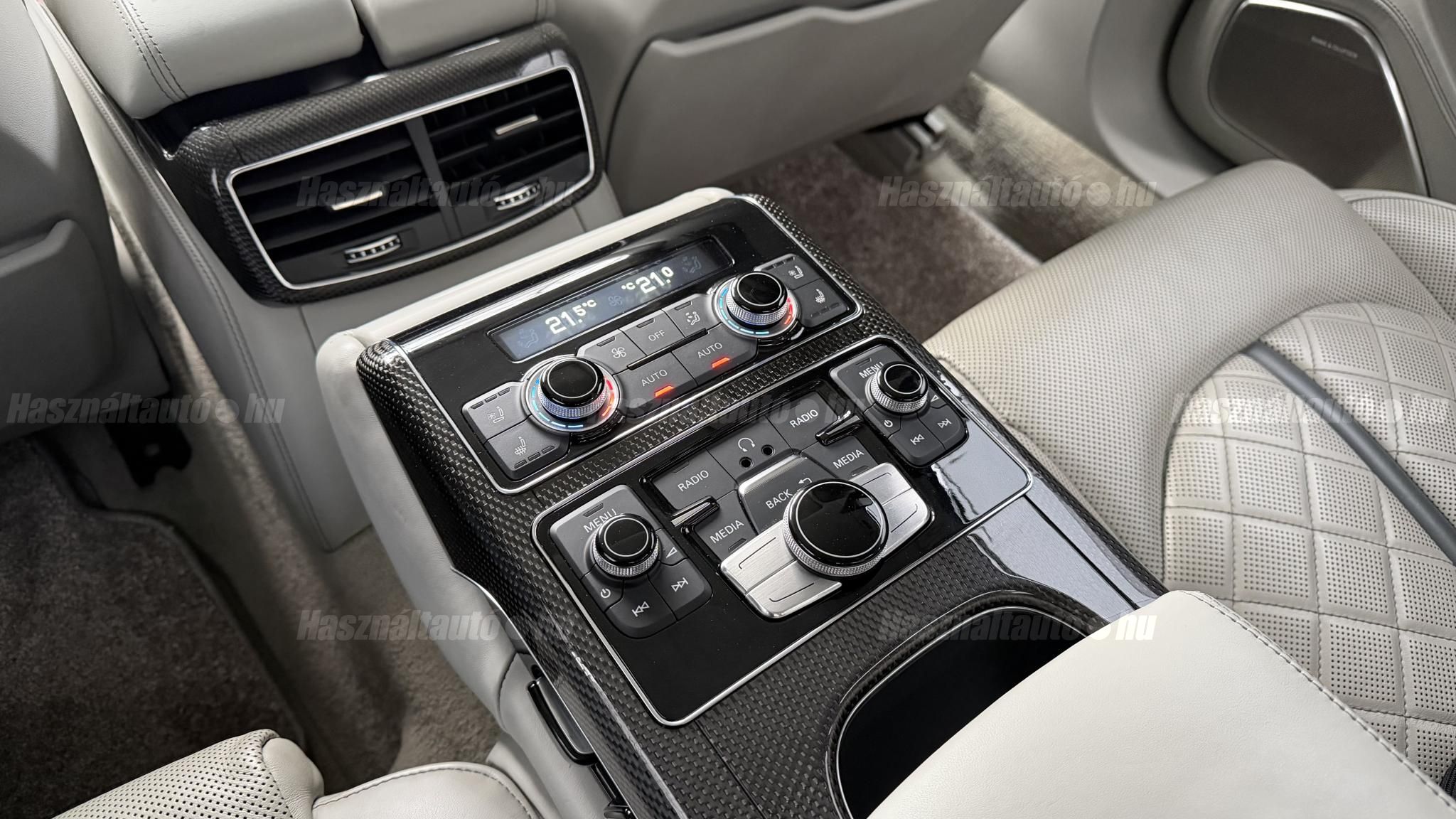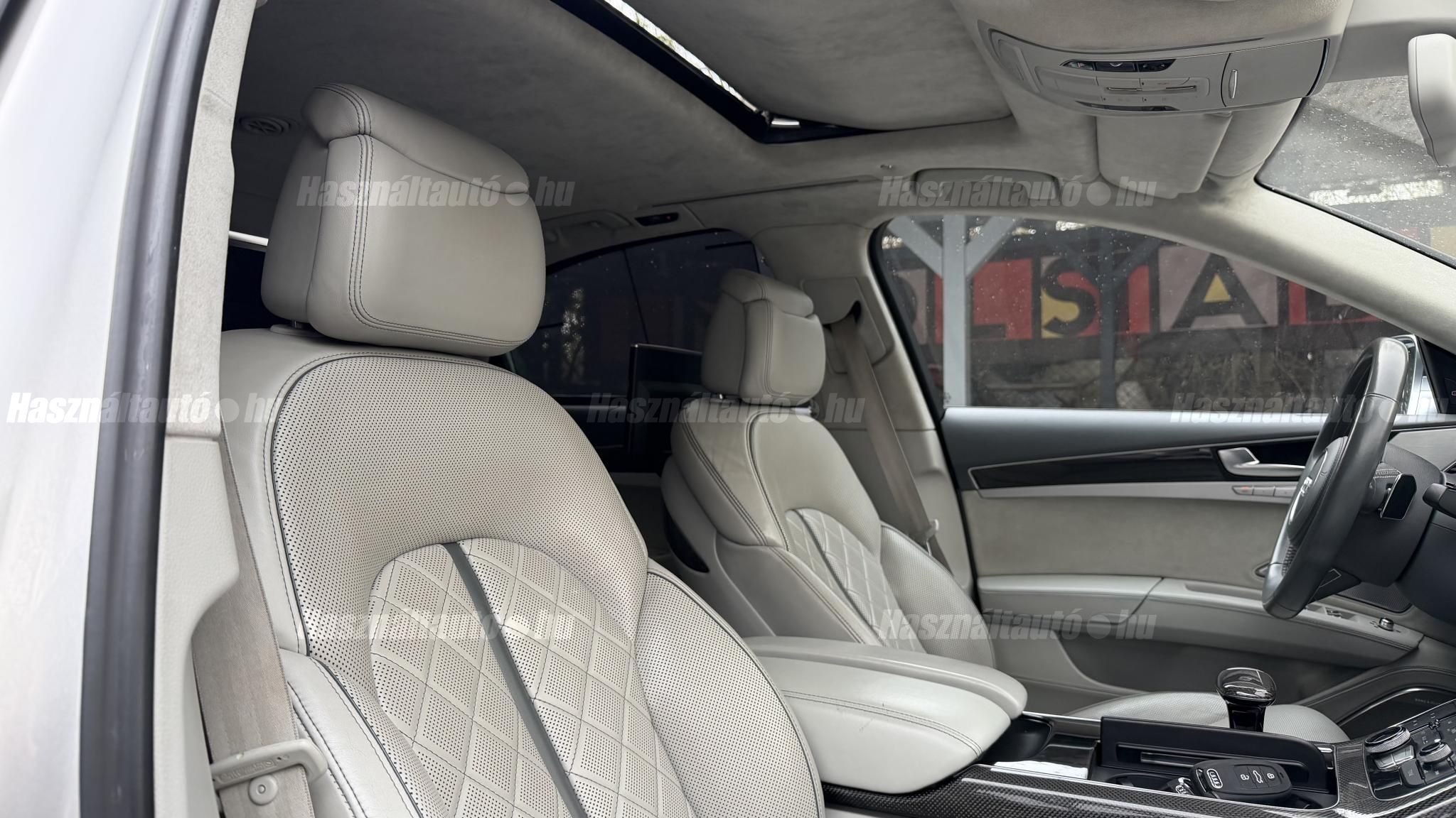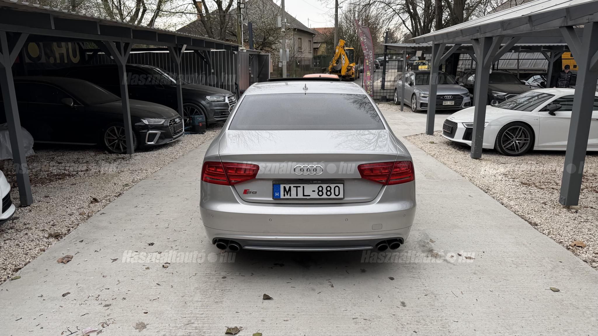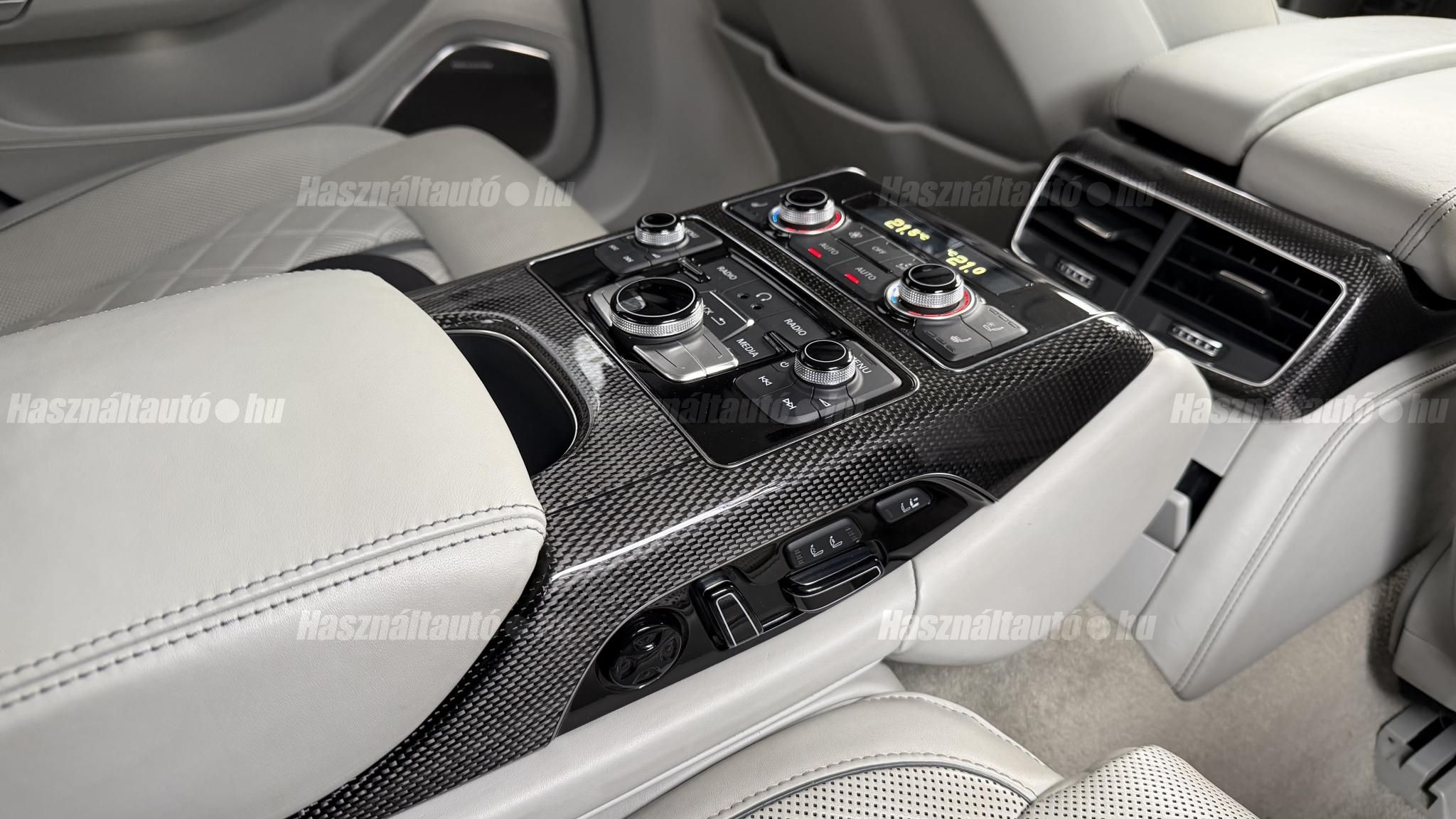 További 50 nagy felbontású kép: facebook/ingolstadtauto oldalunkon! AZ AUTÓK MEGTEKINTÉSÉHEZ MINDEN ESETBEN ELŐZETES TELEFONOS EGYEZTETÉS SZÜKSÉGES! BANKI HITELÜGYINTÉZÉSben is tudunk segíteni ez 12-84 hónapig terjedő periódusra ütemezhető. Legalább 20% önrésszel vehető fel.----------TÍPUS/ÁLLAPOT----------AZ ADOTT AUTÓRÓL:Gyönyörű Floret Silver színű, sportos luxuslimuzin.Fényezése szép, egységes. A két első sárvédő volt fényezve, motorháztető meg a bal hátsó sárvédő.A beltér megkímélt állapotú, nincsenek benne megmagyarázhatatlan, barbár sérülések. A szellőztethető, fűthető és masszázsfunkciós komfortülések az Audi egyik legkényelmesebb ülései közé tartoznak. Minden irányban elektromosan állíthatók (deréktámasz, oldaltartás, vállrész), így maximális kényelmet biztosítanak.Ennek részeként a hátsó ülések elektromosan állíthatók, így a háttámla dőlésszöge és az ülés pozíciója egyénileg szabályozható. Ez lehetővé teszi, hogy az utasok hosszabb utakon is maximális kényelemben, akár félig fekvő pozícióhoz közel utazzanak.A rendszer sok esetben kiegészül további prémium funkciókkal is, mint például:ülésfűtés és szellőztetés, masszázs funkció, valamint egyes kiviteleknél különálló, középkonzolos kialakítás, amely még exkluzívabb érzetet biztosít. A hátsó komfort csomaggal az S8 nem csupán vezetési élményben nyújt kiemelkedőt, hanem utasként is egy valódi luxuslimuzin szintjét hozza ideális választás azok számára, akik nemcsak vezetni, hanem utazni is a legmagasabb színvonalon szeretnének.A beltérben többféle anyag és szín találkozik, mégis tökéletes harmóniát alkotnak. Az autót Carbon csomaggal rendelték, így a luxus megjelenés mellett a sportosság is hangsúlyos.Nagyon sok extra található benne, ezeket a videóban részletesen bemutatjuk.Szerkezetileg és motorikusan hibátlan, minden extra tökéletesen működik.A 21 colos, Gyári Audi felnik jó állapotúak, minimális sérülések láthatók rajtuk. Jelenleg jó állapotú nyári gumikkal szerelt.A kerámia fékrendszer állapota jó, a fékbetétek még nincsenek kopásjelzőn.Minden tartozék rendelkezésre áll: összes gyári dokumentáció, vezetett szervizkönyv, valamint 2 db eredeti kulcs.A TÍPUSRÓL:Az Audi S8 D4 facelift előtti modelle 4.0 TFSI az Audi zászlóshajója, ahol a luxus és a teljesítmény valóban egy szinten van kezelve. Egy olyan autó, amely nem hivalkodik, mégis azonnal érezhető a jelenléte megjelenése még ma is komoly tekintélyt sugároz az utakon.Ebben a modellben a 4.0 literes, V8 biturbó erőforrás dolgozik, amely 520 lóerőt és 650 Nm nyomatékot biztosít. A hajtáslánc kifinomultsága és ereje tökéletes összhangban van: erőteljes, mégis finoman adagolható teljesítményt nyújt minden helyzetben.A motorhoz egy 8 fokozatú tiptronic automata váltó kapcsolódik, amely tartósságáról és megbízhatóságáról ismert, míg az állandó quattro összkerékhajtás gondoskodik arról, hogy az autó mindig stabilan és kiszámíthatóan viselkedjen, akár dinamikusabb használat mellett is.A V8-as motor működése rendkívül kifinomult: alacsony fordulaton is erőteljes, magasabb tartományban pedig folyamatosan, megszakítás nélkül építi fel a teljesítményt. A turbófeltöltők a hengersorok között kaptak helyet (ún. hot V elrendezés), ami gyors reakciót és hatékony működést eredményez.A technikai megoldások közül kiemelendő a hengerlekapcsolásos rendszer (COD), amely részterhelésnél csökkenti a fogyasztást, így a teljesítményhez képest meglepően élhető fenntartást tesz lehetővé.Gyári fogyasztási adatok:Városi fogyasztás: 14.4l/100kmOrszágúti fogyasztás: 7.6l/100kmVegyes fogyasztás: 10.1l/100kmAUTÓINKAT 1-3 ÉVIG TERJEDŐ GARANCIÁVAL IS TUDJUK ÉRTÉKESÍTENI, MEGÁLLAPODÁS SZERINT. Autóbeszámítás vagy bármilyen kérdés esetén a lenti telefonszámon keressen vagy WhatsApp-on, Viberen is elérhetőek vagyunk (email-t ne írjon!). TOVÁBBI KÜLÖNLEGES AUDIKÉRT KÖVESSE KÍNÁLATUNKAT FACEBOOKON: INGOLSTADTAUTO |