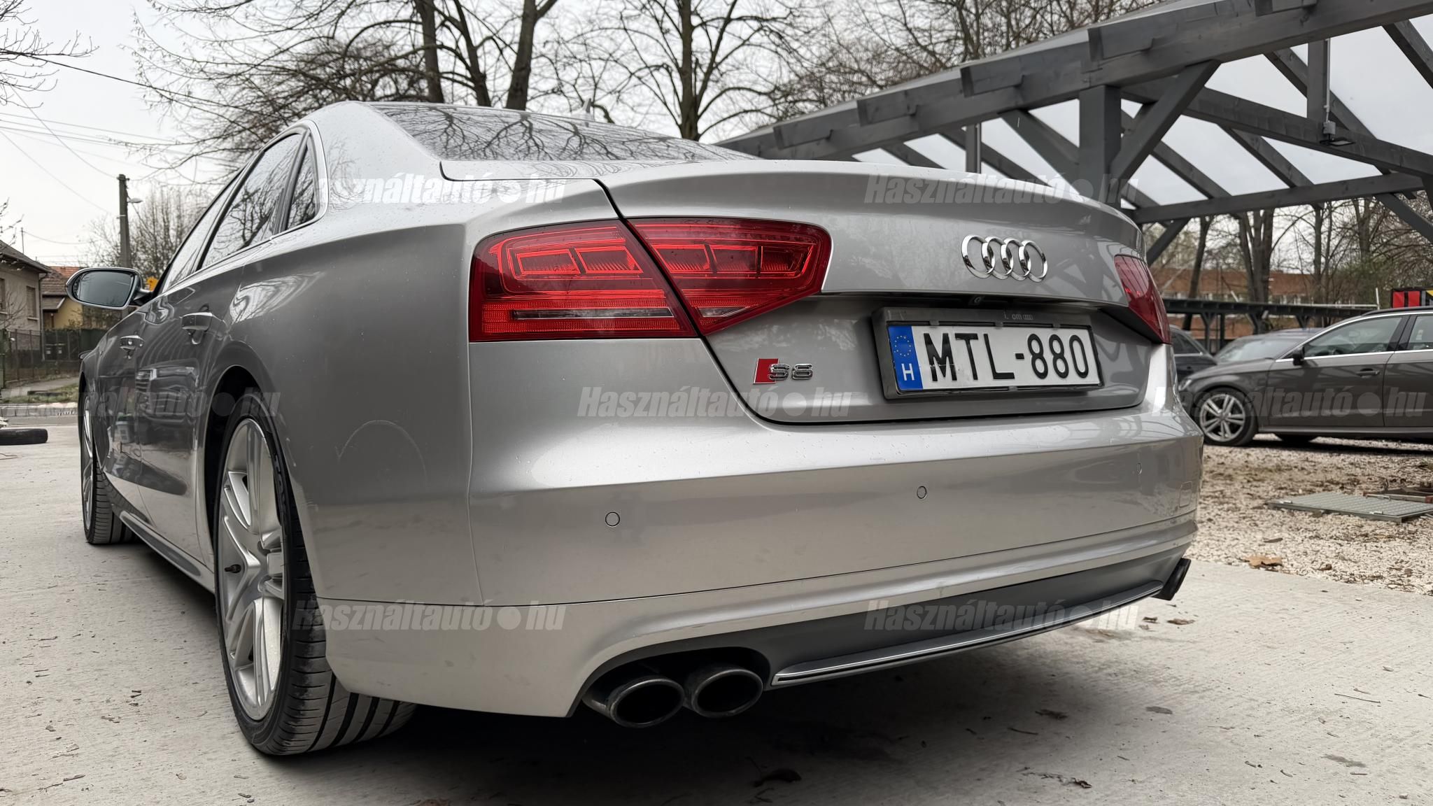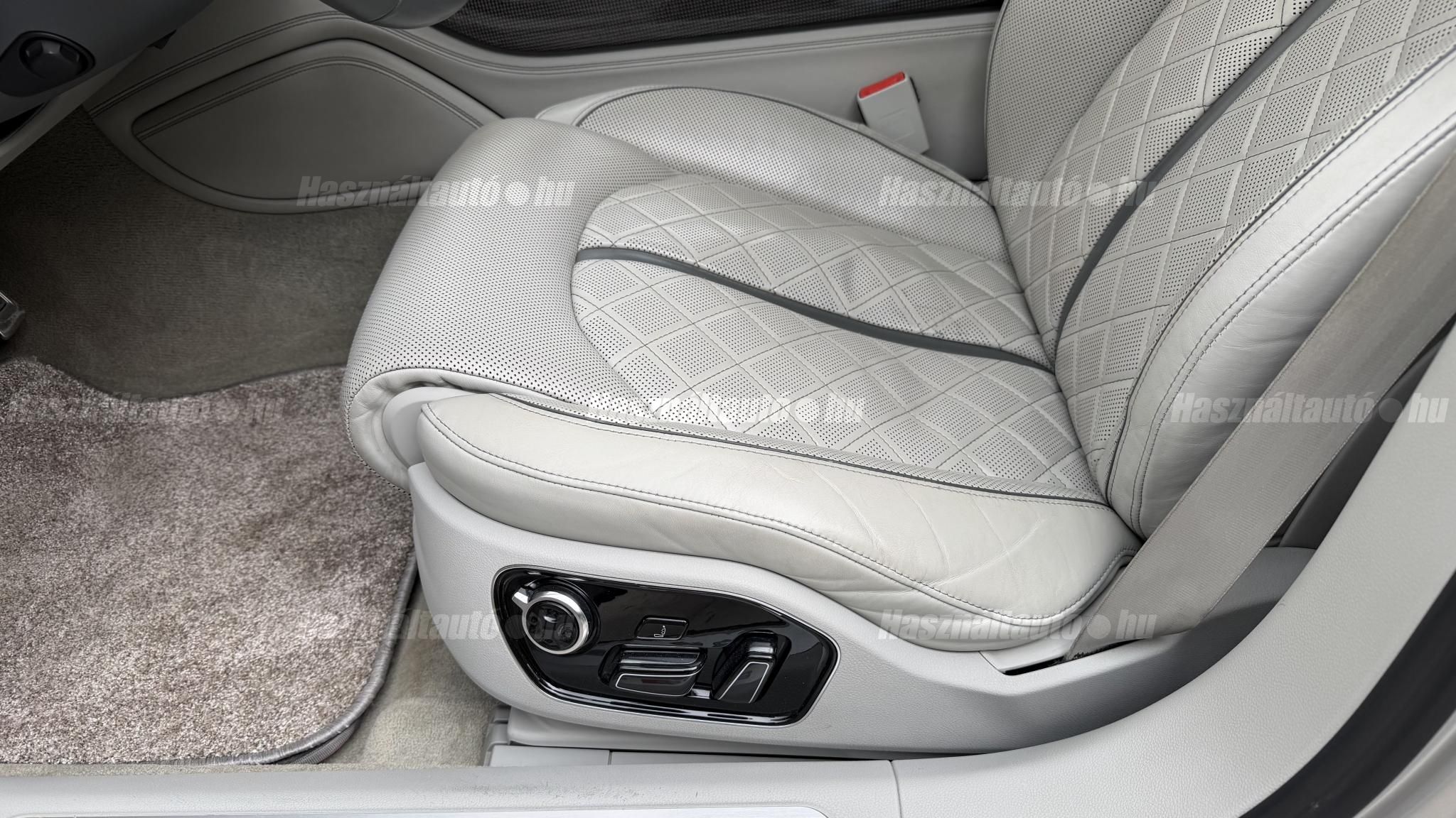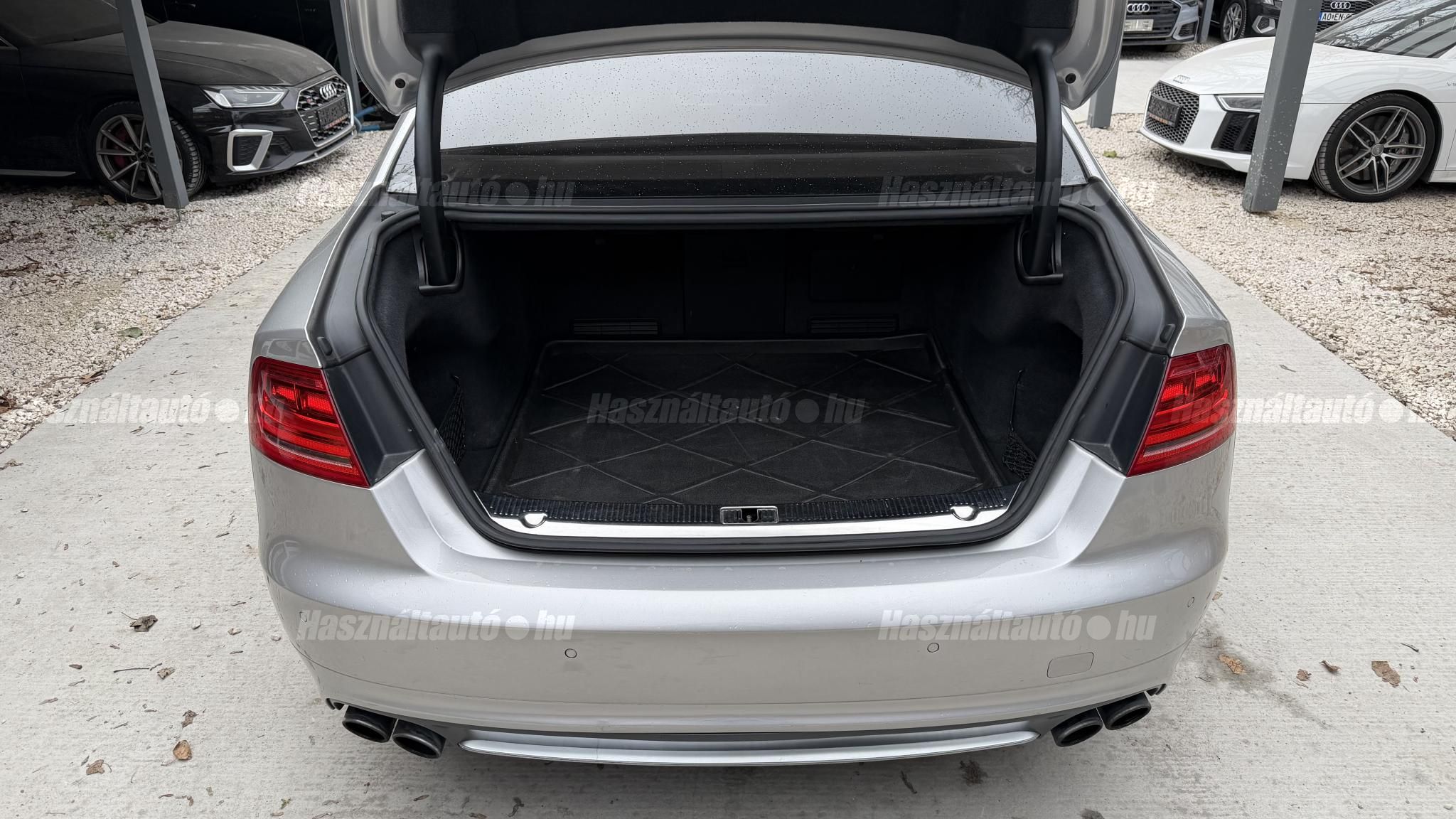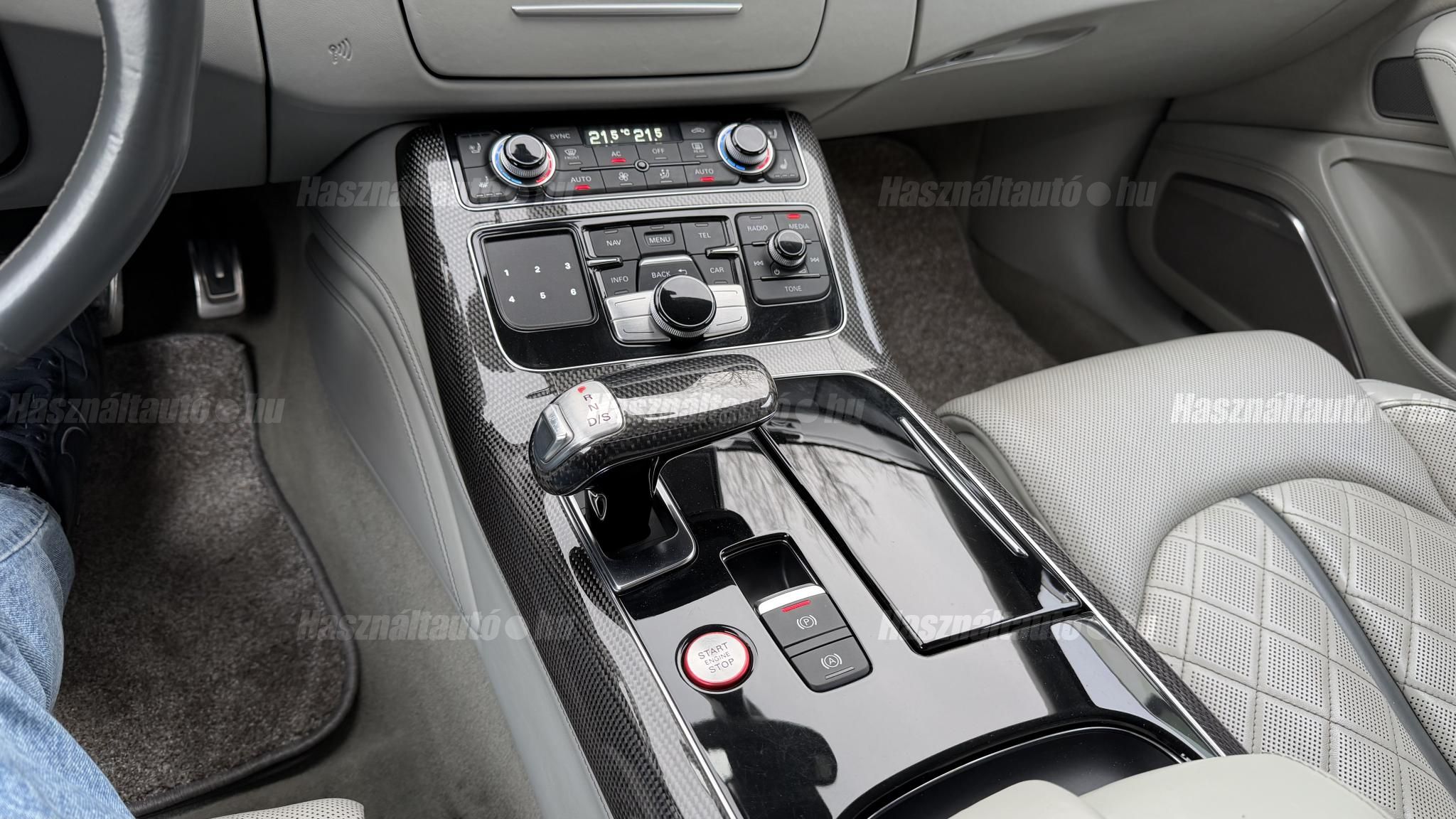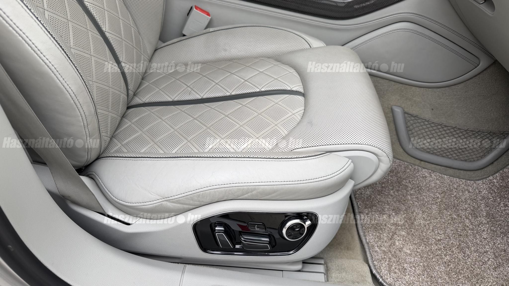 További 50 nagy felbontású kép: facebook/ingolstadtauto oldalunkon! AZ AUTÓK MEGTEKINTÉSÉHEZ MINDEN ESETBEN ELŐZETES TELEFONOS EGYEZTETÉS SZÜKSÉGES! BANKI HITELÜGYINTÉZÉSben is tudunk segíteni ez 12-84 hónapig terjedő periódusra ütemezhető. Legalább 20% önrésszel vehető fel.----------TÍPUS/ÁLLAPOT----------AZ ADOTT AUTÓRÓL:Gyönyörű Floret Silver színű, sportos luxuslimuzin.Fényezése szép, egységes. A két első sárvédő volt fényezve, motorháztető meg a bal hátsó sárvédő.A beltér megkímélt állapotú, nincsenek benne megmagyarázhatatlan, barbár sérülések. A szellőztethető, fűthető és masszázsfunkciós komfortülések az Audi egyik legkényelmesebb ülései közé tartoznak. Minden irányban elektromosan állíthatók (deréktámasz, oldaltartás, vállrész), így maximális kényelmet biztosítanak.Ennek részeként a hátsó ülések elektromosan állíthatók, így a háttámla dőlésszöge és az ülés pozíciója egyénileg szabályozható. Ez lehetővé teszi, hogy az utasok hosszabb utakon is maximális kényelemben, akár félig fekvő pozícióhoz közel utazzanak.A rendszer sok esetben kiegészül további prémium funkciókkal is, mint például:ülésfűtés és szellőztetés, masszázs funkció, valamint egyes kiviteleknél különálló, középkonzolos kialakítás, amely még exkluzívabb érzetet biztosít. A hátsó komfort csomaggal az S8 nem csupán vezetési élményben nyújt kiemelkedőt, hanem utasként is egy valódi luxuslimuzin szintjét hozza ideális választás azok számára, akik nemcsak vezetni, hanem utazni is a legmagasabb színvonalon szeretnének.A beltérben többféle anyag és szín találkozik, mégis tökéletes harmóniát alkotnak. Az autót Carbon csomaggal rendelték, így a luxus megjelenés mellett a sportosság is hangsúlyos.Nagyon sok extra található benne, ezeket a videóban részletesen bemutatjuk.Szerkezetileg és motorikusan hibátlan, minden extra tökéletesen működik.A 21 colos, Gyári Audi felnik jó állapotúak, minimális sérülések láthatók rajtuk. Jelenleg jó állapotú nyári gumikkal szerelt.A kerámia fékrendszer állapota jó, a fékbetétek még nincsenek kopásjelzőn.Minden tartozék rendelkezésre áll: összes gyári dokumentáció, vezetett szervizkönyv, valamint 2 db eredeti kulcs.A TÍPUSRÓL:Az Audi S8 D4 facelift előtti modelle 4.0 TFSI az Audi zászlóshajója, ahol a luxus és a teljesítmény valóban egy szinten van kezelve. Egy olyan autó, amely nem hivalkodik, mégis azonnal érezhető a jelenléte megjelenése még ma is komoly tekintélyt sugároz az utakon.Ebben a modellben a 4.0 literes, V8 biturbó erőforrás dolgozik, amely 520 lóerőt és 650 Nm nyomatékot biztosít. A hajtáslánc kifinomultsága és ereje tökéletes összhangban van: erőteljes, mégis finoman adagolható teljesítményt nyújt minden helyzetben.A motorhoz egy 8 fokozatú tiptronic automata váltó kapcsolódik, amely tartósságáról és megbízhatóságáról ismert, míg az állandó quattro összkerékhajtás gondoskodik arról, hogy az autó mindig stabilan és kiszámíthatóan viselkedjen, akár dinamikusabb használat mellett is.A V8-as motor működése rendkívül kifinomult: alacsony fordulaton is erőteljes, magasabb tartományban pedig folyamatosan, megszakítás nélkül építi fel a teljesítményt. A turbófeltöltők a hengersorok között kaptak helyet (ún. hot V elrendezés), ami gyors reakciót és hatékony működést eredményez.A technikai megoldások közül kiemelendő a hengerlekapcsolásos rendszer (COD), amely részterhelésnél csökkenti a fogyasztást, így a teljesítményhez képest meglepően élhető fenntartást tesz lehetővé.Gyári fogyasztási adatok:Városi fogyasztás: 14.4l/100kmOrszágúti fogyasztás: 7.6l/100kmVegyes fogyasztás: 10.1l/100kmAUTÓINKAT 1-3 ÉVIG TERJEDŐ GARANCIÁVAL IS TUDJUK ÉRTÉKESÍTENI, MEGÁLLAPODÁS SZERINT. Autóbeszámítás vagy bármilyen kérdés esetén a lenti telefonszámon keressen vagy WhatsApp-on, Viberen is elérhetőek vagyunk (email-t ne írjon!). TOVÁBBI KÜLÖNLEGES AUDIKÉRT KÖVESSE KÍNÁLATUNKAT FACEBOOKON: INGOLSTADTAUTO |