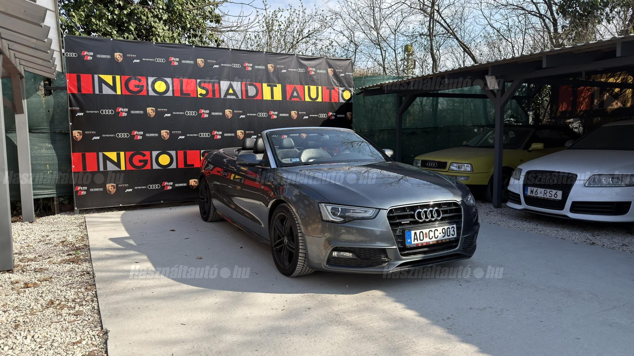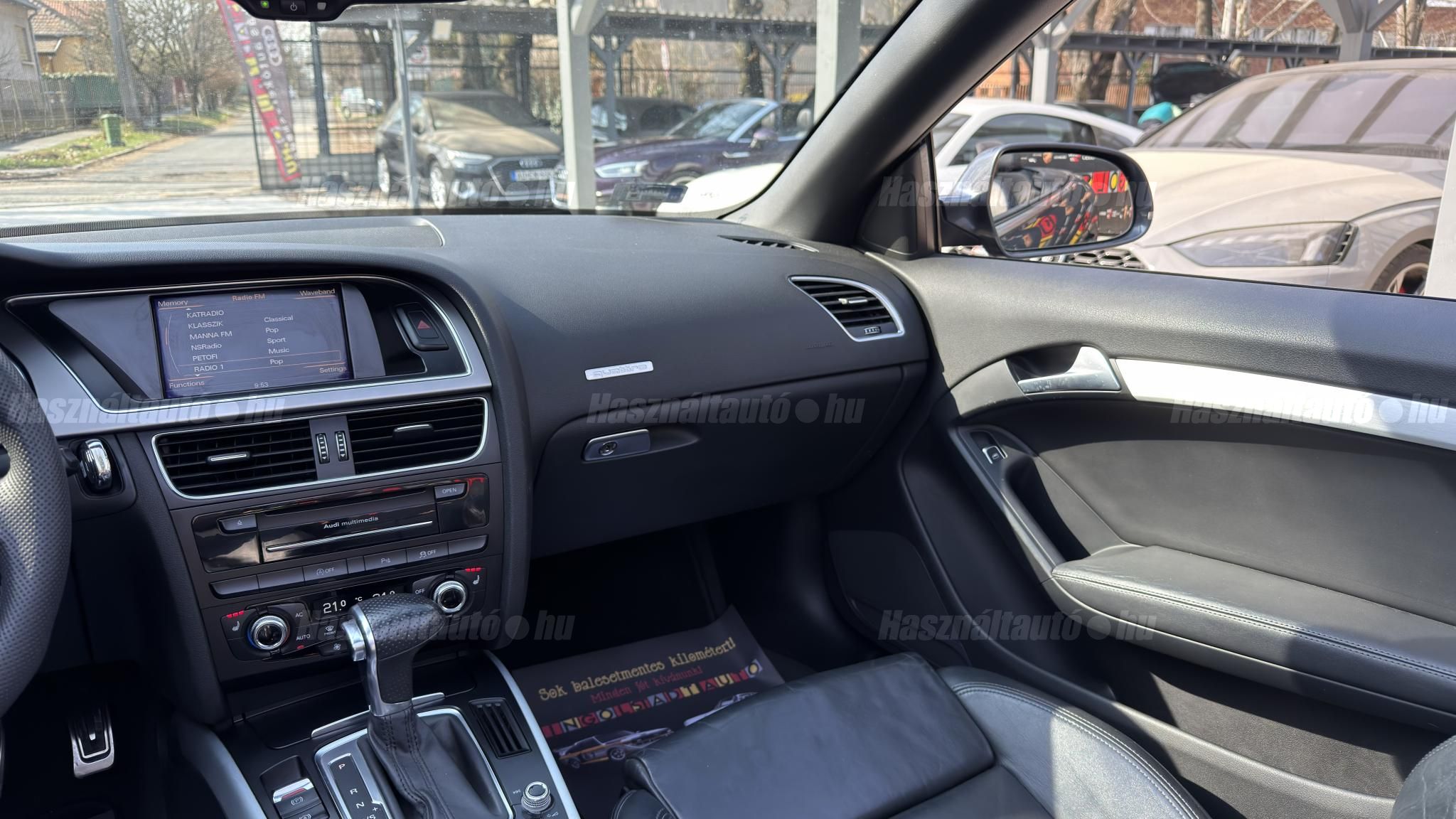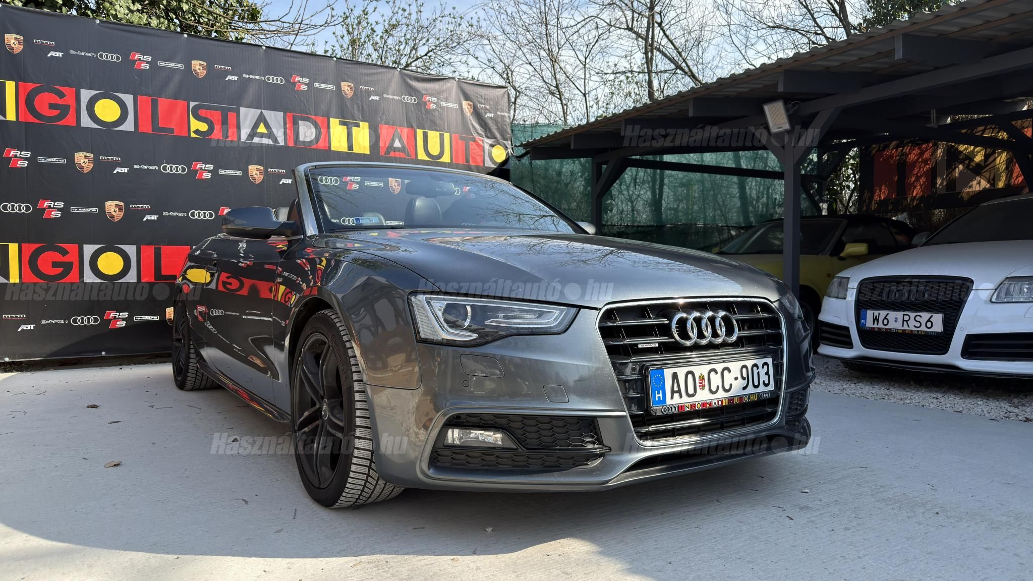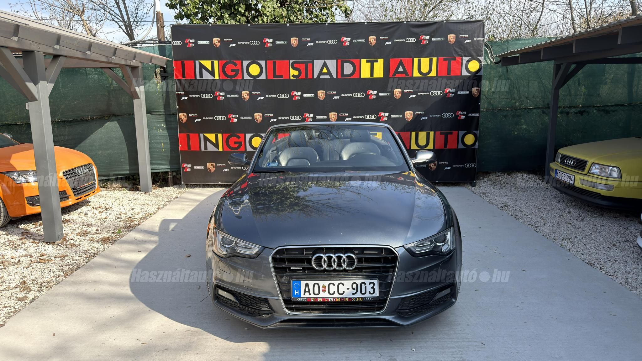További 50 nagy felbontású kép: facebook/ingolstadtauto oldalunkon! AZ AUTÓK MEGTEKINTÉSÉHEZ MINDEN ESETBEN ELŐZETES TELEFONOS EGYEZTETÉS SZÜKSÉGES! BANKI HITELÜGYINTÉZÉSben is tudunk segíteni ez 12-84 hónapig terjedő periódusra ütemezhető. Legalább 20% önrésszel vehető fel.----------TÍPUS/ÁLLAPOT----------AZ ADOTT AUTÓRÓL: Gyönyörű szép Daytona Grau színű cabrio. Törésmentes, fényezése szép, homogén mindenhol. A 18 colos gyári Audi felnik állapota szép, minimális padkanyomok láthatóak. Jelenleg jó állapotú téli gumikkal szerelve. A fékrendszer állapota jó, fékbetétek nincsenek kopásjelzőn. Megkímélt beltér, kopás/karc/kiülésmentes mint az új. Szerkezetileg és motorikusan hibátlan, minden extra tökéletesen működik. Minden tartozék, összes gyári dokumentáció, vezetett szervizkönyv, 2db eredeti kulcs rendelkezésre áll.A TÍPUSRÓL:Egy A5 Cabrio már a B8.5-ös, ráncfelvarrott generáció, amely még mai napig egy időtálló formavilágot képvisel. Az erősebb 3 literes dízel motorral készült típus 245 LE. A 7 fokozatú S- tronic automata váltó és a quattro összkerékhajtás párosát jelenti. Ez a kombináció nemcsak villámgyors váltásokat és sportos menetdinamikát biztosít, hanem olyan stabilitást is, ami a kabriók között ritkaság az autó még nedves úton is magabiztosan tapad.A vászontető technológiája ebben a generációban már rendkívül kifinomult: többrétegű, kiváló zajszigetelésű (Acoustic Top), így zárt tetővel az autó kényelme és csendessége majdnem megegyezik a kupé változatéval. Ez egy valódi négyévszakos kabrió, amely a merevített karosszériának és a hatékony fűtésrendszernek köszönhetően hűvösebb időben is teljes értékű élményt nyújt.A B8.5-ös széria megkapta a modernizált fényszórókat, a frissített MMI rendszert és a finomított belső anyaghasználatot, így ez a 2012-es modell technikailag és megjelenésében is a sorozat egyik legérettebb kiadása. ----------EXTRÁK----------3X-Sline (külső/belső/futómű)MMI 3G High Plus (Android Auto és CarPlay modulosan installálható ebben tudunk segíteni)Eső- és fényszenzorokÜlésfűtésDigitális klíma (2 zónás)S sportkormányCombtámaszos sportülésekBőr kárpitozásS fekete tetőkárpitAudi Drive SelectKönyöklőISOFIXLED-es menetfényKülső/belső fénycsomagStart/Stop rendszerSzínezett hővédő üvegezésTolatóradarSRA (fényszórómosó)Bluetooth interfaceAudi okostelefon interfaceTempomatAUX-IN aljzatUniverzális Bluetooth interfaceÖsszes gyári kulcs megvanAUTÓINKAT 1-3 ÉVIG TERJEDŐ GARANCIÁVAL IS TUDJUK ÉRTÉKESÍTENI, MEGÁLLAPODÁS SZERINT. Autóbeszámítás vagy bármilyen kérdés esetén a lenti telefonszámon keressen vagy WhatsApp-on, Viberen is elérhetőek vagyunk (email-t ne írjon!). TOVÁBBI KÜLÖNLEGES AUDIKÉRT KÖVESSE KÍNÁLATUNKAT FACEBOOKON: INGOLSTADTAUTO |