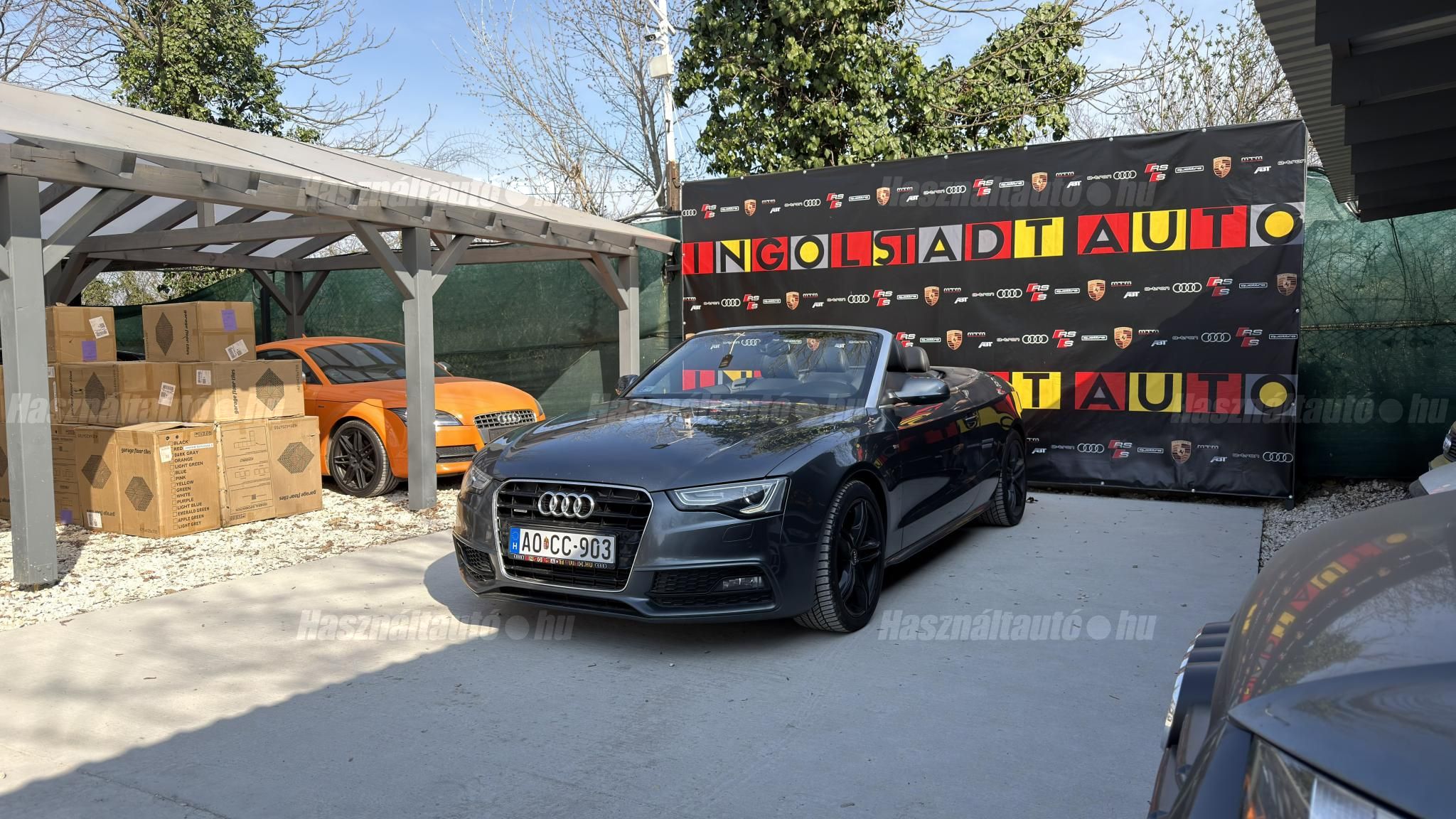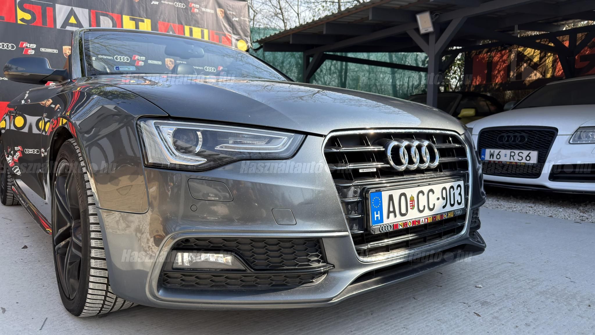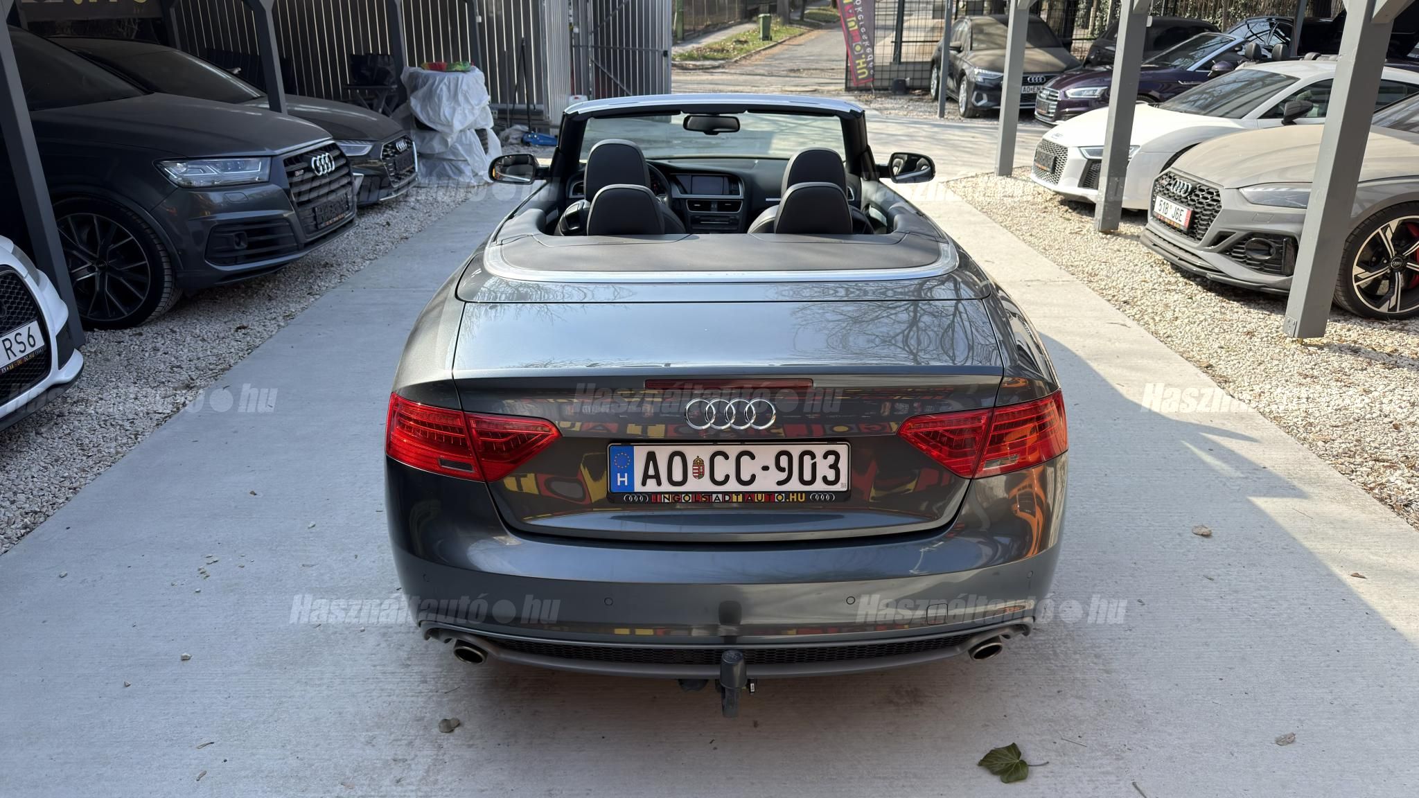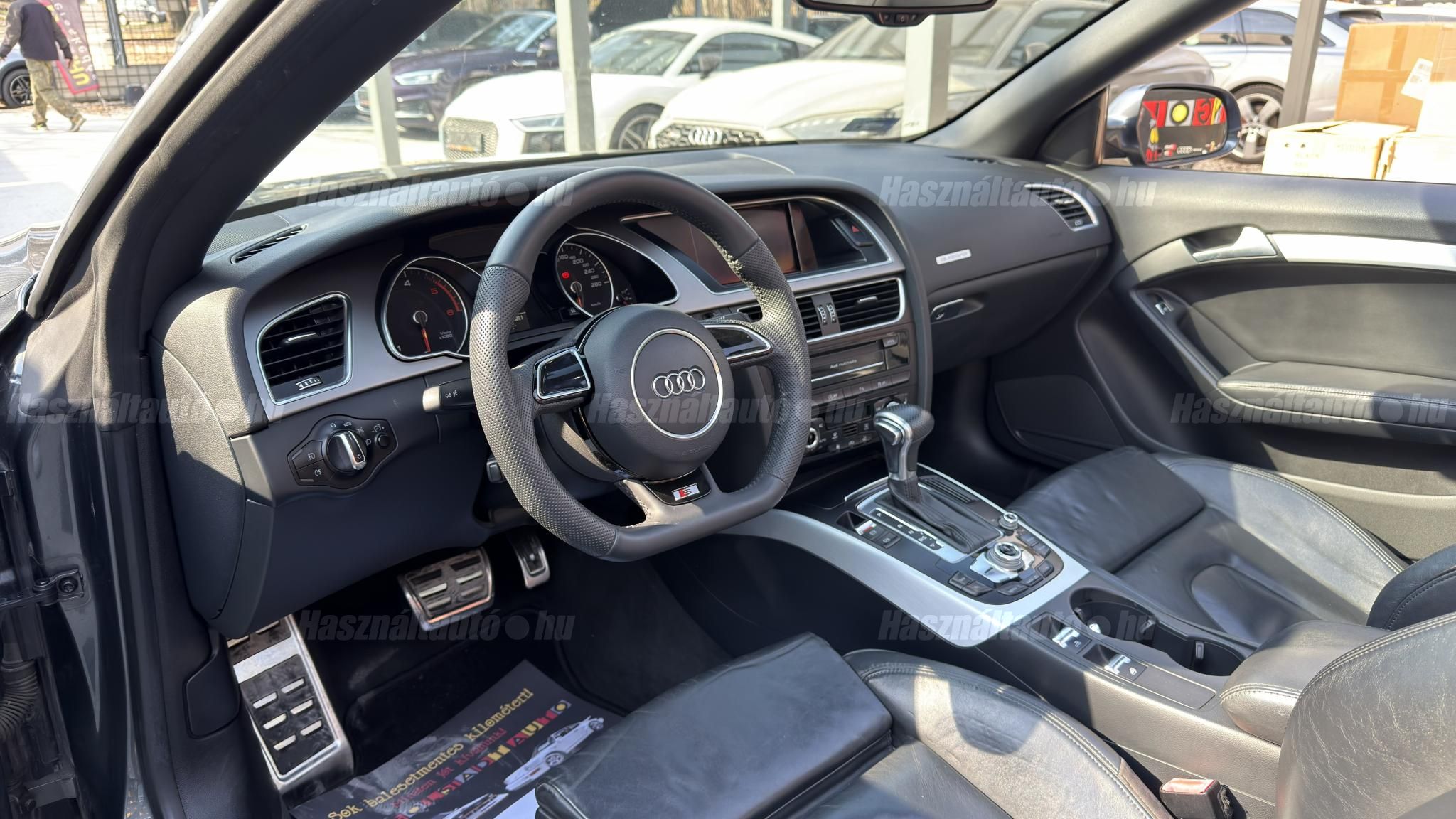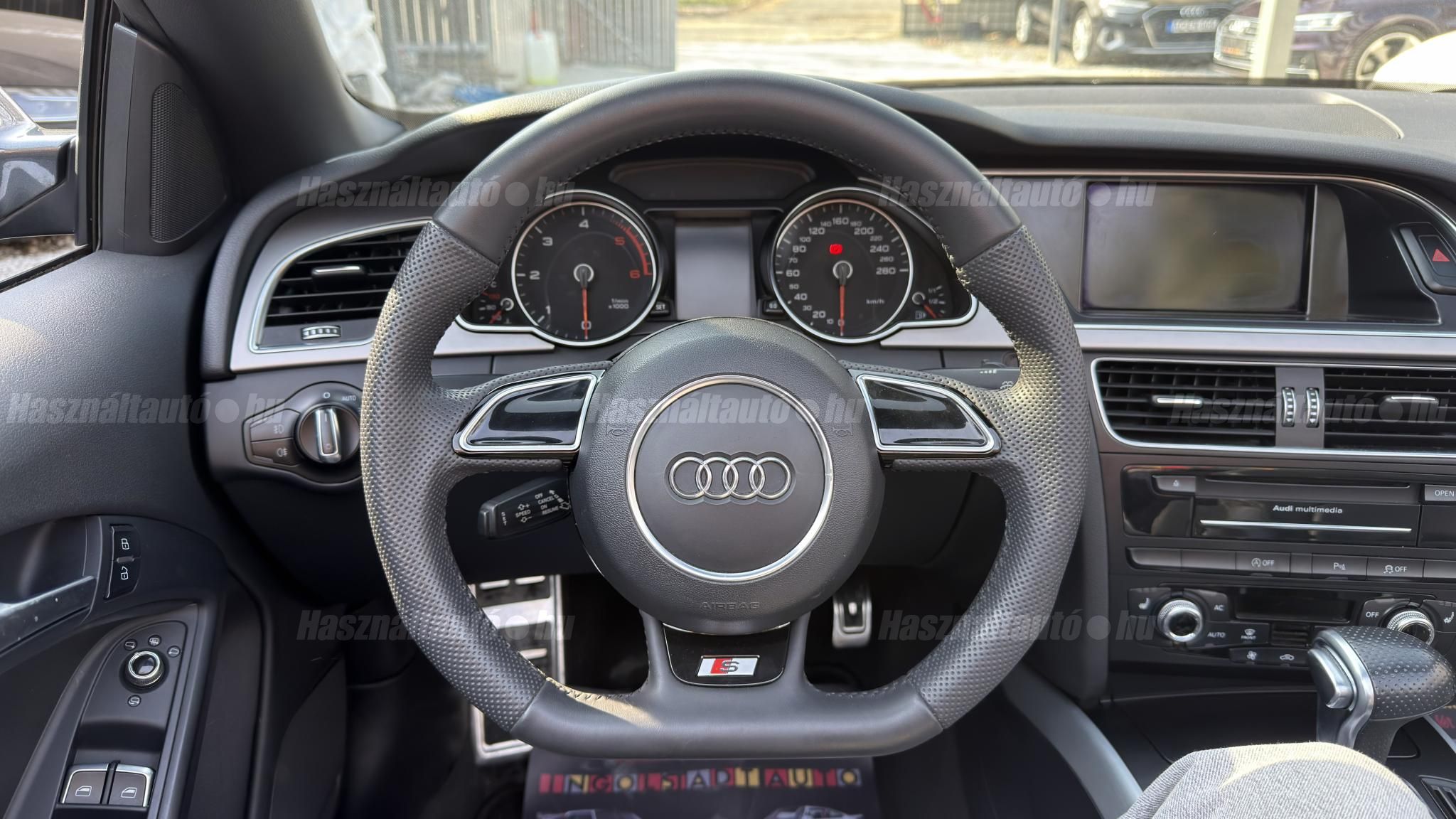 További 50 nagy felbontású kép: facebook/ingolstadtauto oldalunkon! AZ AUTÓK MEGTEKINTÉSÉHEZ MINDEN ESETBEN ELŐZETES TELEFONOS EGYEZTETÉS SZÜKSÉGES! BANKI HITELÜGYINTÉZÉSben is tudunk segíteni ez 12-84 hónapig terjedő periódusra ütemezhető. Legalább 20% önrésszel vehető fel.----------TÍPUS/ÁLLAPOT----------AZ ADOTT AUTÓRÓL: Gyönyörű szép Daytona Grau színű cabrio. Törésmentes, fényezése szép, homogén mindenhol. A 18 colos gyári Audi felnik állapota szép, minimális padkanyomok láthatóak. Jelenleg jó állapotú téli gumikkal szerelve. A fékrendszer állapota jó, fékbetétek nincsenek kopásjelzőn. Megkímélt beltér, kopás/karc/kiülésmentes mint az új. Szerkezetileg és motorikusan hibátlan, minden extra tökéletesen működik. Minden tartozék, összes gyári dokumentáció, vezetett szervizkönyv, 2db eredeti kulcs rendelkezésre áll.A TÍPUSRÓL:Egy A5 Cabrio már a B8.5-ös, ráncfelvarrott generáció, amely még mai napig egy időtálló formavilágot képvisel. Az erősebb 3 literes dízel motorral készült típus 245 LE. A 7 fokozatú S- tronic automata váltó és a quattro összkerékhajtás párosát jelenti. Ez a kombináció nemcsak villámgyors váltásokat és sportos menetdinamikát biztosít, hanem olyan stabilitást is, ami a kabriók között ritkaság az autó még nedves úton is magabiztosan tapad.A vászontető technológiája ebben a generációban már rendkívül kifinomult: többrétegű, kiváló zajszigetelésű (Acoustic Top), így zárt tetővel az autó kényelme és csendessége majdnem megegyezik a kupé változatéval. Ez egy valódi négyévszakos kabrió, amely a merevített karosszériának és a hatékony fűtésrendszernek köszönhetően hűvösebb időben is teljes értékű élményt nyújt.A B8.5-ös széria megkapta a modernizált fényszórókat, a frissített MMI rendszert és a finomított belső anyaghasználatot, így ez a 2012-es modell technikailag és megjelenésében is a sorozat egyik legérettebb kiadása. ----------EXTRÁK----------3X-Sline (külső/belső/futómű)MMI 3G High Plus (Android Auto és CarPlay modulosan installálható ebben tudunk segíteni)Eső- és fényszenzorokÜlésfűtésDigitális klíma (2 zónás)S sportkormányCombtámaszos sportülésekBőr kárpitozásS fekete tetőkárpitAudi Drive SelectKönyöklőISOFIXLED-es menetfényKülső/belső fénycsomagStart/Stop rendszerSzínezett hővédő üvegezésTolatóradarSRA (fényszórómosó)Bluetooth interfaceAudi okostelefon interfaceTempomatAUX-IN aljzatUniverzális Bluetooth interfaceÖsszes gyári kulcs megvanAUTÓINKAT 1-3 ÉVIG TERJEDŐ GARANCIÁVAL IS TUDJUK ÉRTÉKESÍTENI, MEGÁLLAPODÁS SZERINT. Autóbeszámítás vagy bármilyen kérdés esetén a lenti telefonszámon keressen vagy WhatsApp-on, Viberen is elérhetőek vagyunk (email-t ne írjon!). TOVÁBBI KÜLÖNLEGES AUDIKÉRT KÖVESSE KÍNÁLATUNKAT FACEBOOKON: INGOLSTADTAUTO |