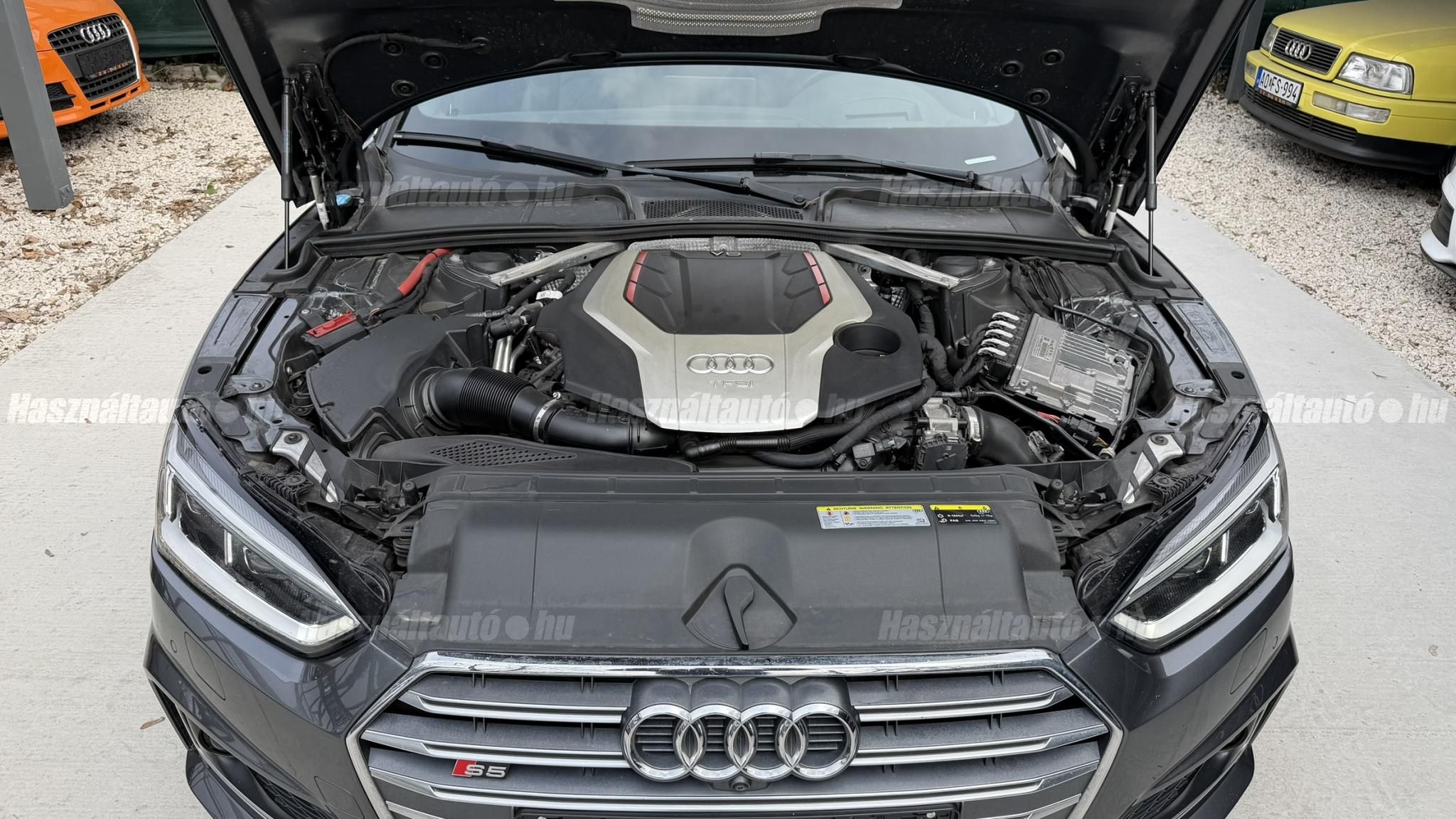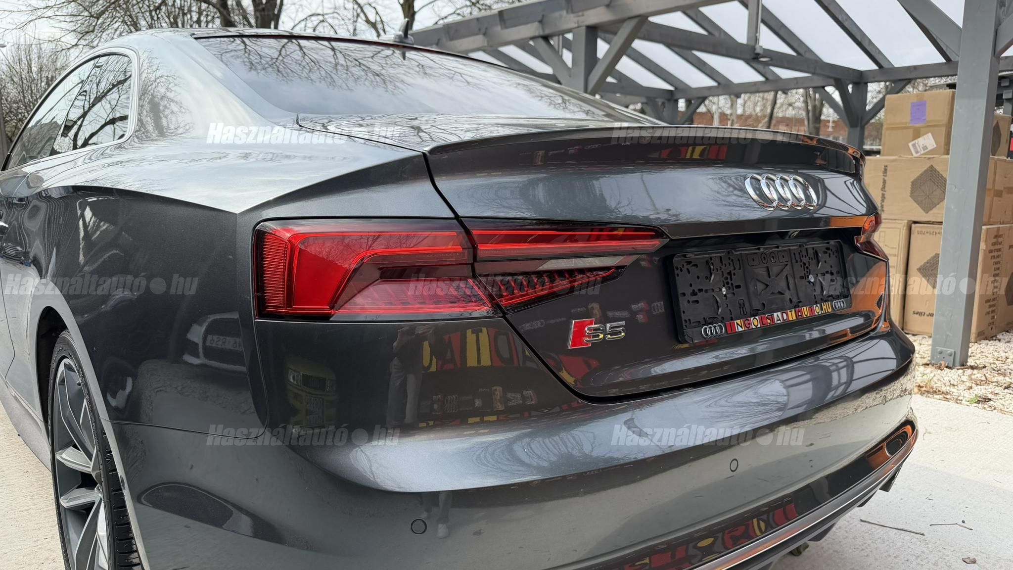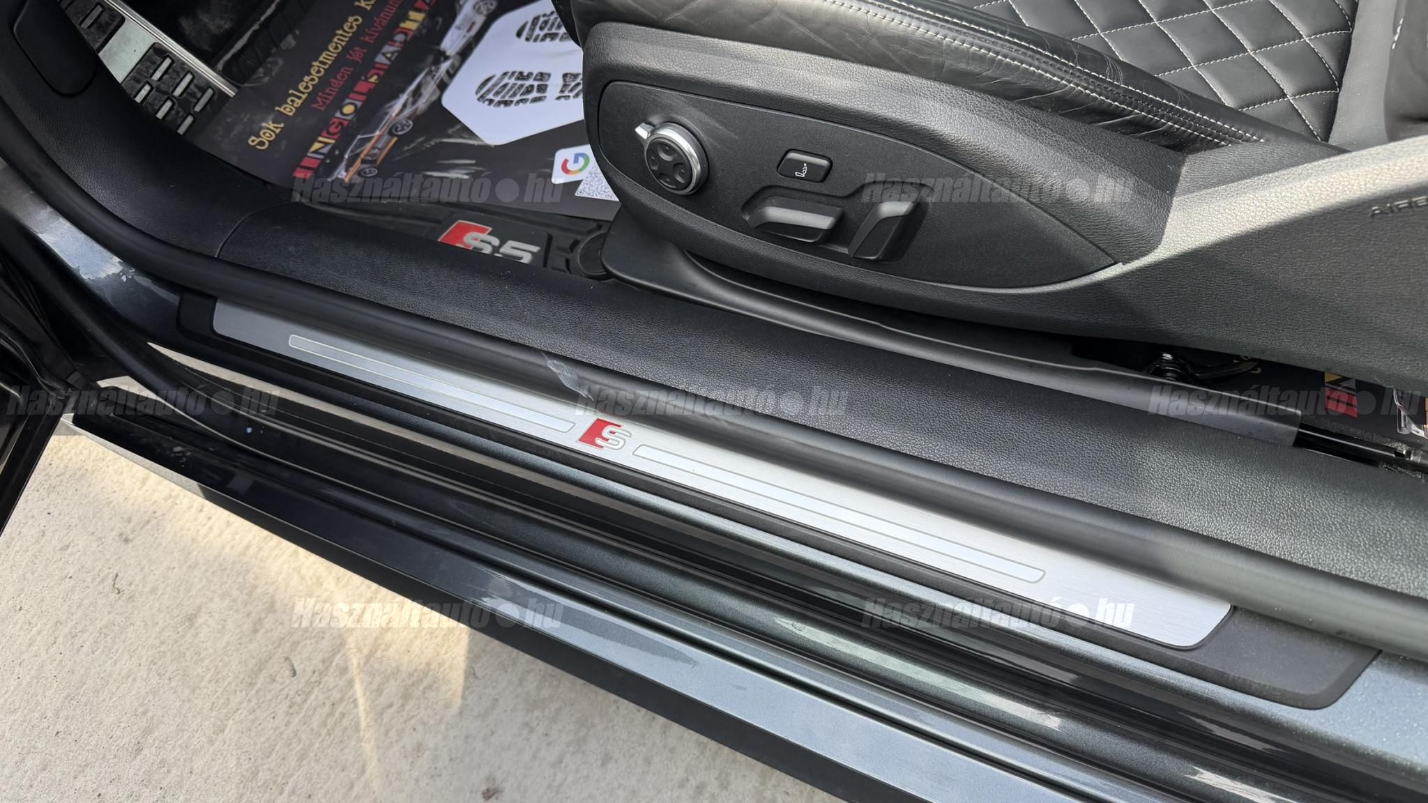 További 80 nagy felbontású kép: facebook/ingolstadtauto oldalunkon! AZ AUTÓK MEGTEKINTÉSÉHEZ MINDEN ESETBEN ELŐZETES TELEFONOS EGYEZTETÉS SZÜKSÉGES! ---------- RÉSZLET FIZETÉSSEL IS ELVIHETŐ: Nincs hitelbírálat, nem gond a BAR lista, nem kérünk jövedelemigazolást sem. Kezdő részlet: 9 millió Ft További részletek: 12 x 380.000Ft -havi részletekben egy éven át. NEM tartalmazza a kötelező biztosítás és a CASCO költségét, melyek feltételei a szerződés megkötésének. Magasabb kezdő részlet befizetése esetén a további havi részletek alcsonyabbak lehetnek. Alacsonyabb kezdő részlet befizetésére nincs lehetőség! További feltételekért és információkért keressen minket személyesen vagy telefonon. BANKI HITELÜGYINTÉZÉSben is tudunk segíteni ez 12-84 hónapig terjedő periódusra ütemezhető. Legalább 20% önrésszel vehető fel.----------TÍPUS/ÁLLAPOT----------AZ ADOTT AUTÓRÓL:Ezt a kupét kifejezetten úgy kerestük, hogy a márka egyik legnépszerűbb színében, gazdag felszereltséggel kínálhassuk eladásra. Egy Daytona szürke kupéról van szó, festékmérés alapján törésmentes, azonban az egyik első sárvédő cserélve volt. Fényezése szép, szinte hibátlan állapotú.A beltér megkímélt állapotú, kopás-, karc- és kiülésmentes, szinte újszerű. Természetesen sport kagylóülésekkel szerelt, ami elengedhetetlen egy igazi S5 esetében. Felszereltségében megtalálható többek között a head-up display, sávtartó asszisztens, adaptív tempomat, masszázsülés. Virtual Cockpittel kerestük, mivel rendkívül informatív, és az autó megjelenését is sokkal modernebbé teszi ez az óracsoport.A 19 colos gyári Audi felnik állapota enyhén padkázott, a jobb első felnin egy nagyobb padkanyom található. Jelenleg jó állapotú nyári gumikkal van szerelve. A fékrendszer állapota jó, a fékbetétek még nem érték el a kopásjelzőt.Az autóban jelenleg 153 000 km van. Az összes francia műszaki vizsgán rögzített aktuális kilométerállás dokumentálva van, emellett a végig vezetett szervizkönyv is rendelkezésre áll. Szerkezetileg és motorikusan hibátlan, minden extra tökéletesen működik. Minden tartozék, az összes gyári dokumentáció, a vezetett szervizkönyv, valamint 2 darab eredeti kulcs rendelkezésre áll.A TÍPUSRÓL:Továbbra is az egyik legjobb konstrukció szerintem ami S5-ben készült. Miért?