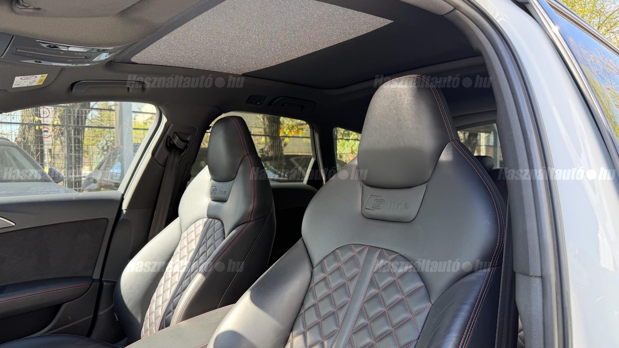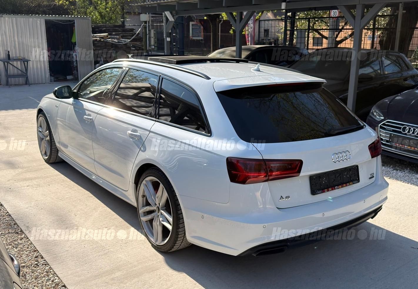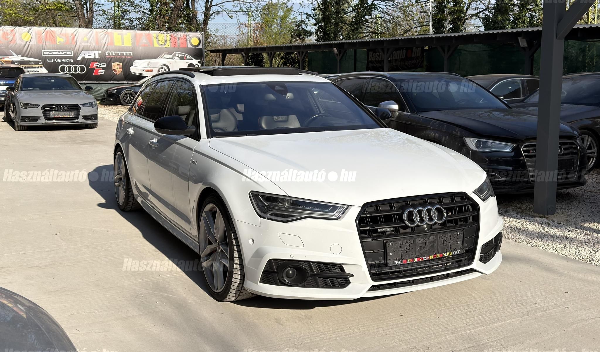 További 80 nagy felbontású kép: facebook/ingolstadtauto oldalunkon! AZ AUTÓK MEGTEKINTÉSÉHEZ MINDEN ESETBEN ELŐZETES TELEFONOS EGYEZTETÉS SZÜKSÉGES! ---------- RÉSZLET FIZETÉSSEL IS ELVIHETŐ: Nincs hitelbírálat, nem gond a BAR lista, nem kérünk jövedelemigazolást sem. Kezdő részlet: 6.5 millió Ft További részletek: 12 x 325.000Ft -havi részletekben egy éven át. NEM tartalmazza a kötelező biztosítás és a CASCO költségét, melyek feltételei a szerződés megkötésének. Magasabb kezdő részlet befizetése esetén a további havi részletek alcsonyabbak lehetnek. Alacsonyabb kezdő részlet befizetésére nincs lehetőség! További feltételekért és információkért keressen minket személyesen vagy telefonon. BANKI HITELÜGYINTÉZÉSben is tudunk segíteni ez 12-84 hónapig terjedő periódusra ütemezhető. Legalább 20% önrésszel vehető fel.----------TÍPUS/ÁLLAPOT----------AZ ADOTT AUTÓRÓL: Gyönyörű szép fehér A6 Avant. Az autó igazán különleges belső térrel rendelkezik: piros kontrasztvarrásos S sport-kagylóülései nemcsak látványosak, hanem kifejezetten ritkának számítanak ennél a modellnél. Az összhatás sportos, mégis minőségi az egyik legszebb és legkarakteresebb belső konfiguráció, amivel ez a típus elérhető volt.És ennél az autónál ez valóban csak a kezdet. Felszereltsége kiemelkedően gazdag, külföldi piacon is kifejezetten nehéz hasonlóan jól extrázott példányt találni ebben szinte minden megtalálható, ami ehhez a modellhez rendelhető volt.Blackline csomagos kivitel, amely még hangsúlyosabb, sportosabb megjelenést biztosít: fekete tükörhéjak, fekete ablakkeretek és fekete hűtőrács teszik igazán karakteressé az autó összképét.Sérülésmentes, fényezése szép, homogén. Az autó hátsó lökhárítóján a lakk réteg két helyen sérült, ennek a javítása benne van az árban. A felnik padkanyomosak, jó állapotú téli gumikkal szerelve. Beltér újszerű állapotú, kopás- és karcmentes.Szerkezetileg, motorikusan és váltó működését tekintve hibátlan, minden extra tökéletesen működik.Minden tartozék, összes gyári dokumentáció, 2 db eredeti kulcs, szervizkönyv rendelkezésre áll.A TÍPUSRÓL:A Competition modellekben a 3.0 BiTDI 326 lóerőre felhúzott változata dolgozik, amely rövid ideig 346 lóerőt is képes mozgósítani.Ezekben a háromliteres csúcsdízelekben az Audi legtartósabb, nyolcsebességes, ZF-gyártmányú Tiptronic váltója pakolja a fokozatokat.A jól ismert Quattro hajtással pedig biztonságosan autózhatunk bármilyen extrémebb körülmények között is.Az autó fogyasztása a teljesítmény és az állandó összkerékhajtás ellenére is nagyon kedvező.----------EXTRÁK----------Vezetéstámogató rendszer: Sávtartó asszisztens (aktív sávtartó asszisztens)Vezetéstámogató rendszer: Sávváltás segítő (Side Assist) Audi pre sense rear funkcióvalKipörgésgátló rendszer (ASR)Dinamikus kormányzásAudi zenei interfaceTároló csomagAdaptív féklámpaRádió kiegészítő: Audi zenei interfészAudi connect & Audi Phone BoxAudi connect (alap internet szolgáltatás)Csomag-konfiguráció: S line sport / PlusTextil mennyezeti kárpitozás, feketeAjtó küszöbvédők monogrammalBelső tér: Dekoratív betétek matt alumíniumbólElülső deréktámaszok, elektromosan állíthatókPedálok és lábtámasz rozsdamentes acélbólAszférikus külső tükör, balKülső aszferikus tükör, jobbFekete külső tükörFékrendszer visszanyerési rendszerrelBusiness csomagBelső visszapillantó tükör automatikus vakításgátló rendszerrelLopásvédelem a kerekekhez (kerékzárak)Külső csomag S lineSzélvédő felső napellenző csíkkalVelúr padlószőnyegekTárolóháló az első ülés háttámlájánPakolásrekesz elválasztása (Háló)Automata sebességváltó - Tiptronic (8 sebességes)Pohártartó a középső konzolbanKarosszéria: 4 ajtóElektromosan állítható szervó (kormánykerék)Hátsó középső kartámasz rekeszzelMotor 3.0 Ltr. - 240 kW V6 24V TDIFekete megjelenés csomag Audi exkluzívDigitális rádióvevő (DAB)Adaptív világításGumijavító készletKörnyezetvédelmi rendszer Euro 6 szabványÜléshuzat / Kárpitozás: Valcona bőr logóval a vezetőülés háttámlájánHangrendszer BoseCsatlakozó a csomagtartóba/rakodótérbe (12V)Könnyűfém keréktárcsákHátsó ablakok sötétítettekGumikontroll mutatóAudi Matrix LED fényszórókVezetéstámogató rendszer: Sebességkorlát jelzőLED hátsó lámpák dinamikus irányjelzőkkelVezetéstámogató: Éjszakai vezetéstámogatóVezetési segédrendszer: parkolási asszisztensRögzítő készlet sínrendszerhez a csomagtérbenVezetési asszisztens: Fékasszisztens (Audi pre sense front)FékasszisztensKamerarendszer körpanorámás nézettel (Felső nézet)Tetőcsomagtartó (alumínium)Beépített ködlámpákElülső kamera (szélvédő)Osztható/hajtható hátsó ülésdőElülső középső kartámaszKlímakomfort / Akusztikus üvegezés Privát üvegezésZöld színű atermikus üvegKözponti zár távirányítássalElektromosan működtetett csomagtér-ajtó (nyitás + zárás)Csomagtér-ajtó zárássegítőFény- és esőérzékelőTetőspoilerElektromosan állítható, fűthető és összecsukható külső tükör, automatikus vakításellenes rendszerrel és memóriávalElektromosan behajtható külső tükörElektromosan behajtható külső tükör, automatikusan sötétedőKülső tükör automatikus elsötétítésselKülső tükör elektrokróm funkcióval és memória funkcióvalKülső tükör automata járdaparkolással, jobbKülső tükör memóriafunkcióvalSebességszabályozó rendszer (tempomat)Gyöngyházfényű festékStart/Stop rendszerFűthető kormánykerék (Sport/bőr - 3-küllős) multifunkciós és sebváltó pálcákkalHead-up DisplayFényszóró-mosó rendszer (fényszóró mosó)Audi Drive