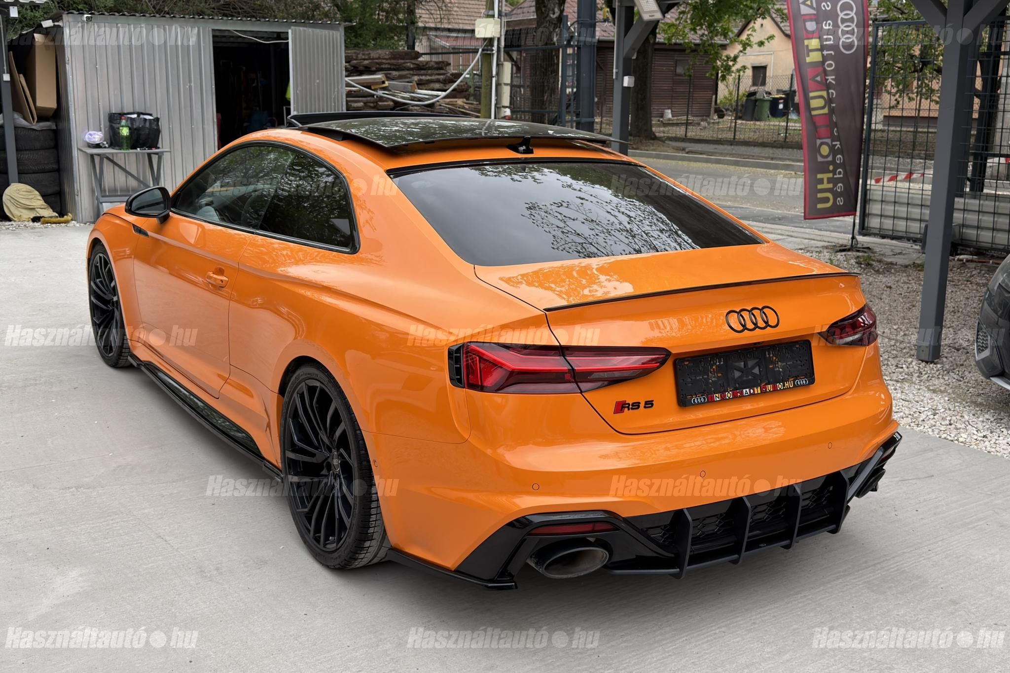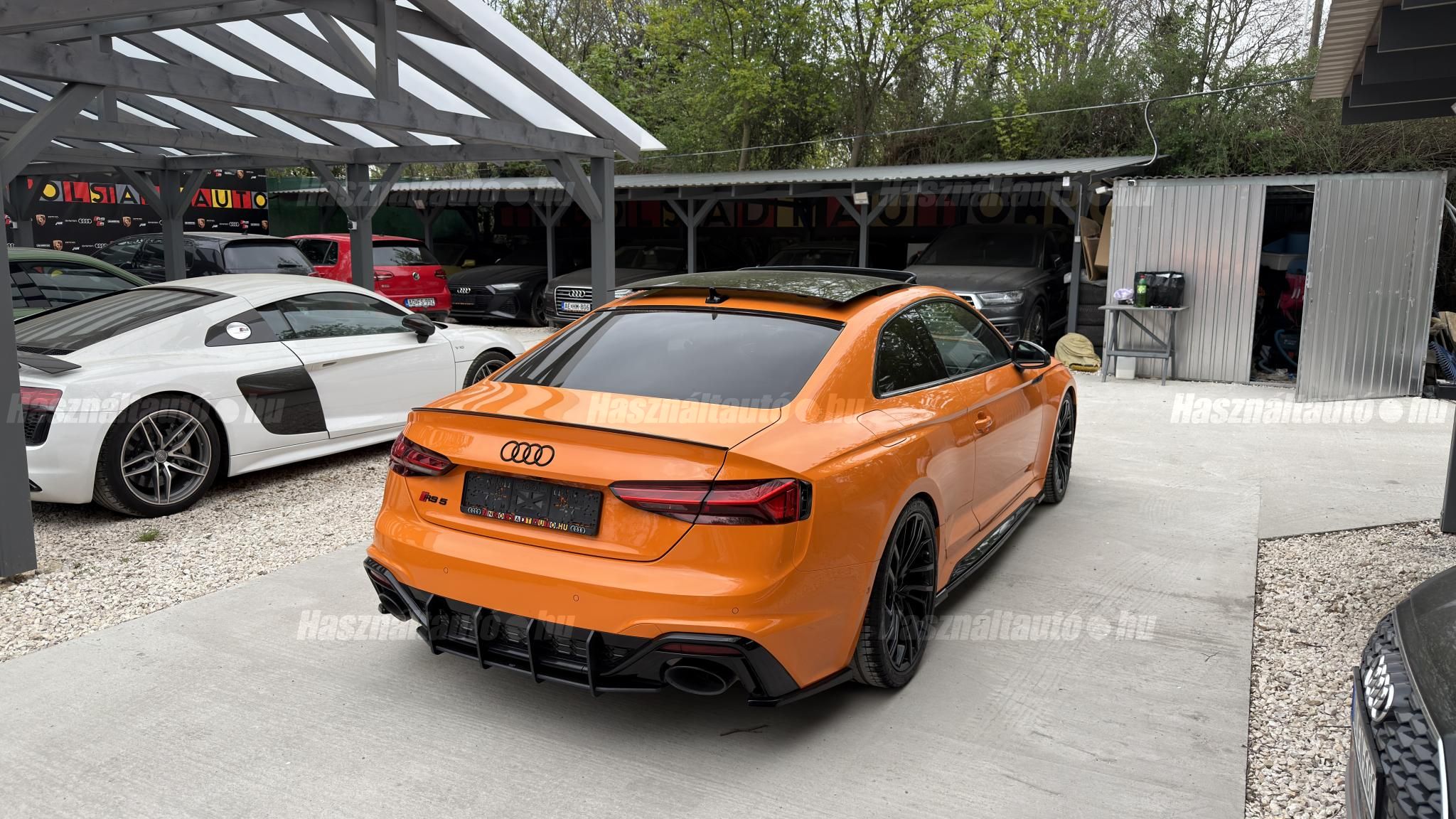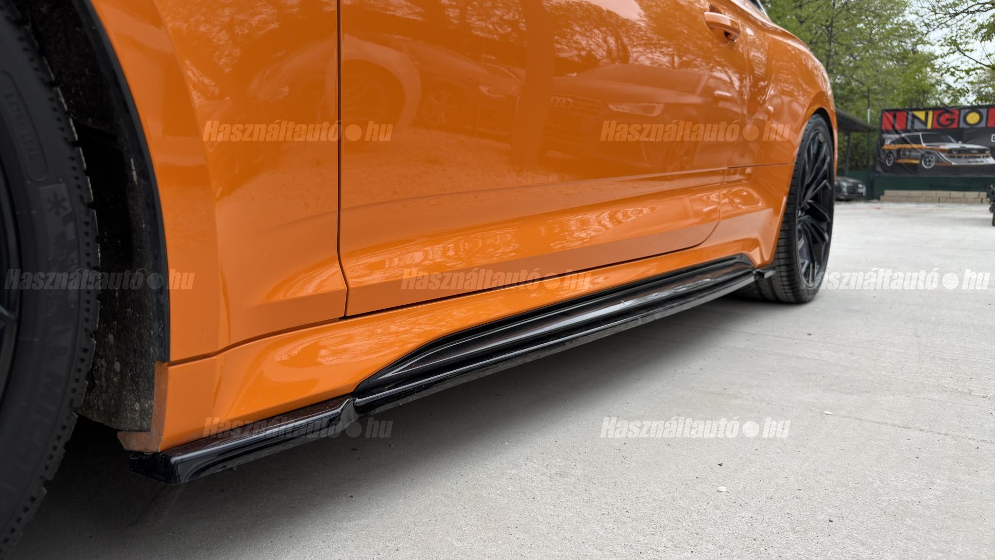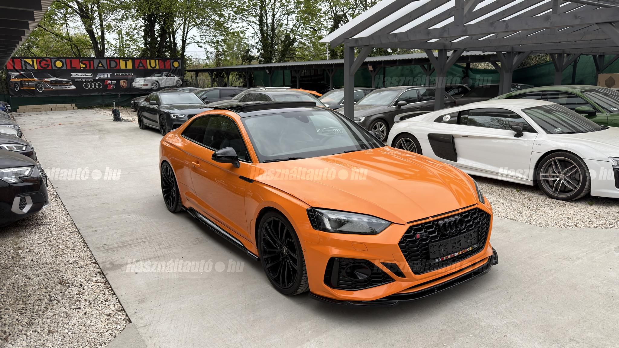 További 80 nagy felbontású kép: facebook/ingolstadtauto oldalunkon! AZ AUTÓK MEGTEKINTÉSÉHEZ MINDEN ESETBEN ELŐZETES TELEFONOS EGYEZTETÉS SZÜKSÉGES! ---------- RÉSZLET FIZETÉSSEL IS ELVIHETŐ: Nincs hitelbírálat, nem gond a BAR lista, nem kérünk jövedelemigazolást sem. Kezdő részlet: 15 millió Ft További részletek: 12 x 542.000Ft -havi részletekben egy éven át. NEM tartalmazza a kötelező biztosítás és a CASCO költségét, melyek feltételei a szerződés megkötésének. Magasabb kezdő részlet befizetése esetén a további havi részletek alcsonyabbak lehetnek. Alacsonyabb kezdő részlet befizetésére nincs lehetőség! További feltételekért és információkért keressen minket személyesen vagy telefonon. BANKI HITELÜGYINTÉZÉSben is tudunk segíteni ez 12-84 hónapig terjedő periódusra ütemezhető. Legalább 20% önrésszel vehető fel.----------TÍPUS/ÁLLAPOT----------AZ ADOTT AUTÓRÓL:Kifejezetten erős vizuális hatást ad ez a narancssárgafekete kombináció. Volt már néhány RS5-ünk, de talán egyik sem aratott ekkora sikert ez tényleg mindenkinek bejön. Az összhatás annyira karakteres, hogy az utca embere szinte úgy néz rá, mintha egy R8-ban ülnél egyszerűen vonzza a tekinteteket.Törésmentes állapotú, gyönyörű, egyedi Papaya Orange színű Coupé.Megkímélt, szép alcantara beltér, kopás-, karc- és kiülésmentes állapotban szinte újszerű érzetet kelt.Az RS kipufogórendszer nem egyszerűen hangos karaktere van. Hidegindításnál már jelzi, hogy itt valami komolyabb dologról van szó, majd alapjáraton mély, telt morgásba vált, ami minden gázadásra egyre intenzívebbé válik.Terhelés alatt igazi élmény: visszaváltásoknál finom durrogások, gyorsításnál tiszta, sportos hang, ami azonnal mosolyt csal az arcodra. Ez az a kipufogó, ami miatt minden alagút csábít egy kis gázfröccsre egyszerűen nem lehet megunni.Szerkezetileg és motorikusan hibátlan, minden extra tökéletesen működik.A 20 colos gyári Audi Sport felnik kiváló állapotúak, jelenleg jó állapotú Michelin téli gumikkal szerelve.A fékrendszer állapota szintén jó, nincs olyan kopóalkatrész, amely jelenleg cserére szorulna.Költség- és csalódásmentes állapot.Minden tartozék, összes gyári dokumentáció, vezetett szervizkönyv, valamint 2 db eredeti kulcs rendelkezésre áll.Végig márkaszervizben karbantartott, dokumentált előélettel.A TÍPUSRÓL:Az Audi RS5 az Audi kínálatának egyik legkarakteresebb és legsportosabb modellje. Véleményünk szerint a márka egyik legjobban eltalált formavilága: markáns, szinte baltával faragott élek, kiváló arányok egy autó, amelynek nem kell kitűnnie, mert magától is vonzza a tekinteteket.A 2,9 literes, duplaturbós V6-os benzinmotor erőtartaléka már gyári állapotban is meggyőző. A 8 fokozatú tiptronic automata váltó gyors és határozott működésével tökéletesen illik a karakteréhez a ZF 8HP pedig az egyik legmegbízhatóbb konstrukció a kategóriában.A quattro összkerékhajtás ahogyan minden RS modell esetében itt is alapfelszereltség, így a komoly teljesítmény ellenére az autó könnyen vezethető és meglepően kezes marad.A motor egyik legnagyobb különlegessége, hogy a két turbófeltöltőt nem a motor oldalára, hanem a két hengersor közé, az úgynevezett V-térbe építették. Ennek köszönhetően a kipufogógázok rövidebb utat tesznek meg, így a gázreakció rendkívül gyors: minimális a turbólyuk, és szinte azonnal megérkezik a brutális tolóerő.Oldalról nézve az RS5 egyik leglátványosabb elemei a szélesített sárvédőívek. Ezek az 1980-as évek legendás Audi Ur-Quattro modellje előtt tisztelegnek, és vizuálisan is hangsúlyozzák: ez az autó az aszfalthoz van ragasztva.AUTÓINKAT 1-3 ÉVIG TERJEDŐ GARANCIÁVAL IS TUDJUK ÉRTÉKESÍTENI, MEGÁLLAPODÁS SZERINT. Autóbeszámítás vagy bármilyen kérdés esetén a lenti telefonszámon keressen vagy WhatsApp-on, Viberen is elérhetőek vagyunk (email-t ne írjon!). TOVÁBBI KÜLÖNLEGES AUDIKÉRT KÖVESSE KÍNÁLATUNKAT FACEBOOKON: INGOLSTADTAUTO |