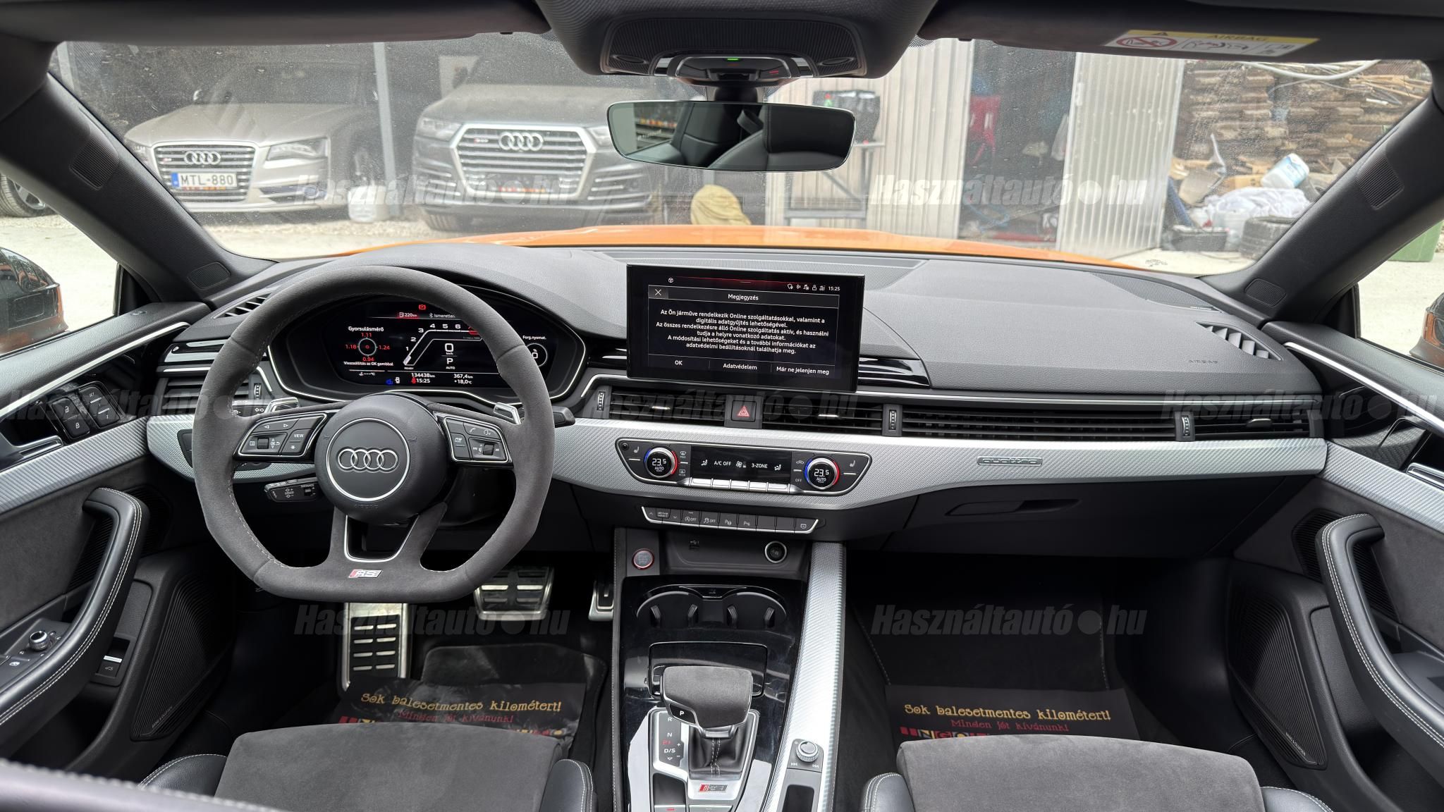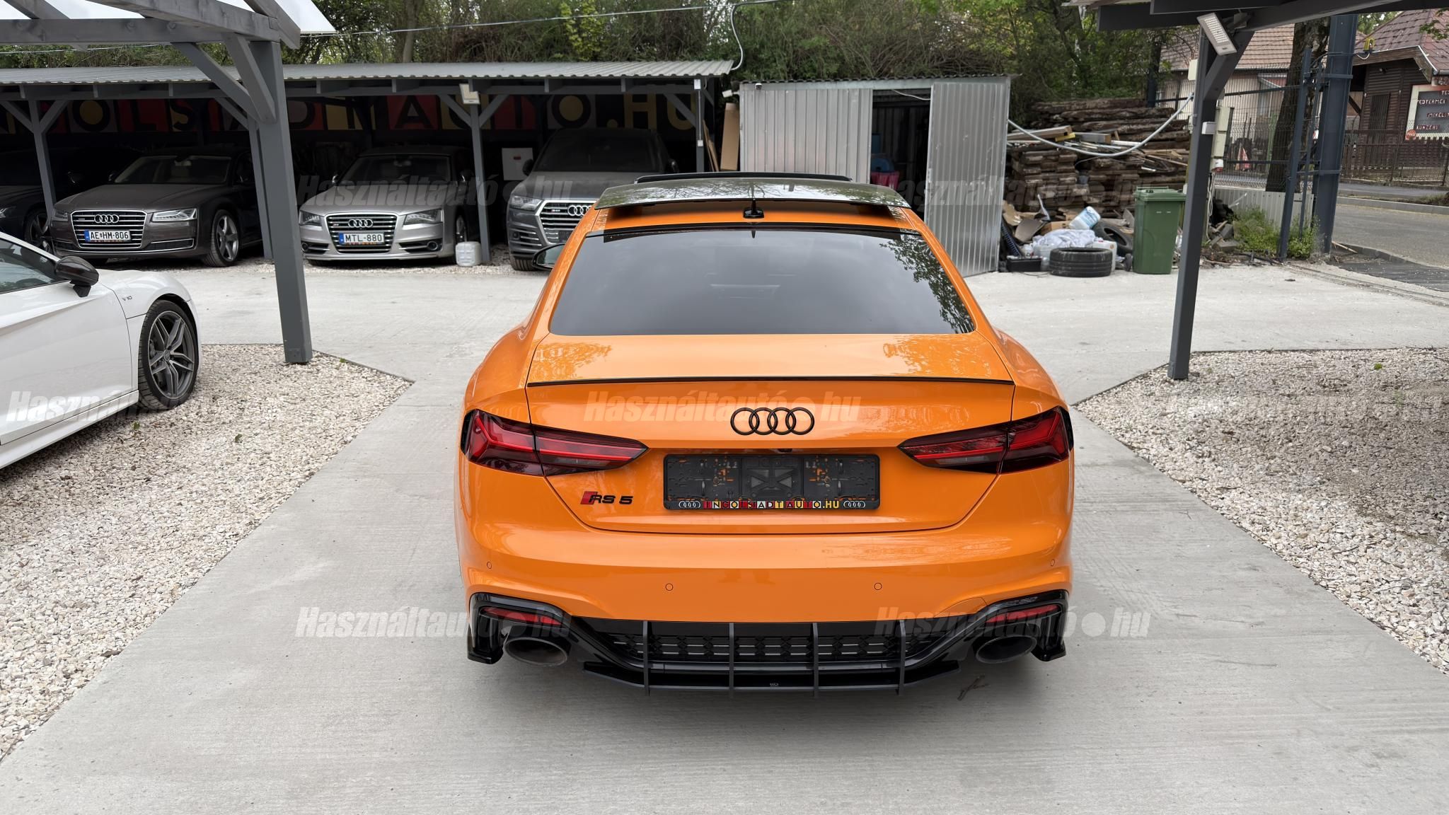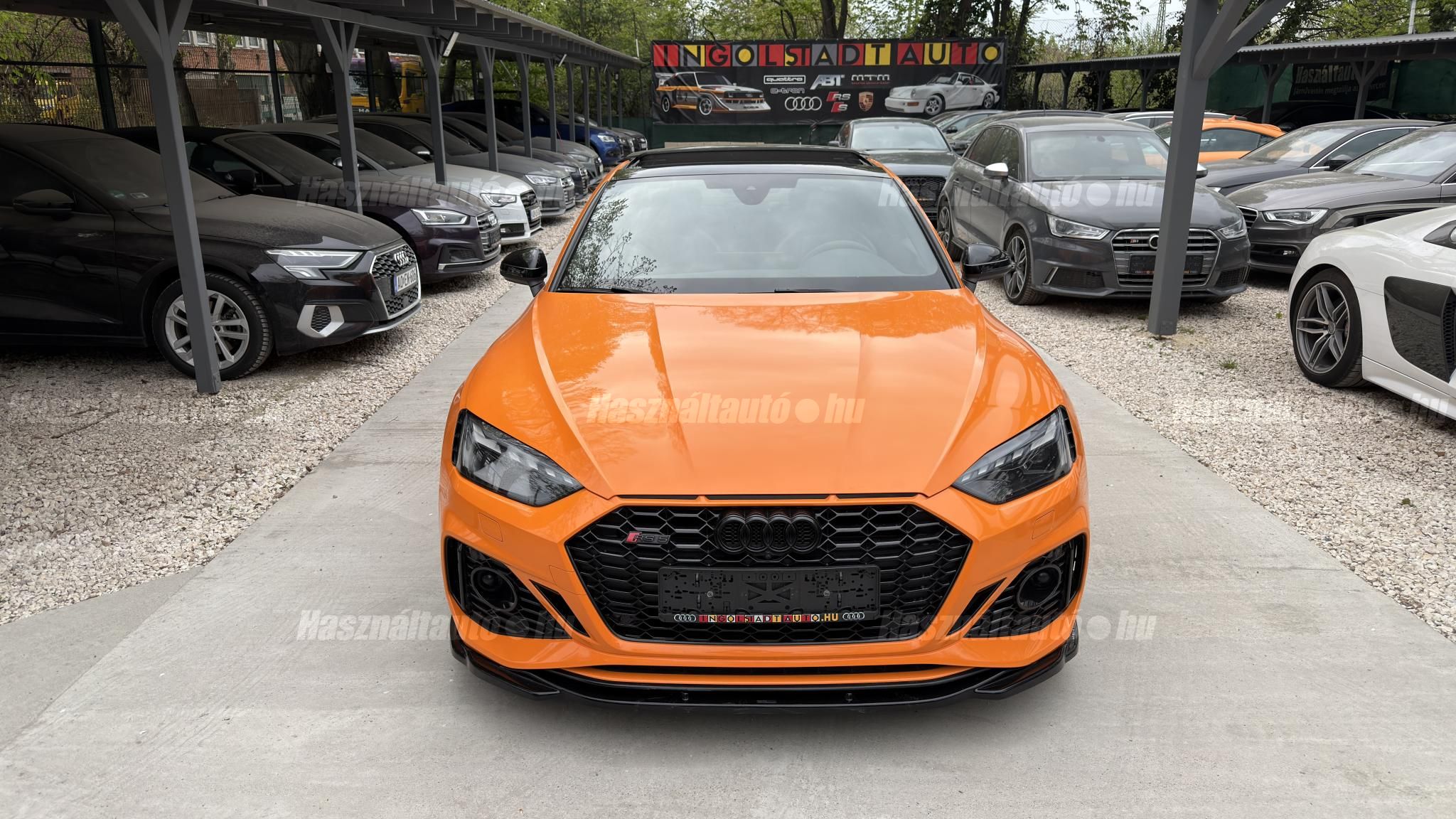 További 80 nagy felbontású kép: facebook/ingolstadtauto oldalunkon! AZ AUTÓK MEGTEKINTÉSÉHEZ MINDEN ESETBEN ELŐZETES TELEFONOS EGYEZTETÉS SZÜKSÉGES! ---------- RÉSZLET FIZETÉSSEL IS ELVIHETŐ: Nincs hitelbírálat, nem gond a BAR lista, nem kérünk jövedelemigazolást sem. Kezdő részlet: 15 millió Ft További részletek: 12 x 542.000Ft -havi részletekben egy éven át. NEM tartalmazza a kötelező biztosítás és a CASCO költségét, melyek feltételei a szerződés megkötésének. Magasabb kezdő részlet befizetése esetén a további havi részletek alcsonyabbak lehetnek. Alacsonyabb kezdő részlet befizetésére nincs lehetőség! További feltételekért és információkért keressen minket személyesen vagy telefonon. BANKI HITELÜGYINTÉZÉSben is tudunk segíteni ez 12-84 hónapig terjedő periódusra ütemezhető. Legalább 20% önrésszel vehető fel.----------TÍPUS/ÁLLAPOT----------AZ ADOTT AUTÓRÓL:Kifejezetten erős vizuális hatást ad ez a narancssárgafekete kombináció. Volt már néhány RS5-ünk, de talán egyik sem aratott ekkora sikert ez tényleg mindenkinek bejön. Az összhatás annyira karakteres, hogy az utca embere szinte úgy néz rá, mintha egy R8-ban ülnél egyszerűen vonzza a tekinteteket.Törésmentes állapotú, gyönyörű, egyedi Papaya Orange színű Coupé.Megkímélt, szép alcantara beltér, kopás-, karc- és kiülésmentes állapotban szinte újszerű érzetet kelt.Az RS kipufogórendszer nem egyszerűen hangos karaktere van. Hidegindításnál már jelzi, hogy itt valami komolyabb dologról van szó, majd alapjáraton mély, telt morgásba vált, ami minden gázadásra egyre intenzívebbé válik.Terhelés alatt igazi élmény: visszaváltásoknál finom durrogások, gyorsításnál tiszta, sportos hang, ami azonnal mosolyt csal az arcodra. Ez az a kipufogó, ami miatt minden alagút csábít egy kis gázfröccsre egyszerűen nem lehet megunni.Szerkezetileg és motorikusan hibátlan, minden extra tökéletesen működik.A 20 colos gyári Audi Sport felnik kiváló állapotúak, jelenleg jó állapotú Michelin téli gumikkal szerelve.A fékrendszer állapota szintén jó, nincs olyan kopóalkatrész, amely jelenleg cserére szorulna.Költség- és csalódásmentes állapot.Minden tartozék, összes gyári dokumentáció, vezetett szervizkönyv, valamint 2 db eredeti kulcs rendelkezésre áll.Végig márkaszervizben karbantartott, dokumentált előélettel.A TÍPUSRÓL:Az Audi RS5 az Audi kínálatának egyik legkarakteresebb és legsportosabb modellje. Véleményünk szerint a márka egyik legjobban eltalált formavilága: markáns, szinte baltával faragott élek, kiváló arányok egy autó, amelynek nem kell kitűnnie, mert magától is vonzza a tekinteteket.A 2,9 literes, duplaturbós V6-os benzinmotor erőtartaléka már gyári állapotban is meggyőző. A 8 fokozatú tiptronic automata váltó gyors és határozott működésével tökéletesen illik a karakteréhez a ZF 8HP pedig az egyik legmegbízhatóbb konstrukció a kategóriában.A quattro összkerékhajtás ahogyan minden RS modell esetében itt is alapfelszereltség, így a komoly teljesítmény ellenére az autó könnyen vezethető és meglepően kezes marad.A motor egyik legnagyobb különlegessége, hogy a két turbófeltöltőt nem a motor oldalára, hanem a két hengersor közé, az úgynevezett V-térbe építették. Ennek köszönhetően a kipufogógázok rövidebb utat tesznek meg, így a gázreakció rendkívül gyors: minimális a turbólyuk, és szinte azonnal megérkezik a brutális tolóerő.Oldalról nézve az RS5 egyik leglátványosabb elemei a szélesített sárvédőívek. Ezek az 1980-as évek legendás Audi Ur-Quattro modellje előtt tisztelegnek, és vizuálisan is hangsúlyozzák: ez az autó az aszfalthoz van ragasztva.AUTÓINKAT 1-3 ÉVIG TERJEDŐ GARANCIÁVAL IS TUDJUK ÉRTÉKESÍTENI, MEGÁLLAPODÁS SZERINT. Autóbeszámítás vagy bármilyen kérdés esetén a lenti telefonszámon keressen vagy WhatsApp-on, Viberen is elérhetőek vagyunk (email-t ne írjon!). TOVÁBBI KÜLÖNLEGES AUDIKÉRT KÖVESSE KÍNÁLATUNKAT FACEBOOKON: INGOLSTADTAUTO |