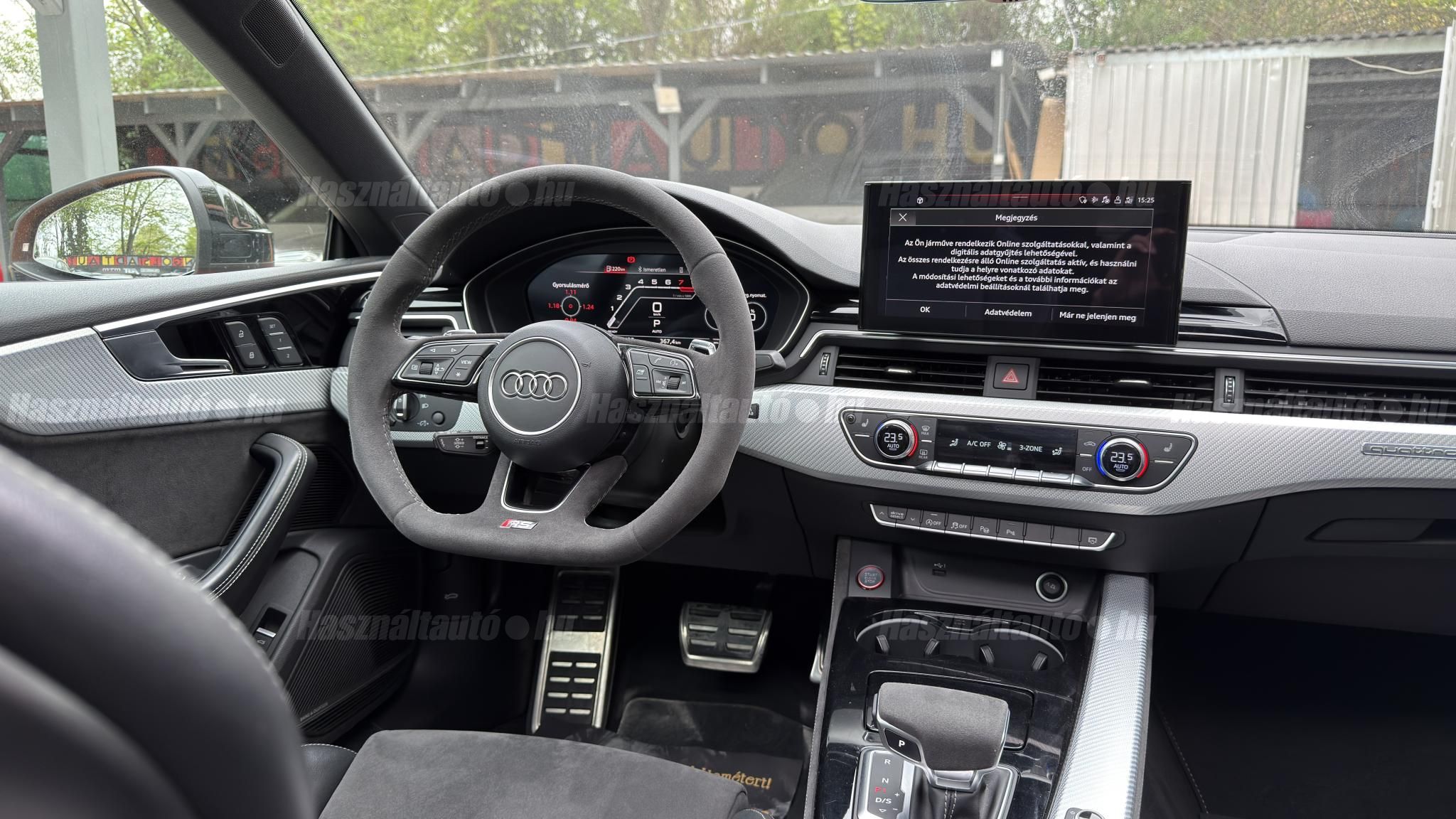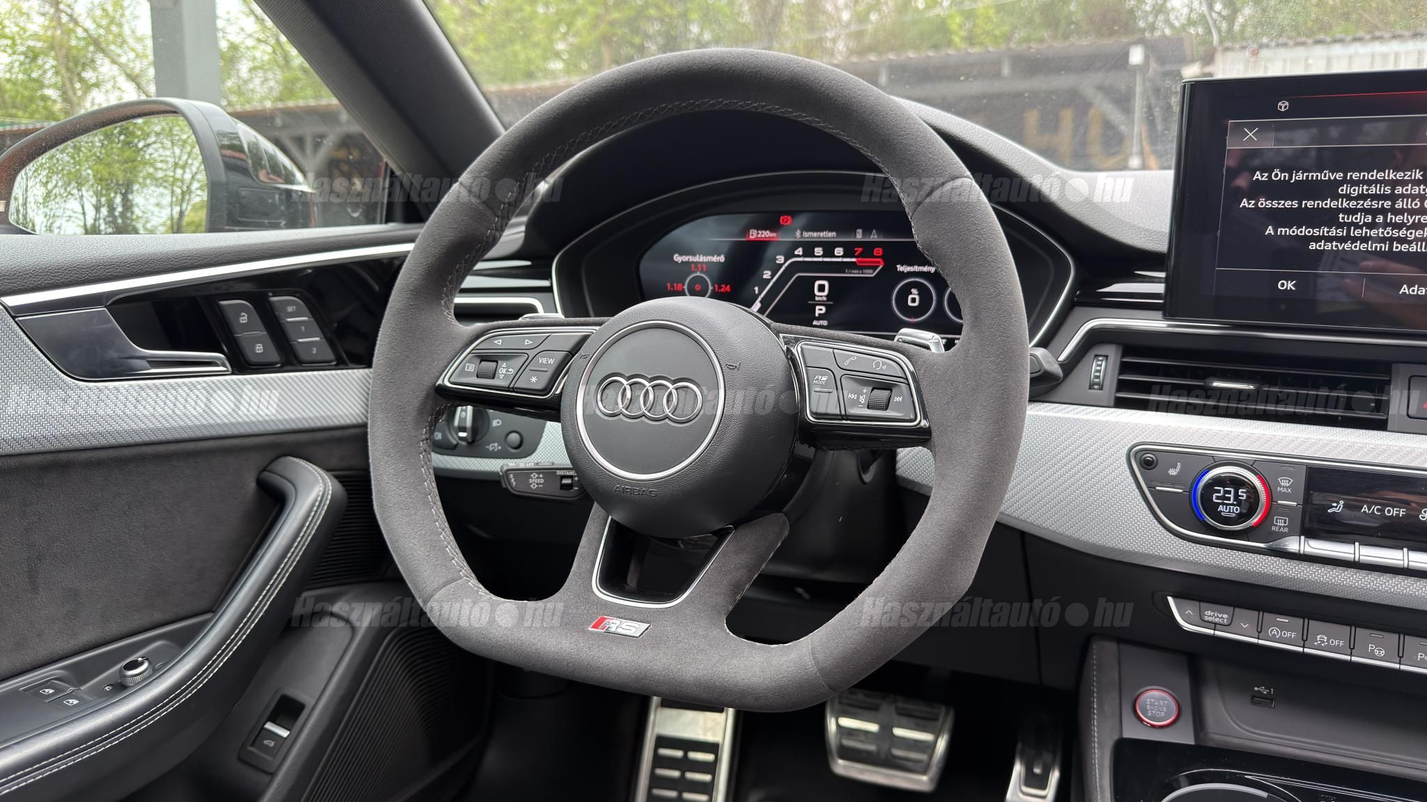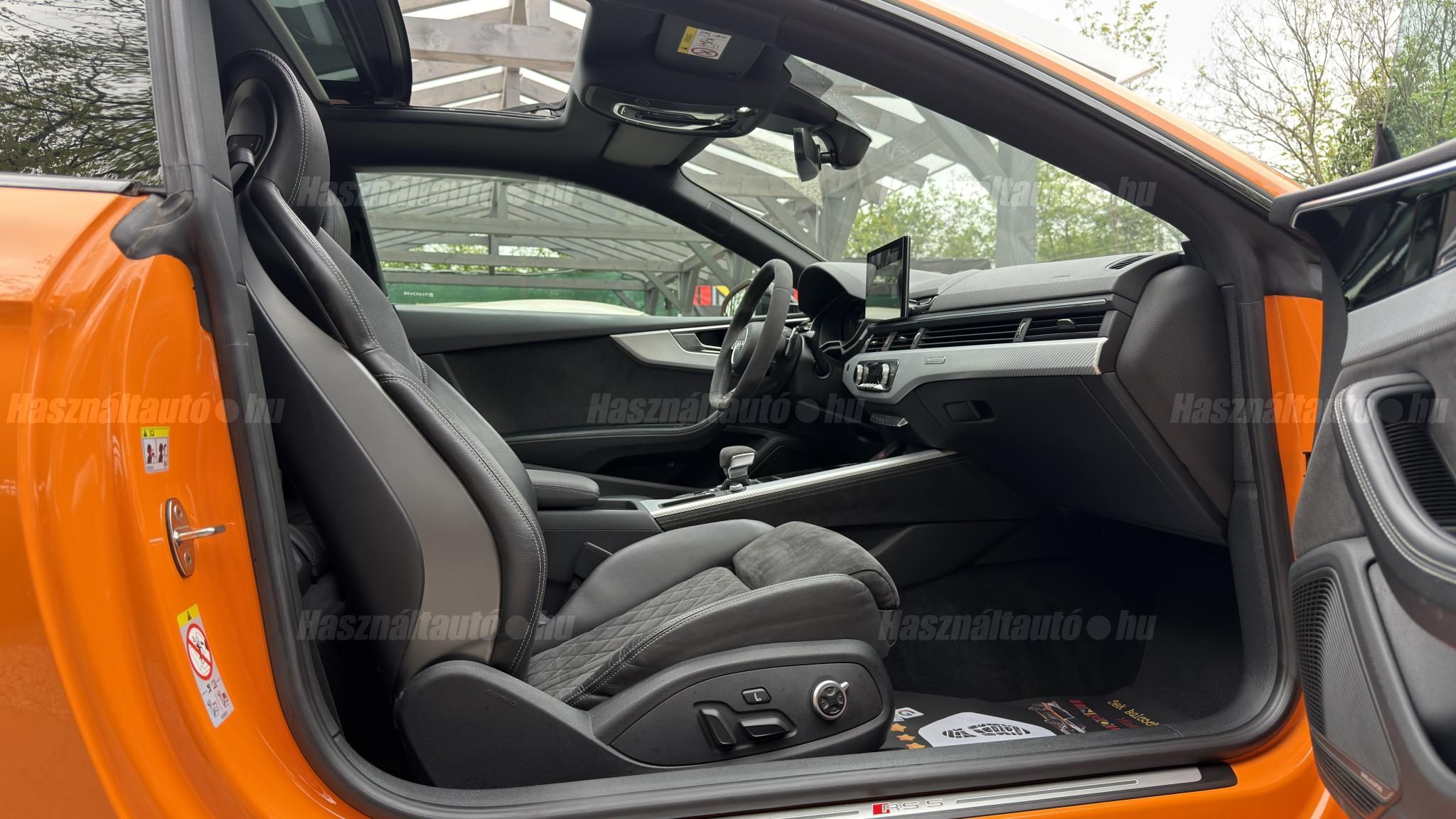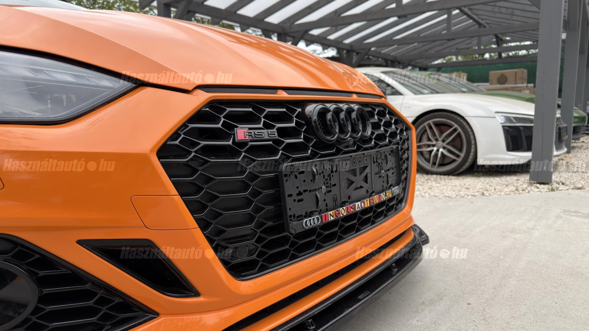 További 80 nagy felbontású kép: facebook/ingolstadtauto oldalunkon! AZ AUTÓK MEGTEKINTÉSÉHEZ MINDEN ESETBEN ELŐZETES TELEFONOS EGYEZTETÉS SZÜKSÉGES! ---------- RÉSZLET FIZETÉSSEL IS ELVIHETŐ: Nincs hitelbírálat, nem gond a BAR lista, nem kérünk jövedelemigazolást sem. Kezdő részlet: 15 millió Ft További részletek: 12 x 542.000Ft -havi részletekben egy éven át. NEM tartalmazza a kötelező biztosítás és a CASCO költségét, melyek feltételei a szerződés megkötésének. Magasabb kezdő részlet befizetése esetén a további havi részletek alcsonyabbak lehetnek. Alacsonyabb kezdő részlet befizetésére nincs lehetőség! További feltételekért és információkért keressen minket személyesen vagy telefonon. BANKI HITELÜGYINTÉZÉSben is tudunk segíteni ez 12-84 hónapig terjedő periódusra ütemezhető. Legalább 20% önrésszel vehető fel.----------TÍPUS/ÁLLAPOT----------AZ ADOTT AUTÓRÓL:Kifejezetten erős vizuális hatást ad ez a narancssárgafekete kombináció. Volt már néhány RS5-ünk, de talán egyik sem aratott ekkora sikert ez tényleg mindenkinek bejön. Az összhatás annyira karakteres, hogy az utca embere szinte úgy néz rá, mintha egy R8-ban ülnél egyszerűen vonzza a tekinteteket.Törésmentes állapotú, gyönyörű, egyedi Papaya Orange színű Coupé.Megkímélt, szép alcantara beltér, kopás-, karc- és kiülésmentes állapotban szinte újszerű érzetet kelt.Az RS kipufogórendszer nem egyszerűen hangos karaktere van. Hidegindításnál már jelzi, hogy itt valami komolyabb dologról van szó, majd alapjáraton mély, telt morgásba vált, ami minden gázadásra egyre intenzívebbé válik.Terhelés alatt igazi élmény: visszaváltásoknál finom durrogások, gyorsításnál tiszta, sportos hang, ami azonnal mosolyt csal az arcodra. Ez az a kipufogó, ami miatt minden alagút csábít egy kis gázfröccsre egyszerűen nem lehet megunni.Szerkezetileg és motorikusan hibátlan, minden extra tökéletesen működik.A 20 colos gyári Audi Sport felnik kiváló állapotúak, jelenleg jó állapotú Michelin téli gumikkal szerelve.A fékrendszer állapota szintén jó, nincs olyan kopóalkatrész, amely jelenleg cserére szorulna.Költség- és csalódásmentes állapot.Minden tartozék, összes gyári dokumentáció, vezetett szervizkönyv, valamint 2 db eredeti kulcs rendelkezésre áll.Végig márkaszervizben karbantartott, dokumentált előélettel.A TÍPUSRÓL:Az Audi RS5 az Audi kínálatának egyik legkarakteresebb és legsportosabb modellje. Véleményünk szerint a márka egyik legjobban eltalált formavilága: markáns, szinte baltával faragott élek, kiváló arányok egy autó, amelynek nem kell kitűnnie, mert magától is vonzza a tekinteteket.A 2,9 literes, duplaturbós V6-os benzinmotor erőtartaléka már gyári állapotban is meggyőző. A 8 fokozatú tiptronic automata váltó gyors és határozott működésével tökéletesen illik a karakteréhez a ZF 8HP pedig az egyik legmegbízhatóbb konstrukció a kategóriában.A quattro összkerékhajtás ahogyan minden RS modell esetében itt is alapfelszereltség, így a komoly teljesítmény ellenére az autó könnyen vezethető és meglepően kezes marad.A motor egyik legnagyobb különlegessége, hogy a két turbófeltöltőt nem a motor oldalára, hanem a két hengersor közé, az úgynevezett V-térbe építették. Ennek köszönhetően a kipufogógázok rövidebb utat tesznek meg, így a gázreakció rendkívül gyors: minimális a turbólyuk, és szinte azonnal megérkezik a brutális tolóerő.Oldalról nézve az RS5 egyik leglátványosabb elemei a szélesített sárvédőívek. Ezek az 1980-as évek legendás Audi Ur-Quattro modellje előtt tisztelegnek, és vizuálisan is hangsúlyozzák: ez az autó az aszfalthoz van ragasztva.AUTÓINKAT 1-3 ÉVIG TERJEDŐ GARANCIÁVAL IS TUDJUK ÉRTÉKESÍTENI, MEGÁLLAPODÁS SZERINT. Autóbeszámítás vagy bármilyen kérdés esetén a lenti telefonszámon keressen vagy WhatsApp-on, Viberen is elérhetőek vagyunk (email-t ne írjon!). TOVÁBBI KÜLÖNLEGES AUDIKÉRT KÖVESSE KÍNÁLATUNKAT FACEBOOKON: INGOLSTADTAUTO |